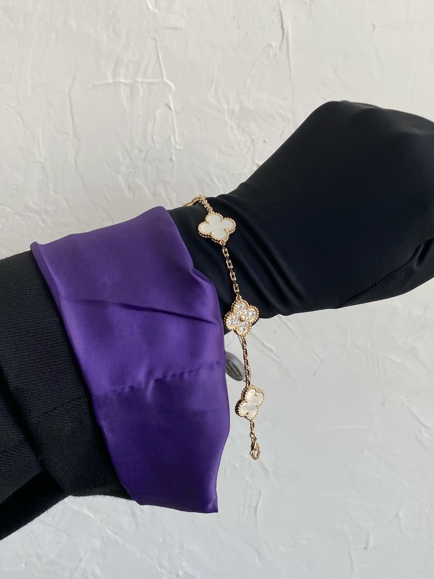 这款首饰是AAAAA 1:1 质量 (非常棒). 使用了和原版一模一样的材料. 商标部分也保持了和梵克雅宝/Van Cleef & Arpels一样. 图片拍摄是实物首饰拍摄, 您所收到的实物保证和我们图片一模一样.