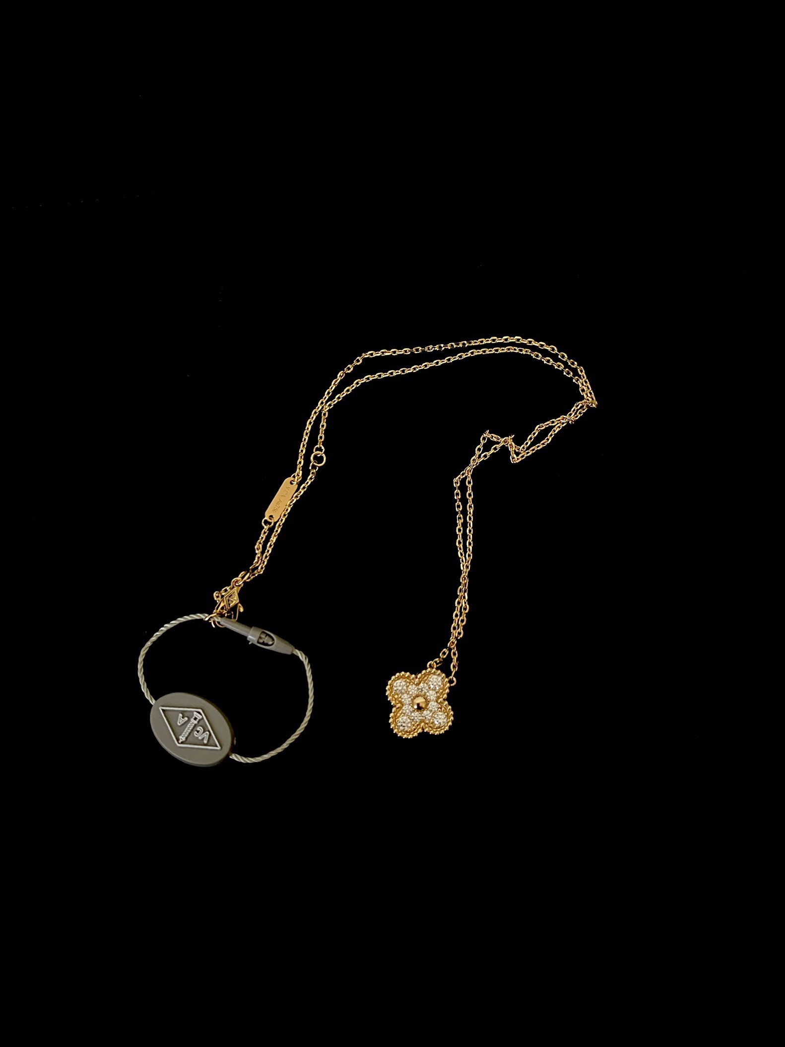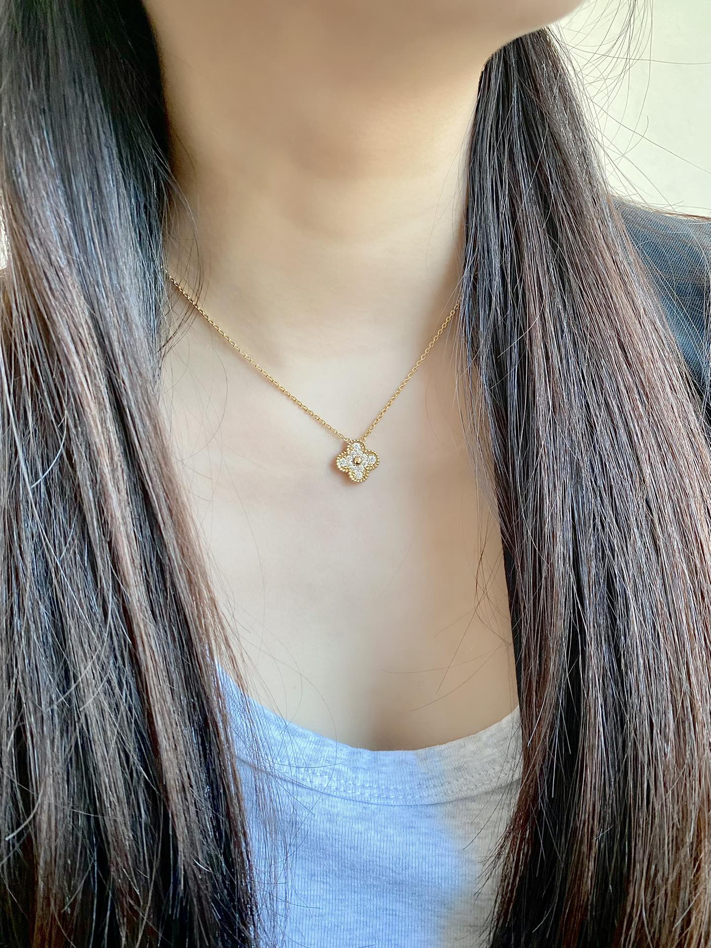 这款首饰是AAAAA 1:1 质量 (非常棒). 使用了和原版一模一样的材料. 商标部分也保持了和梵克雅宝/Van Cleef & Arpels一样. 图片拍摄是实物首饰拍摄, 您所收到的实物保证和我们图片一模一样.