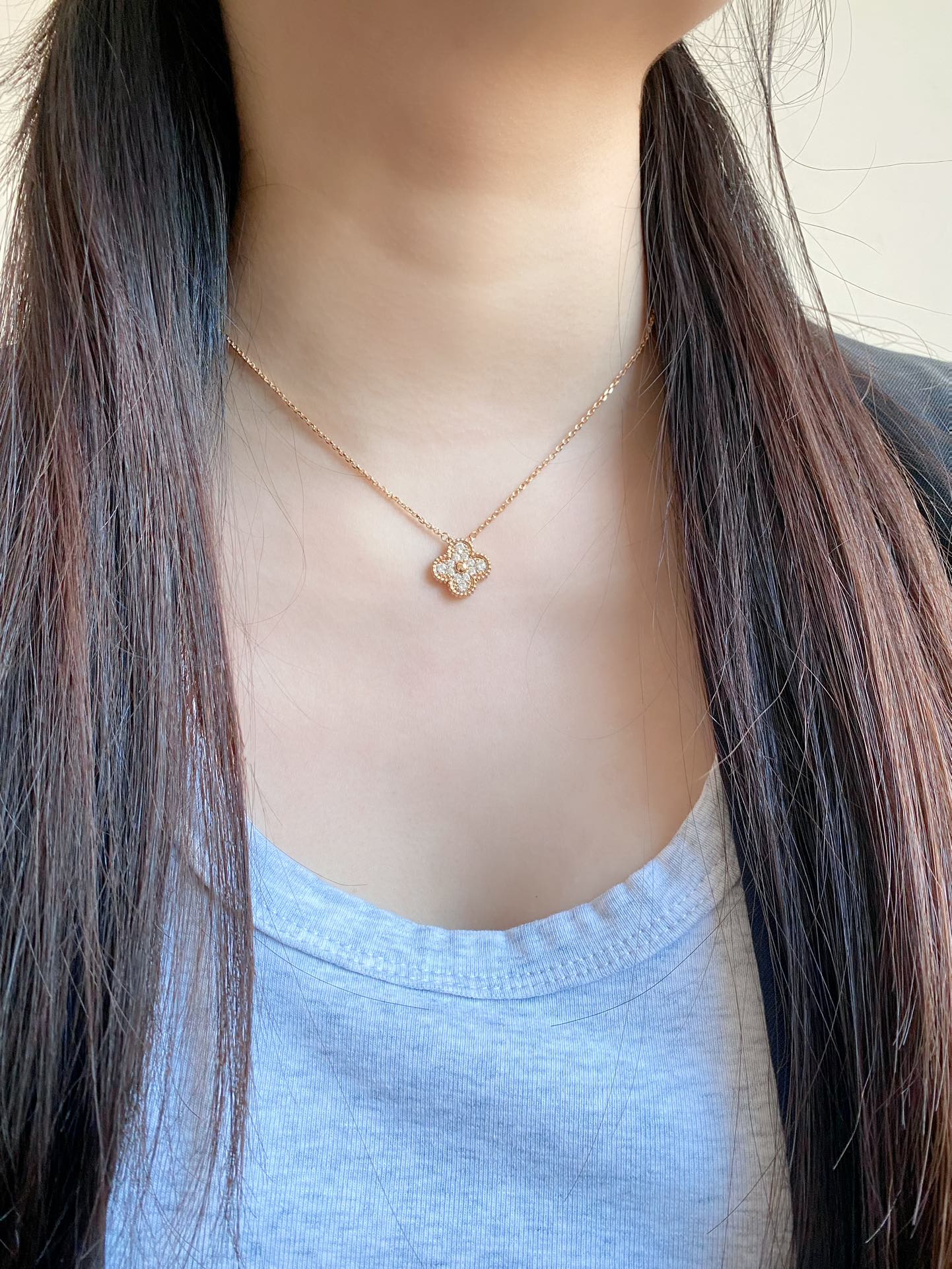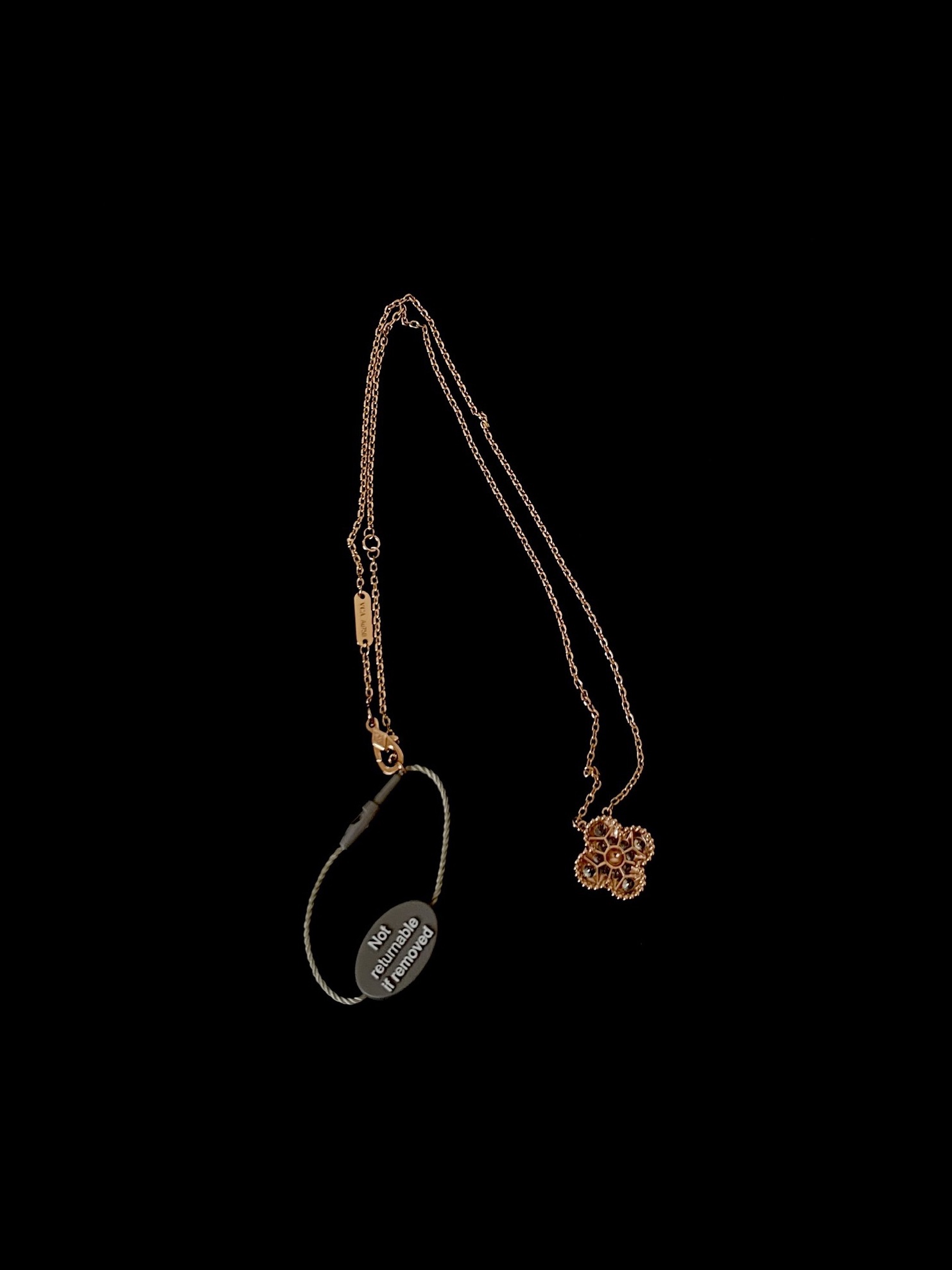 这款首饰是AAAAA 1:1 质量 (非常棒). 使用了和原版一模一样的材料. 商标部分也保持了和梵克雅宝/Van Cleef & Arpels一样. 图片拍摄是实物首饰拍摄, 您所收到的实物保证和我们图片一模一样.