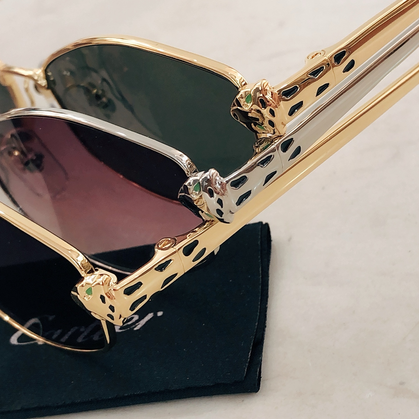 这款太阳眼镜是AAAAA 1:1 质量 (非常棒). 使用了和原版一模一样的材料. 商标部分也保持了和卡地亚/Cartier一样. 图片拍摄是实物太阳眼镜拍摄, 您所收到的实物保证和我们图片一模一样.