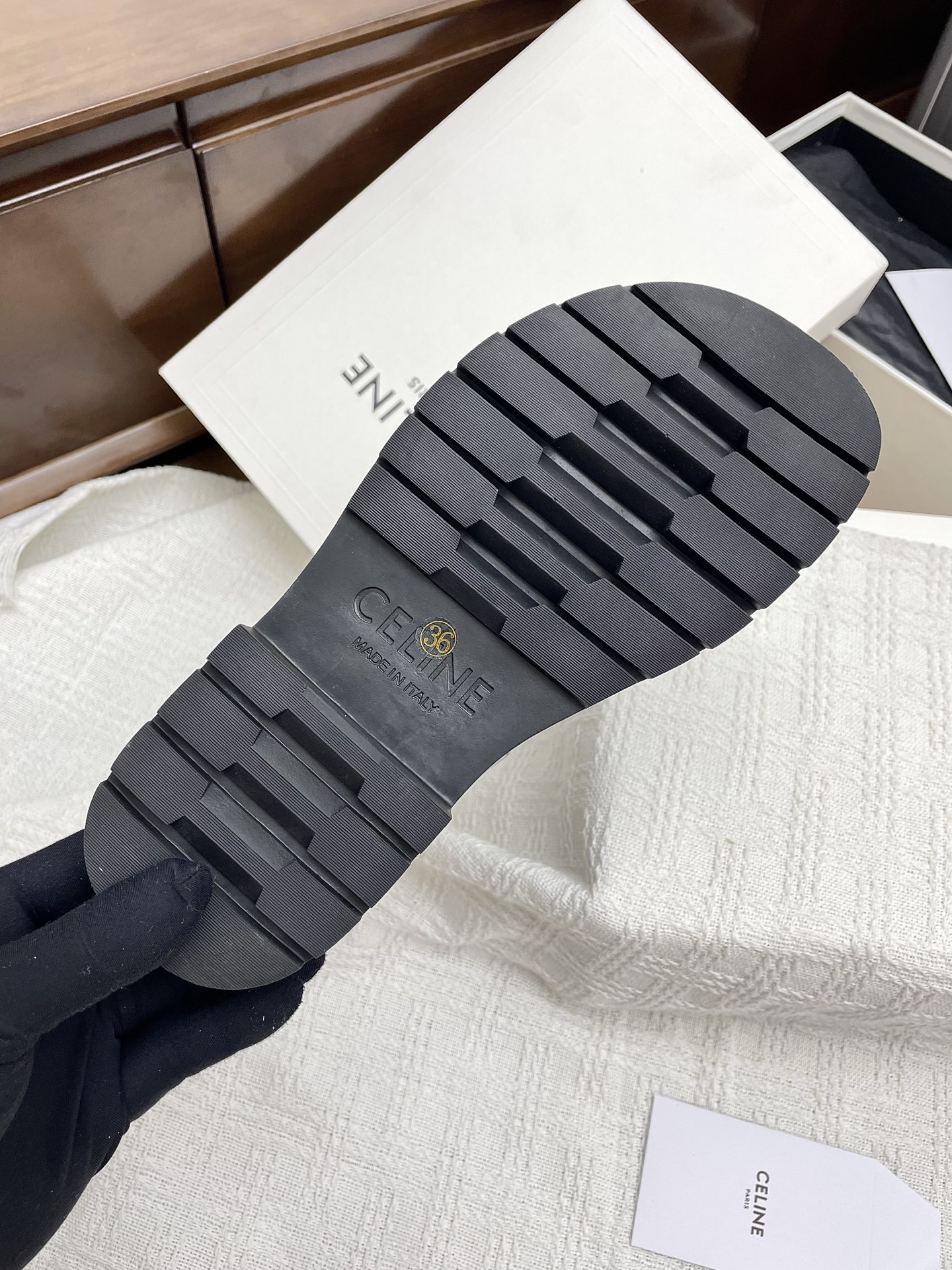 这款鞋子是AAAAA 1:1 质量 (非常棒). 使用了和原版一模一样的材料. 商标部分也保持了和思琳/Celine一样. 图片拍摄是实物鞋子拍摄, 您所收到的实物保证和我们图片一模一样.