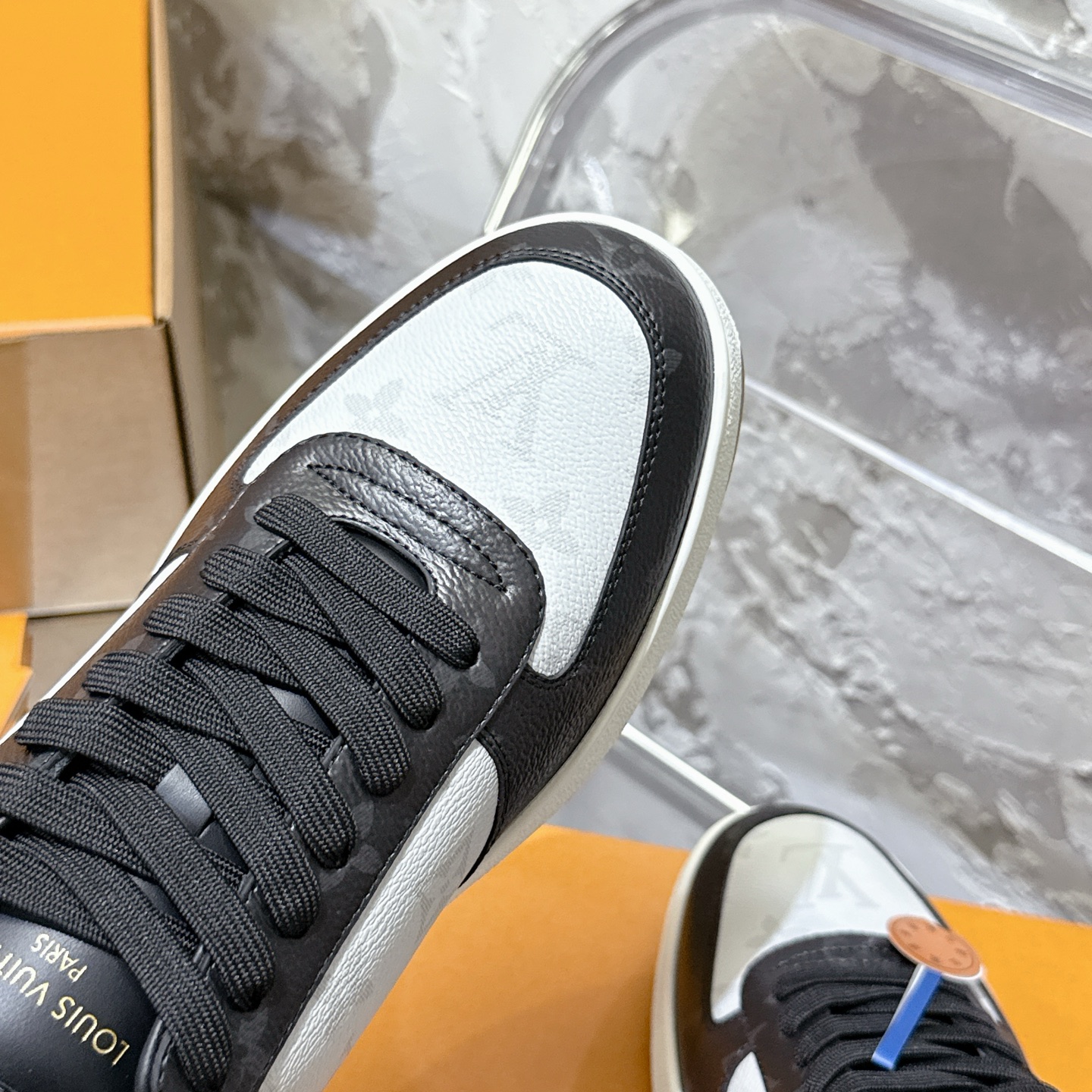 这款鞋子是AAAAA 1:1 质量 (非常棒). 使用了和原版一模一样的材料. 商标部分也保持了和路易威登/Louis Vuitton一样. 图片拍摄是实物鞋子拍摄, 您所收到的实物保证和我们图片一模一样.