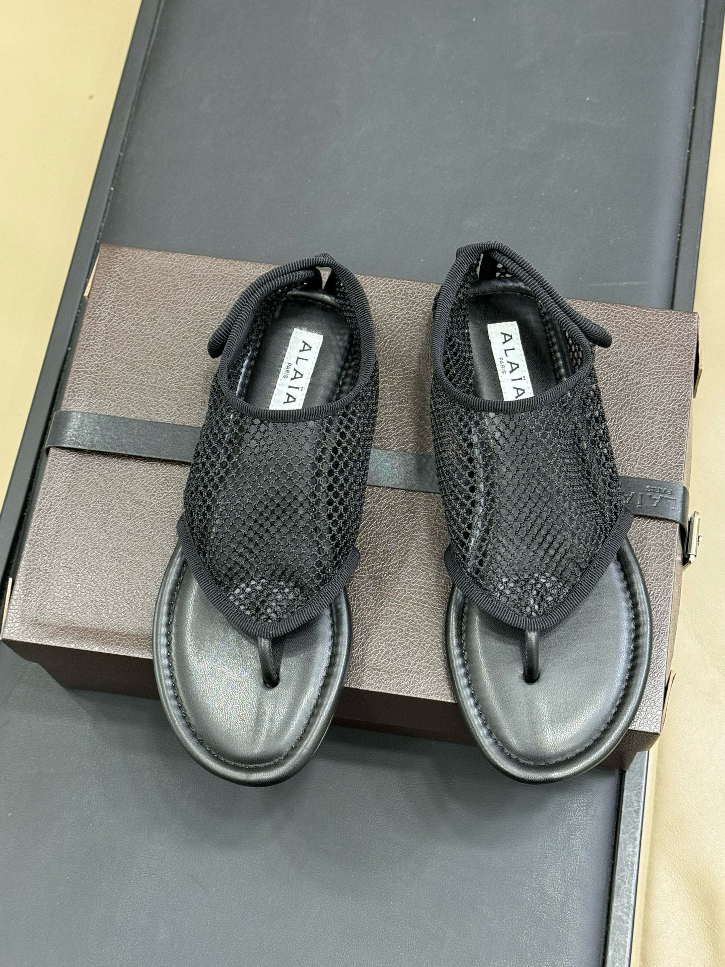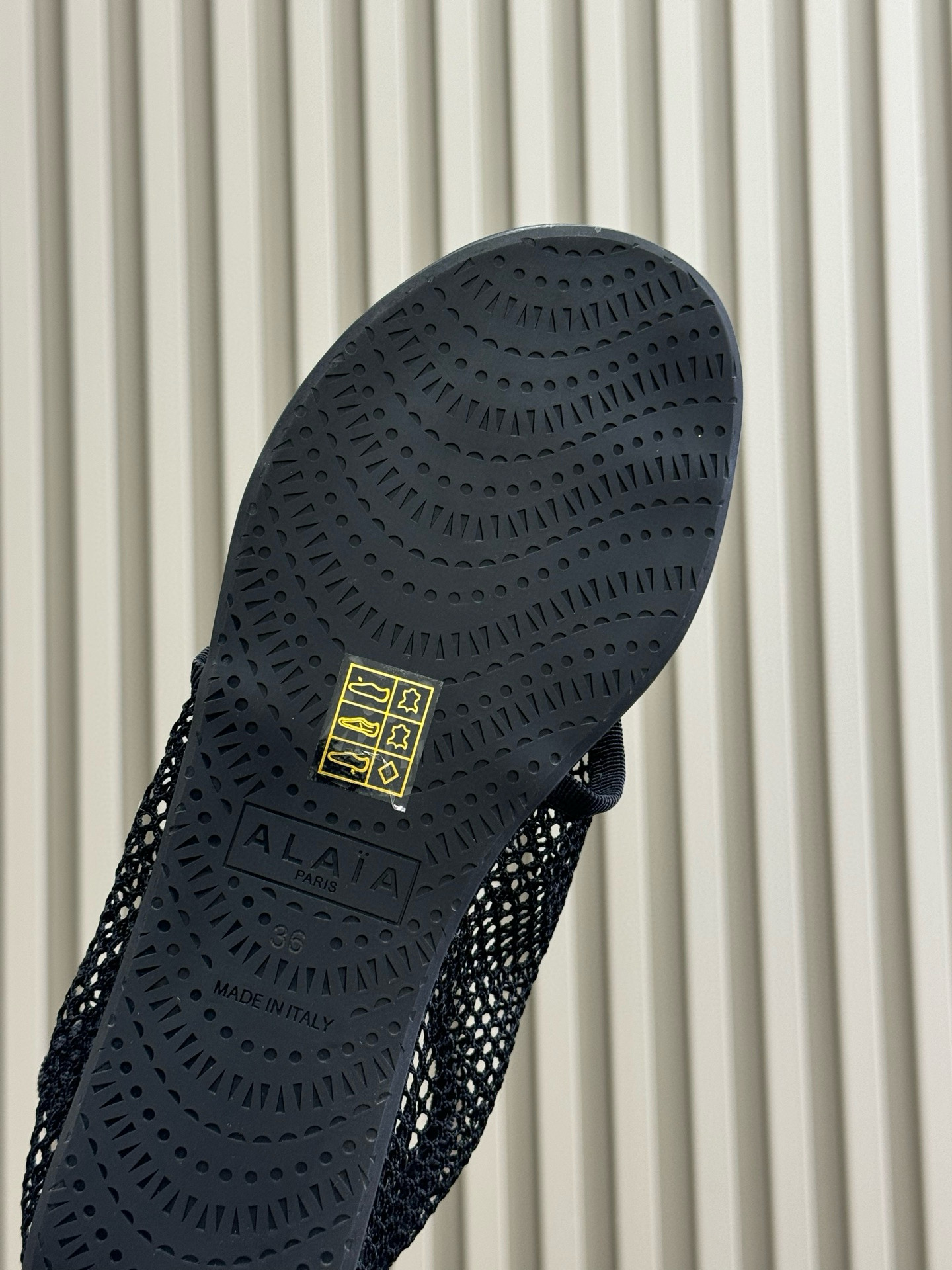 这款鞋子是AAAAA 1:1 质量 (非常棒). 使用了和原版一模一样的材料. 商标部分也保持了和Alaia一样. 图片拍摄是实物鞋子拍摄, 您所收到的实物保证和我们图片一模一样.