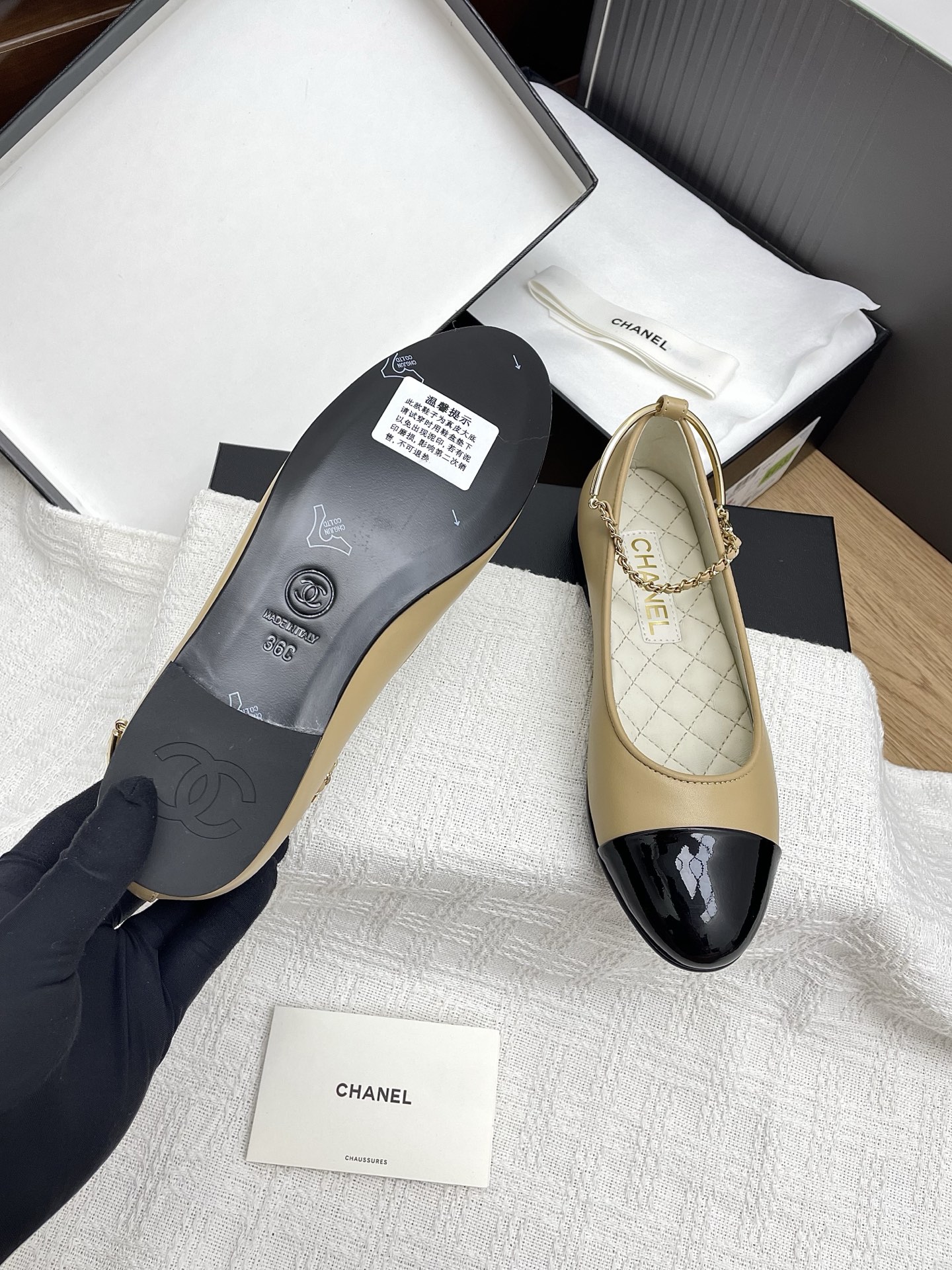 这款鞋子是AAAAA 1:1 质量 (非常棒). 使用了和原版一模一样的材料. 商标部分也保持了和香奈儿/Chanel一样. 图片拍摄是实物鞋子拍摄, 您所收到的实物保证和我们图片一模一样.