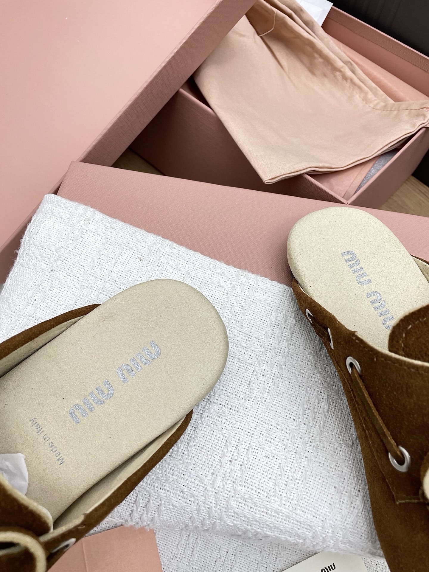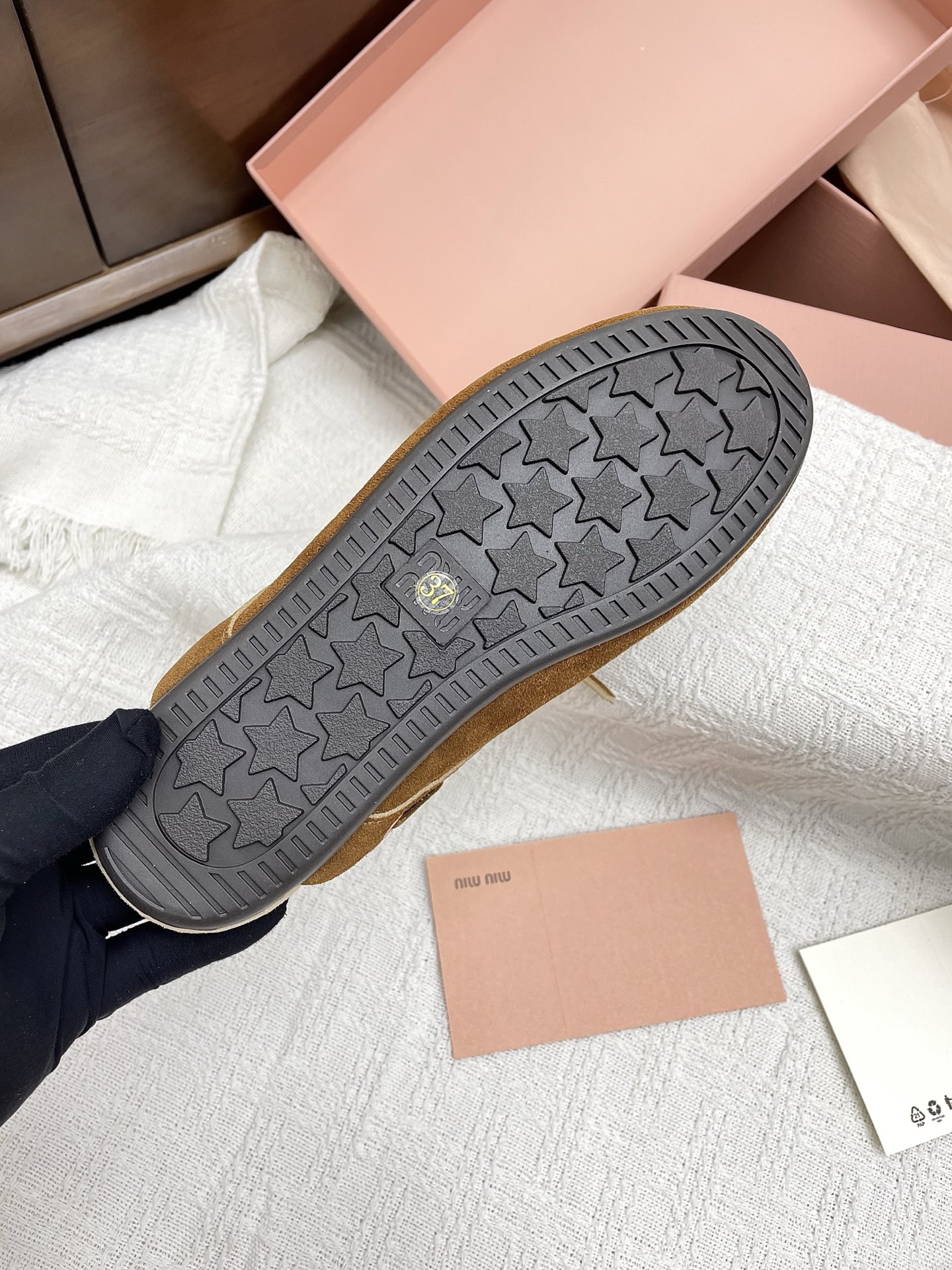 这款鞋子是AAAAA 1:1 质量 (非常棒). 使用了和原版一模一样的材料. 商标部分也保持了和缪缪/Miu Miu一样. 图片拍摄是实物鞋子拍摄, 您所收到的实物保证和我们图片一模一样.