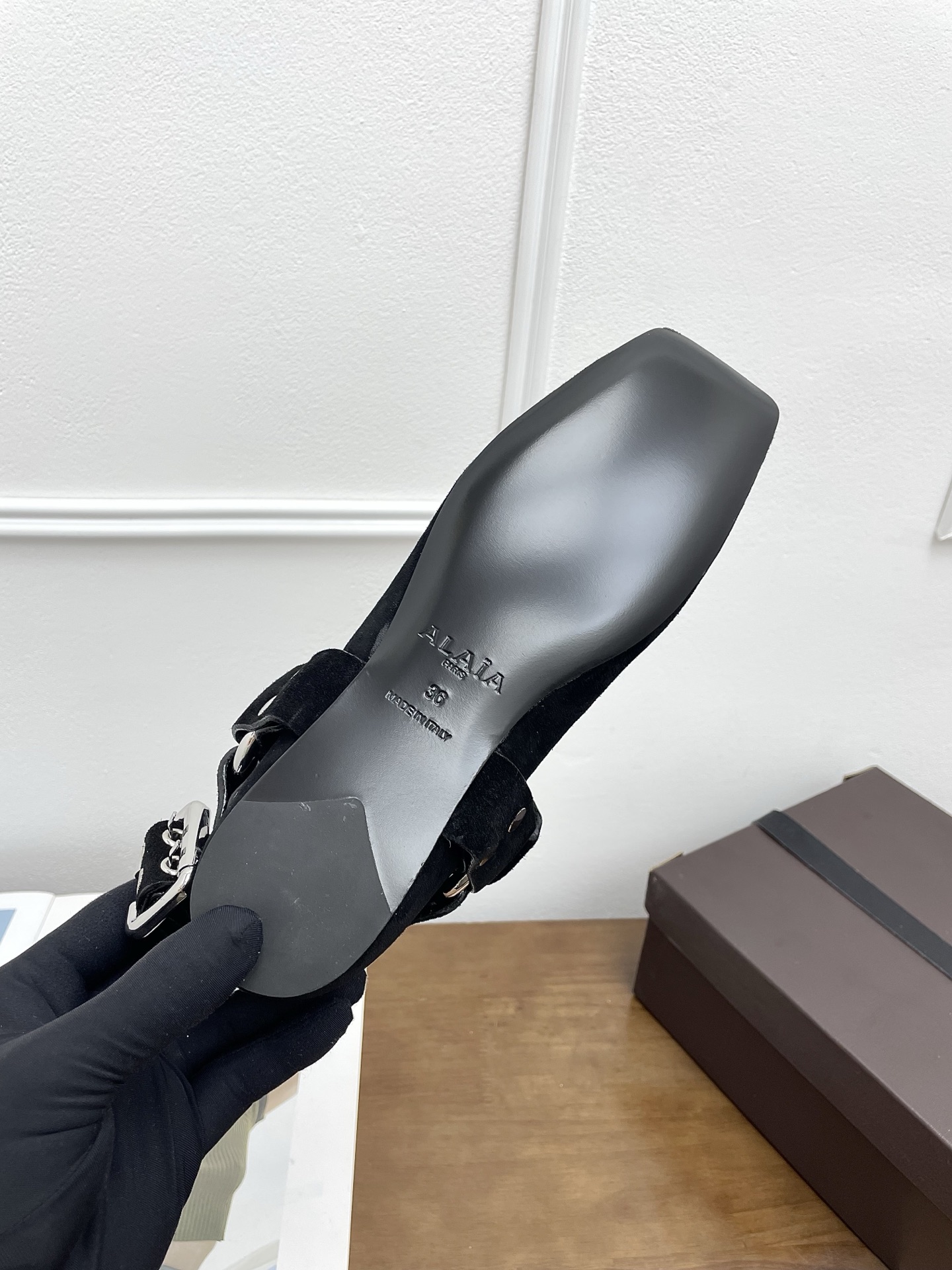 这款鞋子是AAAAA 1:1 质量 (非常棒). 使用了和原版一模一样的材料. 商标部分也保持了和Alaia一样. 图片拍摄是实物鞋子拍摄, 您所收到的实物保证和我们图片一模一样.
