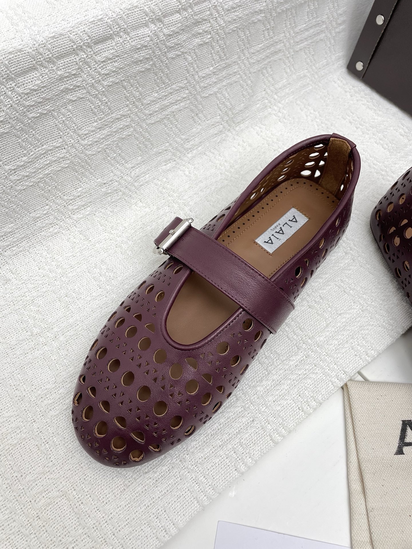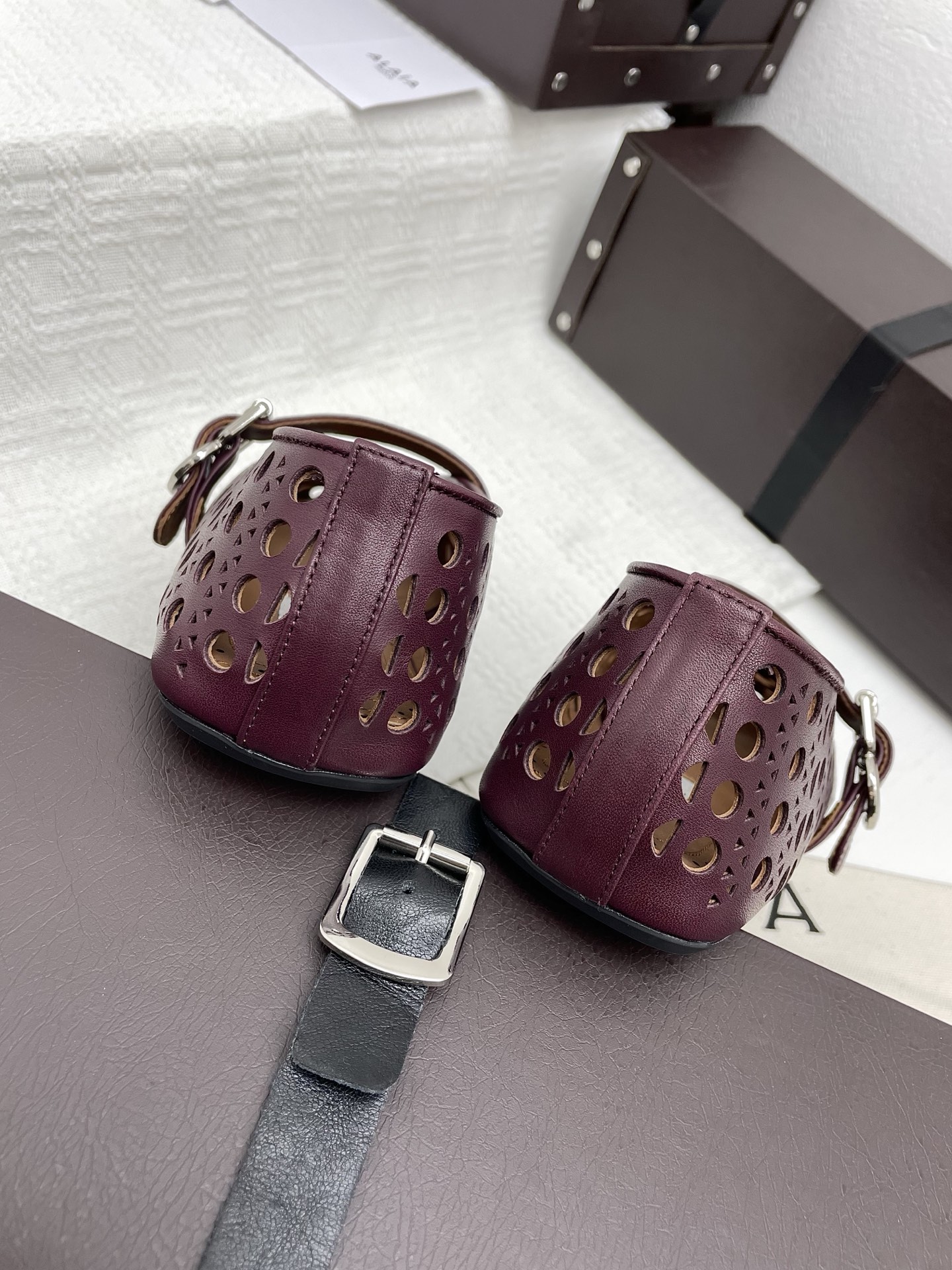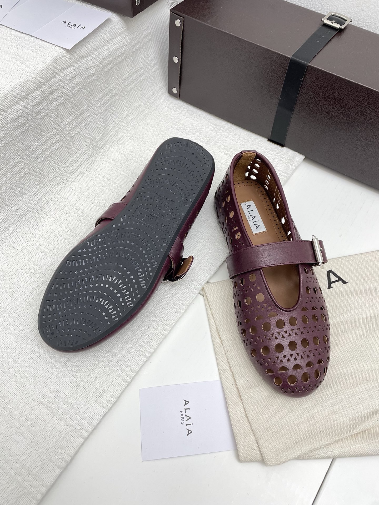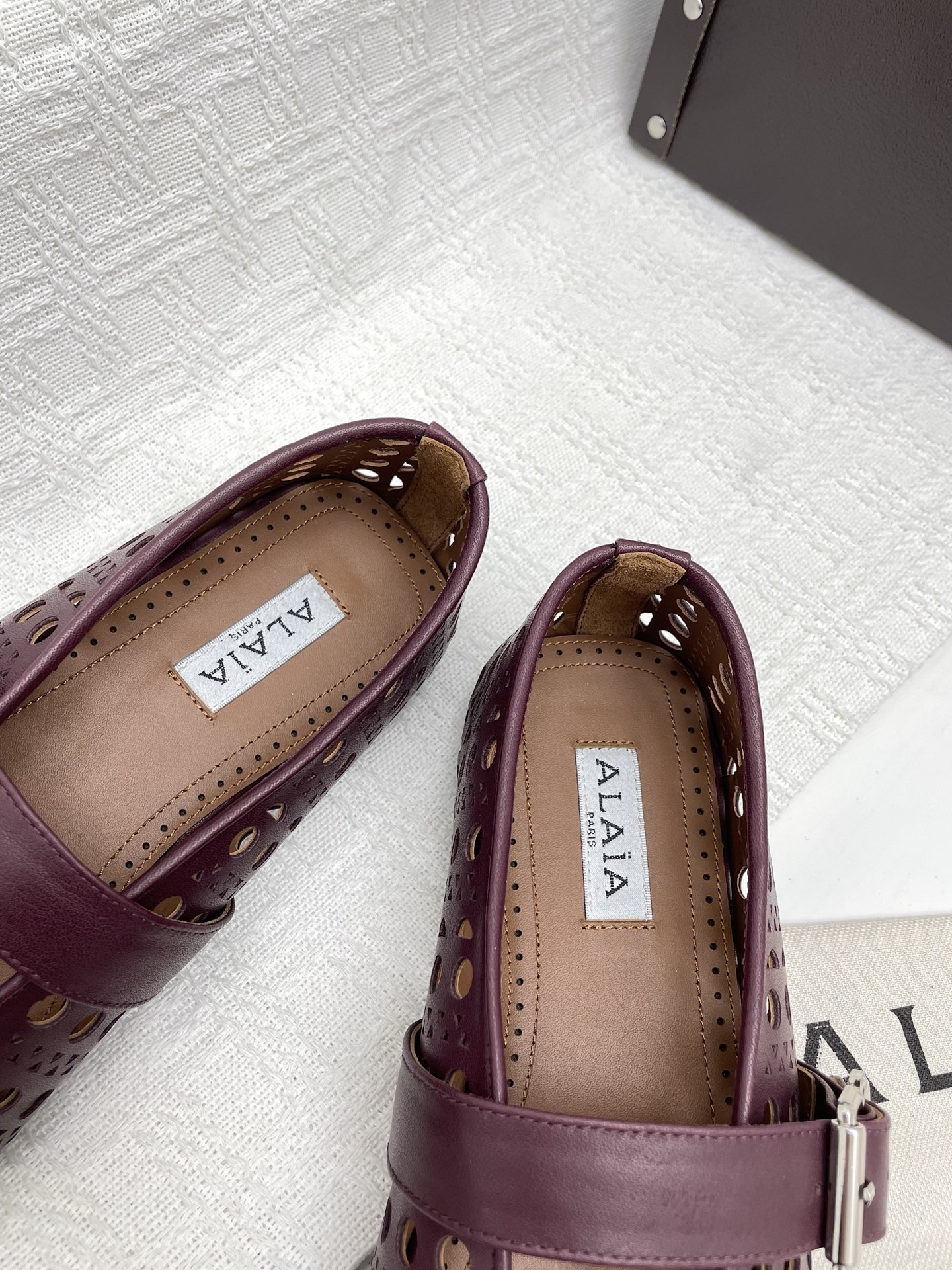 这款鞋子是AAAAA 1:1 质量 (非常棒). 使用了和原版一模一样的材料. 商标部分也保持了和Alaia一样. 图片拍摄是实物鞋子拍摄, 您所收到的实物保证和我们图片一模一样.