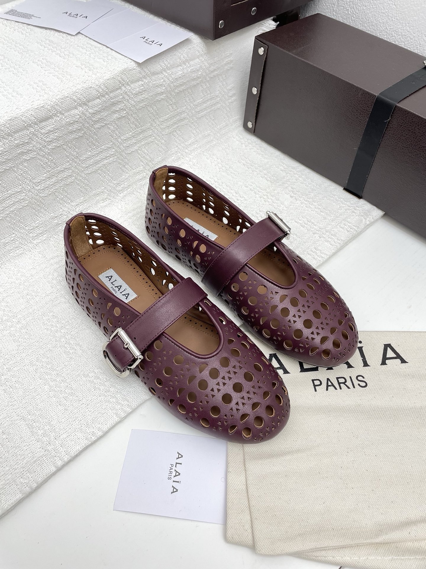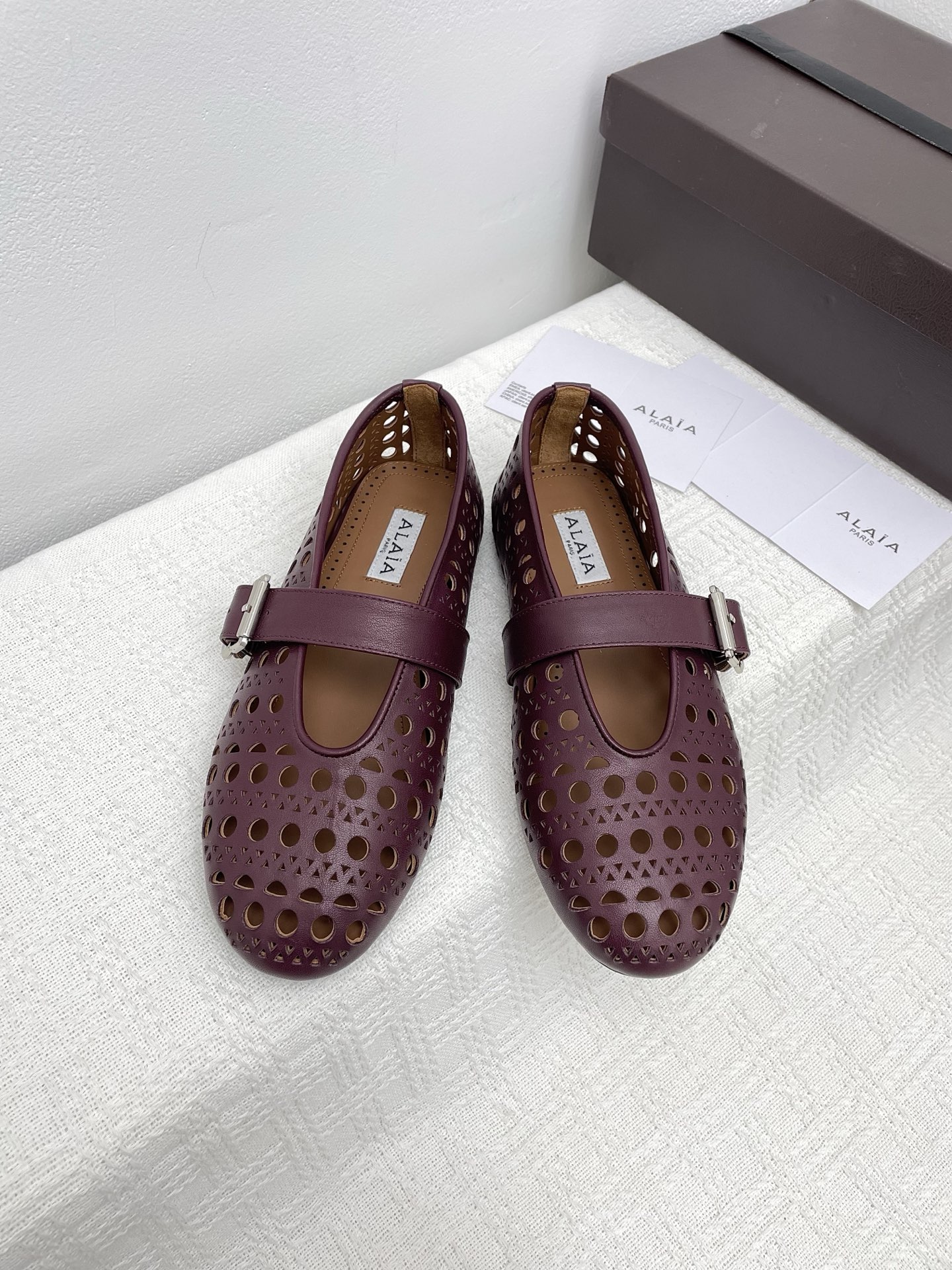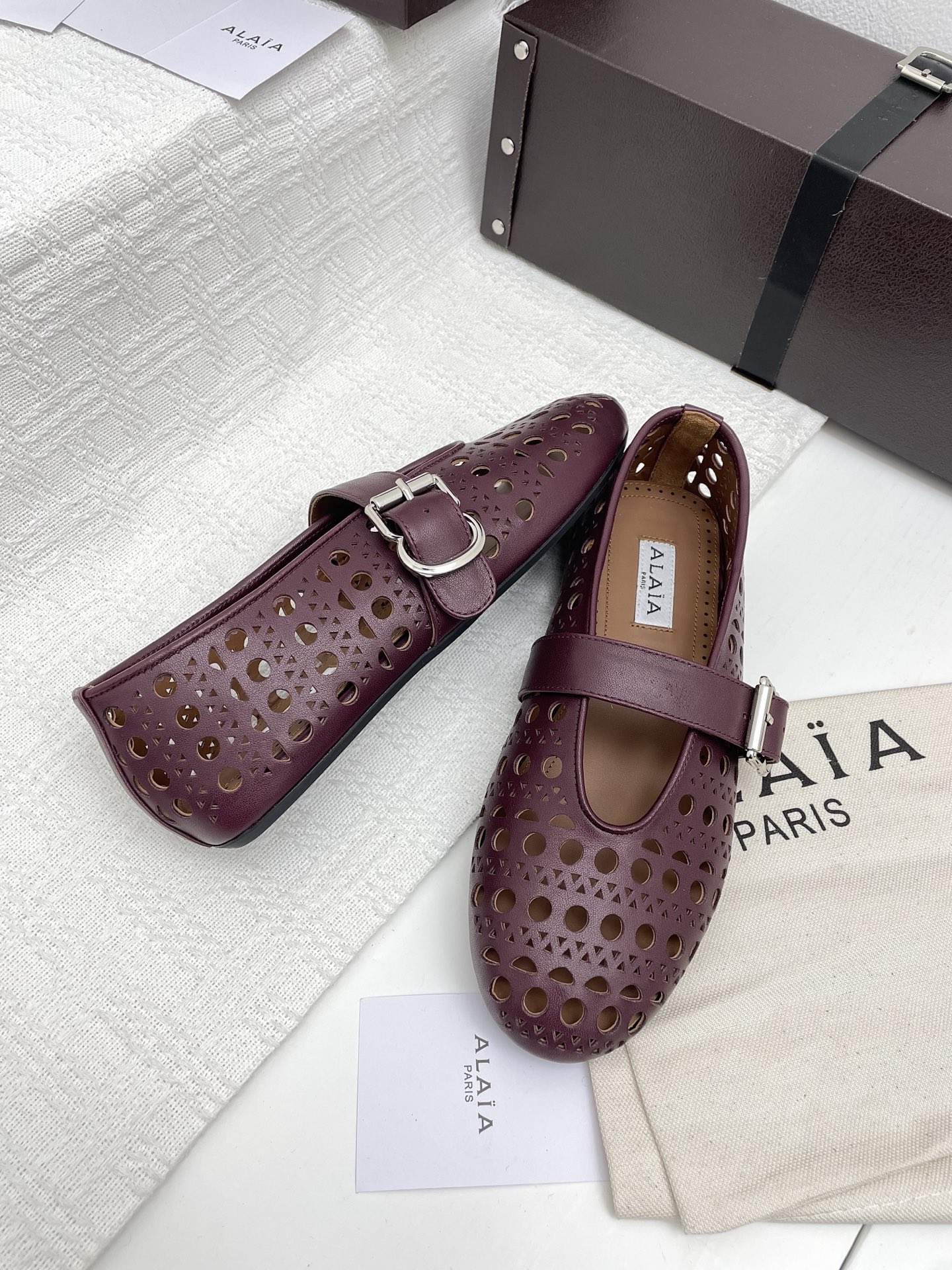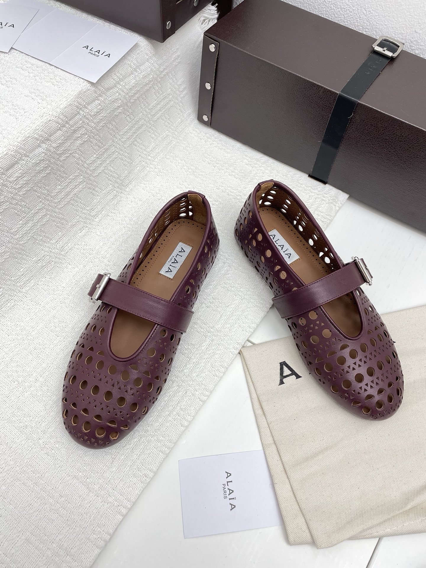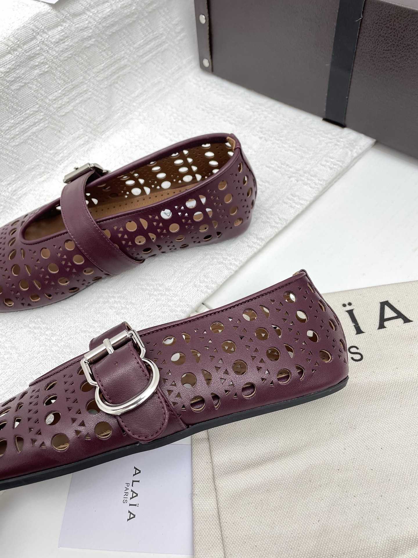 这款鞋子是AAAAA 1:1 质量 (非常棒). 使用了和原版一模一样的材料. 商标部分也保持了和Alaia一样. 图片拍摄是实物鞋子拍摄, 您所收到的实物保证和我们图片一模一样.