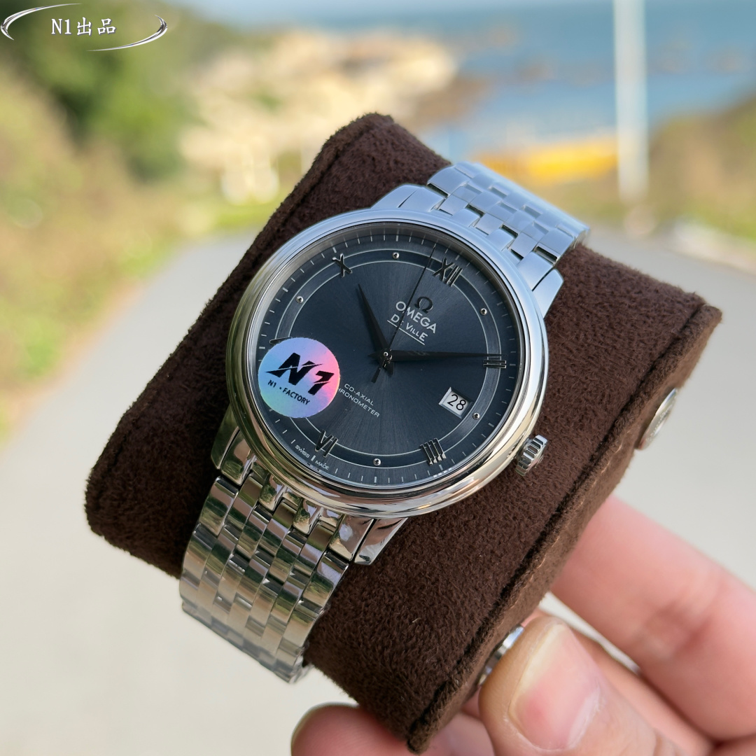 这款手表是AAAAA 1:1 质量 (非常棒). 使用了和原版一模一样的材料. 商标部分也保持了和欧米茄/Omega一样. 图片拍摄是实物手表拍摄, 您所收到的实物保证和我们图片一模一样.