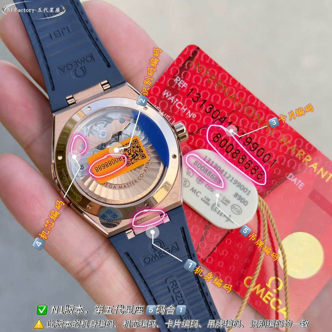这款手表是AAAAA 1:1 质量 (非常棒). 使用了和原版一模一样的材料. 商标部分也保持了和欧米茄/Omega一样. 图片拍摄是实物手表拍摄, 您所收到的实物保证和我们图片一模一样.