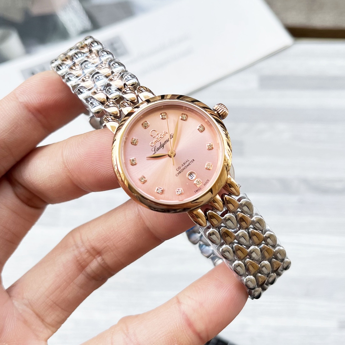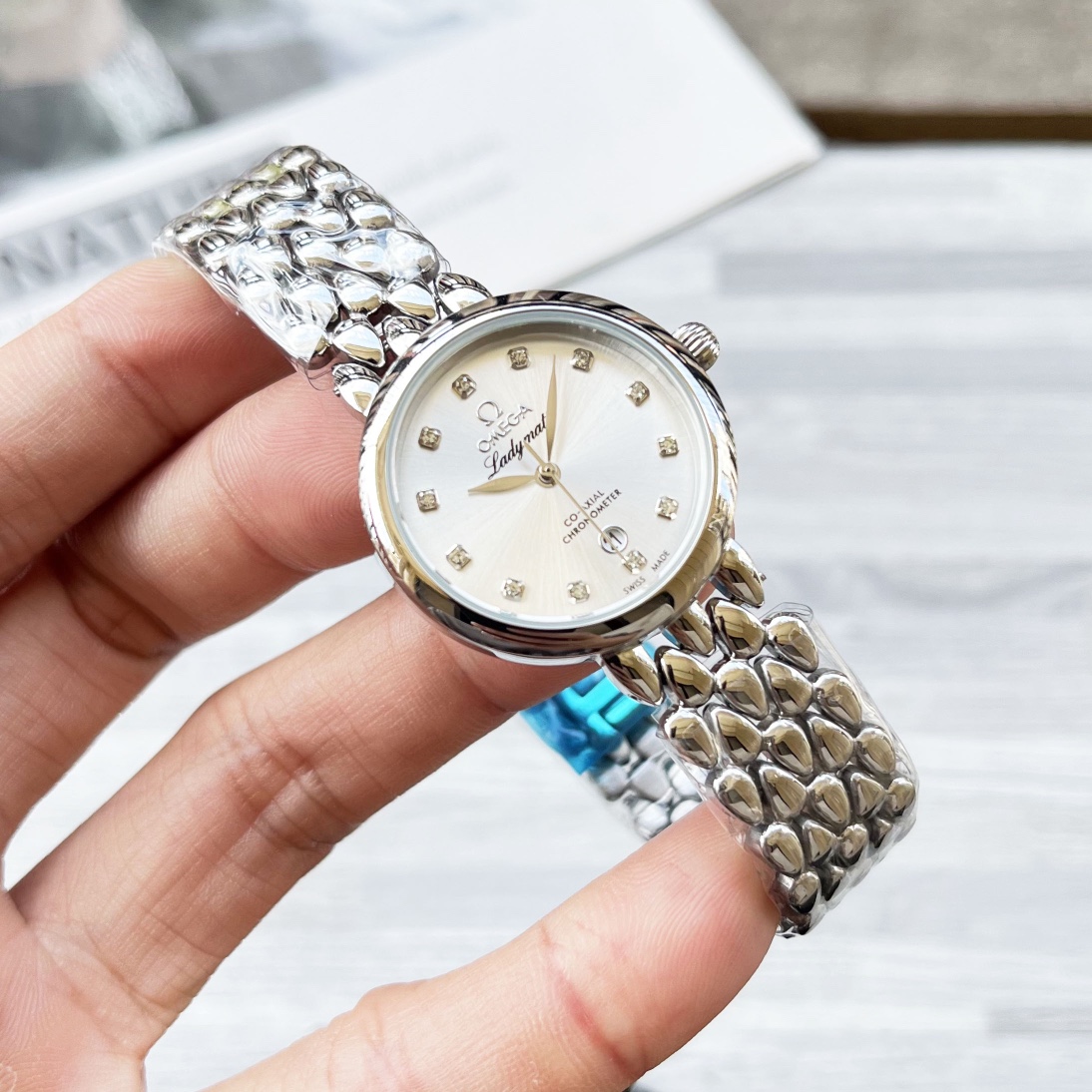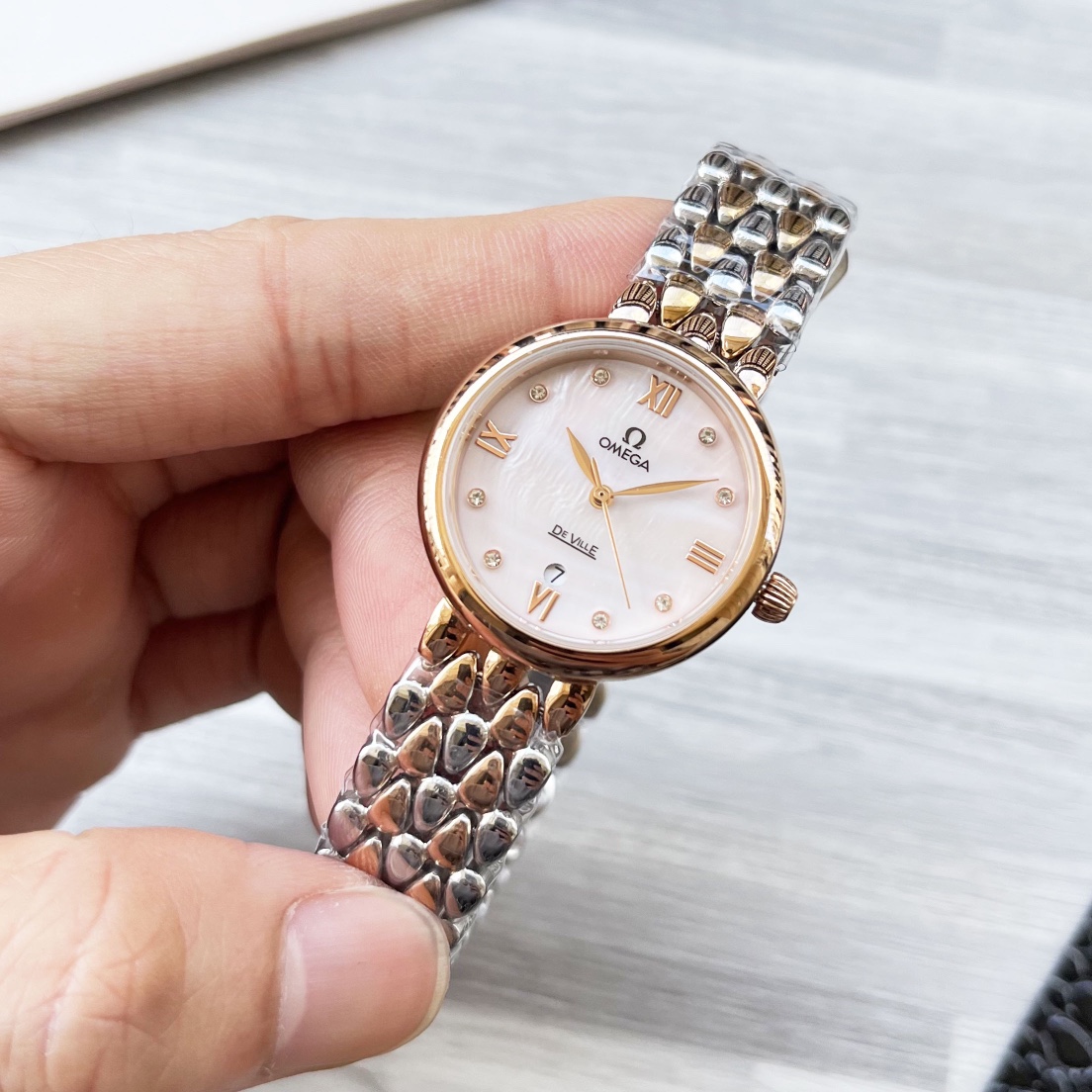 这款手表是AAAAA 1:1 质量 (非常棒). 使用了和原版一模一样的材料. 商标部分也保持了和欧米茄/Omega一样. 图片拍摄是实物手表拍摄, 您所收到的实物保证和我们图片一模一样.