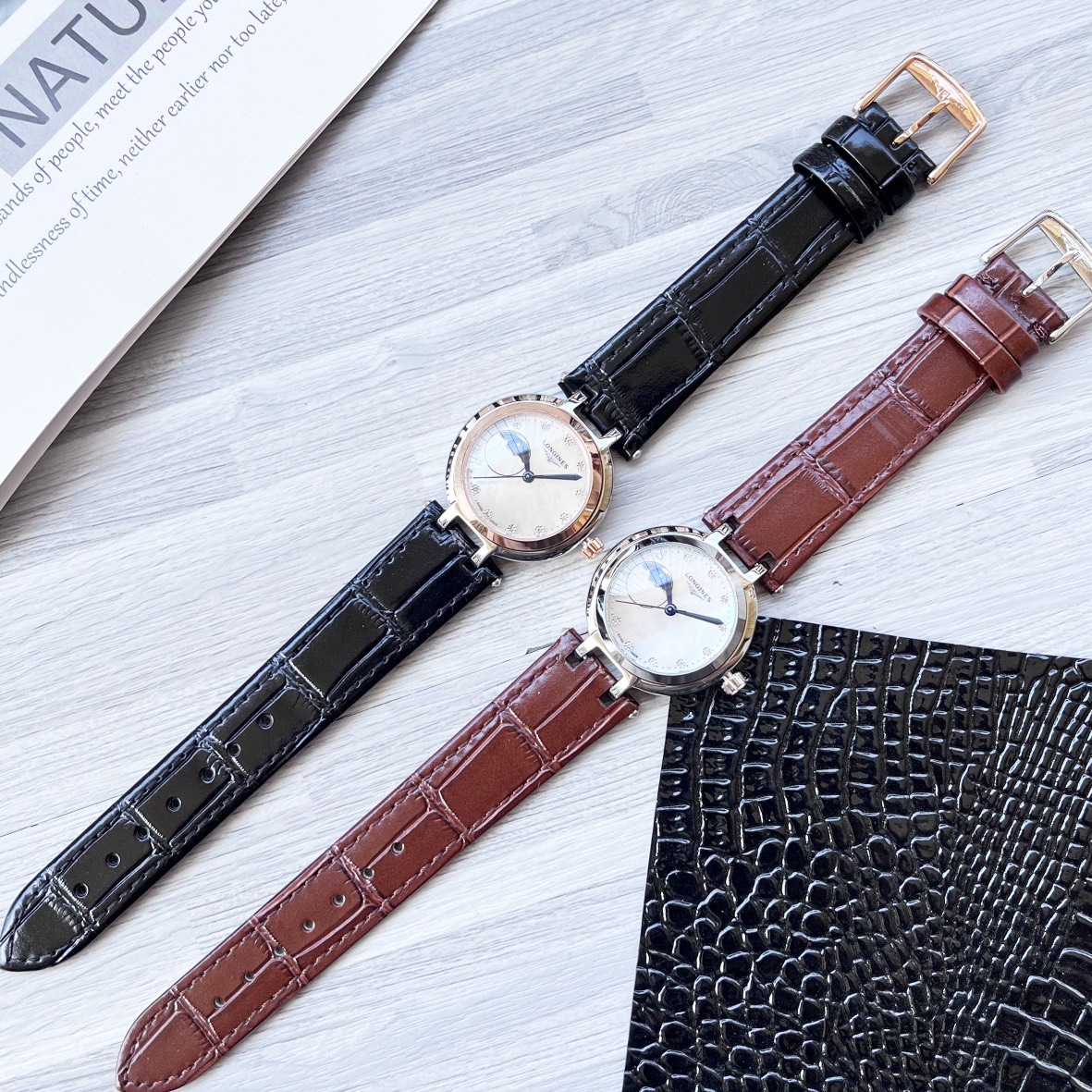 这款手表是AAAAA 1:1 质量 (非常棒). 使用了和原版一模一样的材料. 商标部分也保持了和浪琴/Longines一样. 图片拍摄是实物手表拍摄, 您所收到的实物保证和我们图片一模一样.