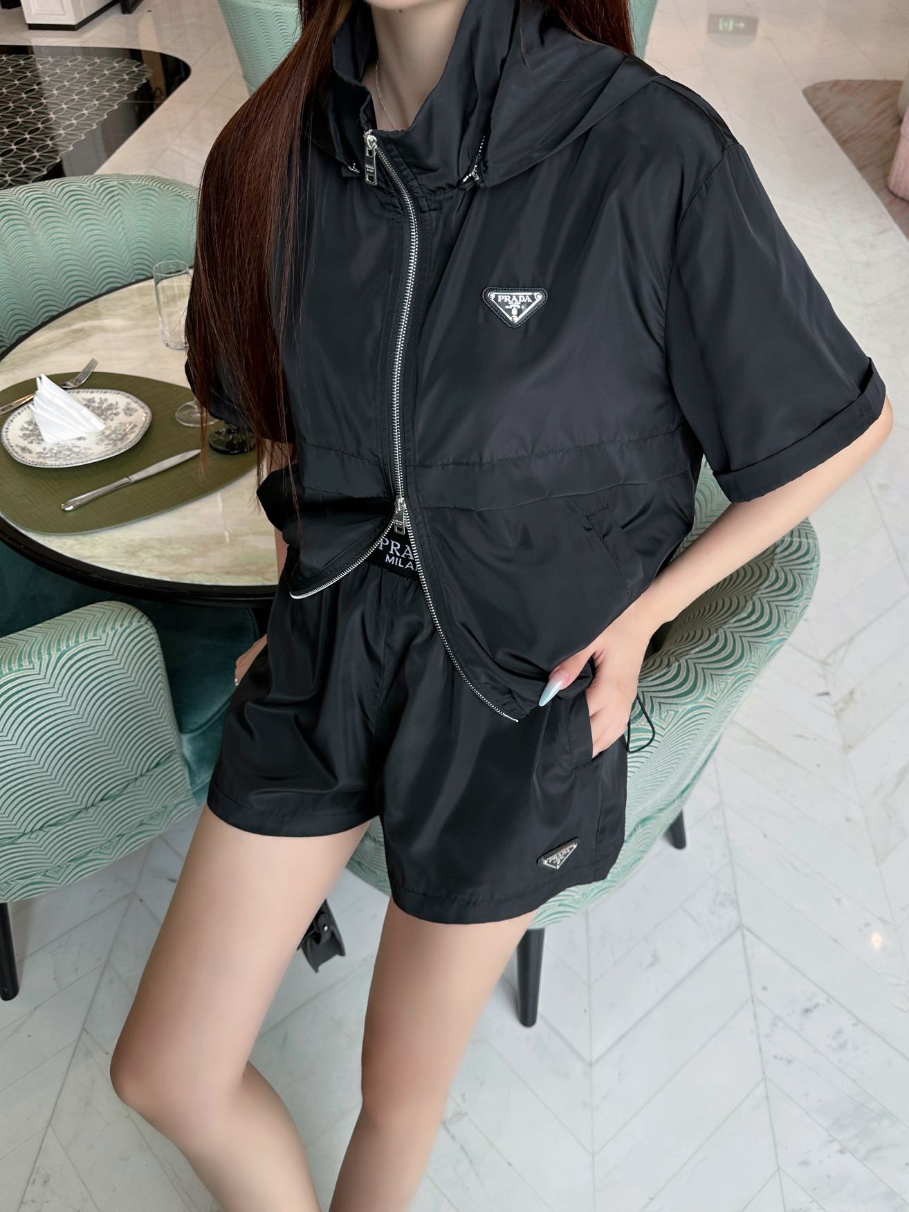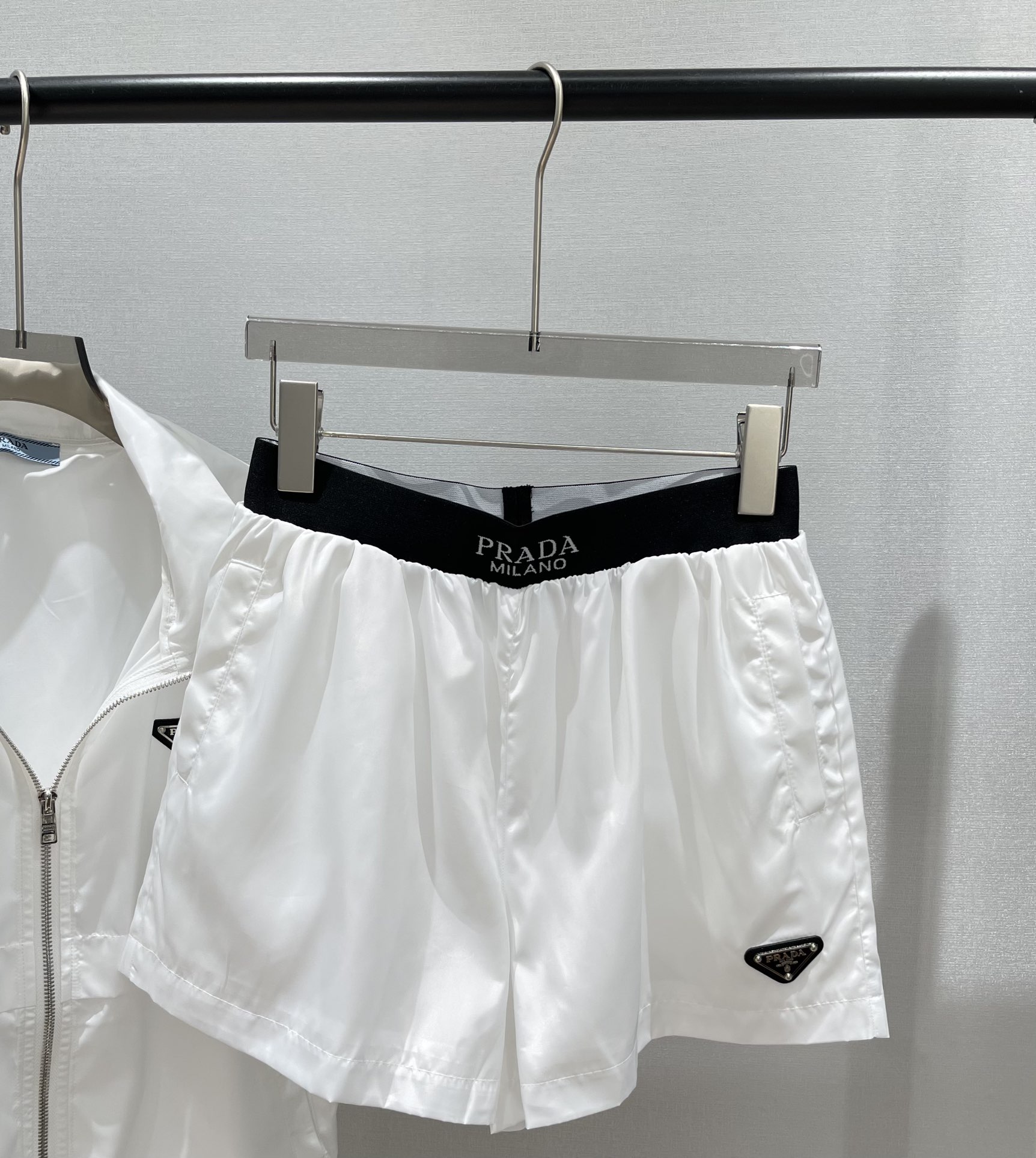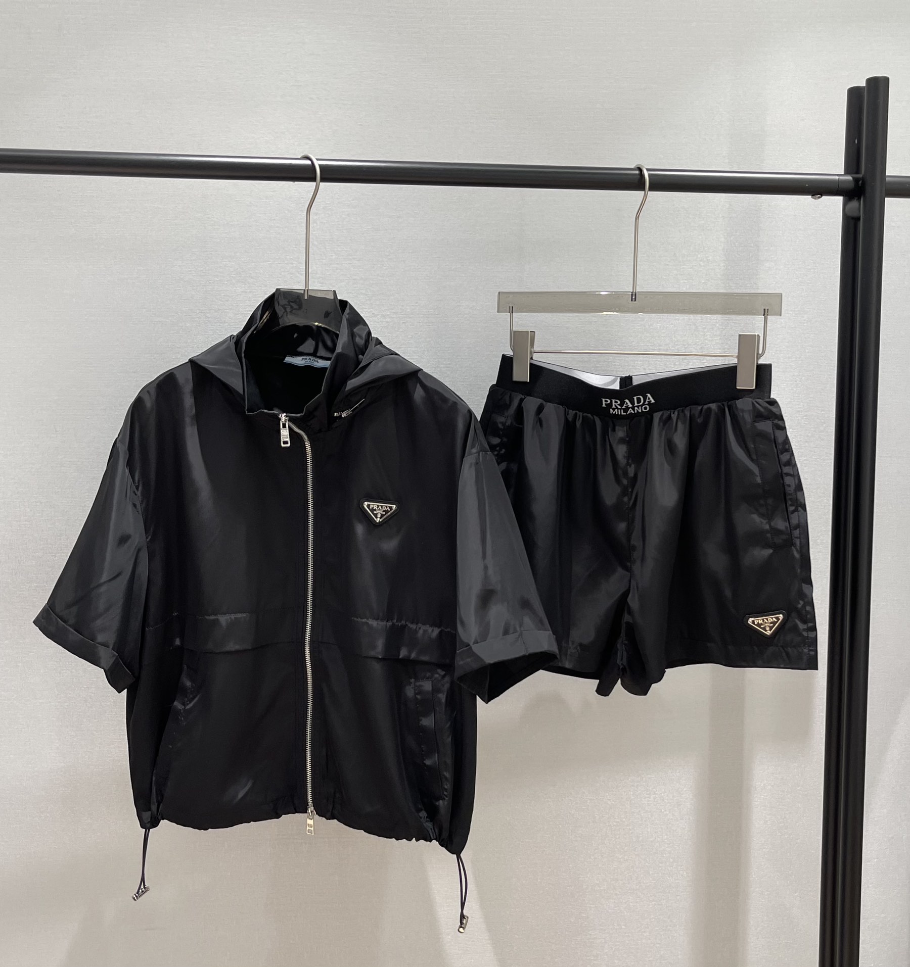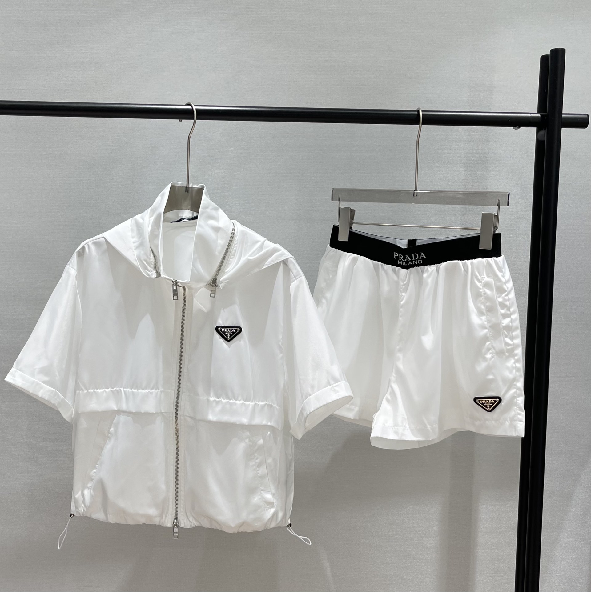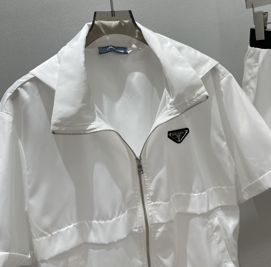 这款衣服是AAAAA 1:1 质量 (非常棒). 使用了和原版一模一样的材料. 商标部分也保持了和普拉达/Prada一样. 图片拍摄是实物衣服拍摄, 您所收到的实物保证和我们图片一模一样.