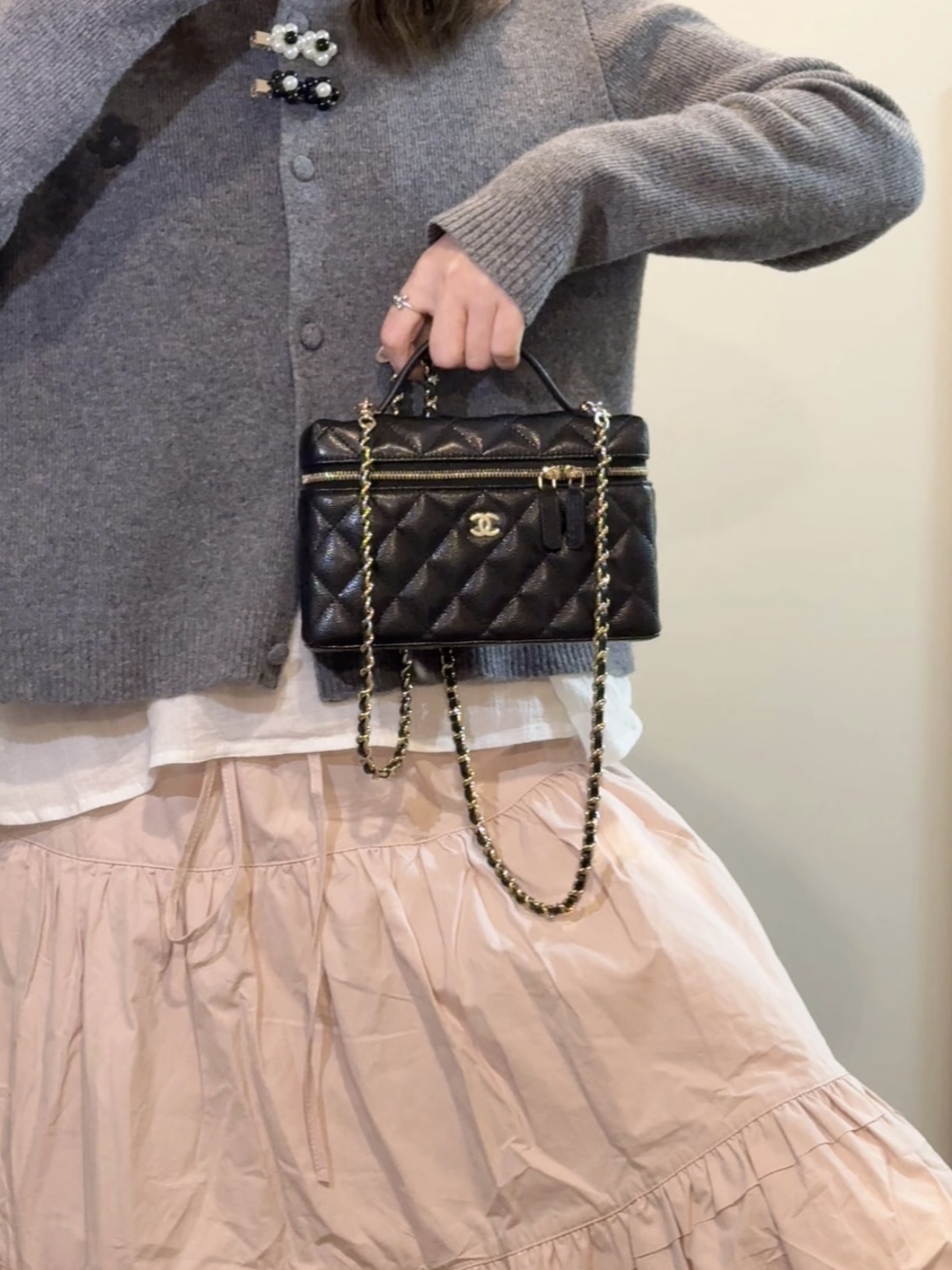 这款包包是AAAAA 1:1 质量 (非常棒). 使用了和原版一模一样的材料. 商标部分也保持了和香奈儿/Chanel一样. 图片拍摄是实物包包拍摄, 您所收到的实物保证和我们图片一模一样.