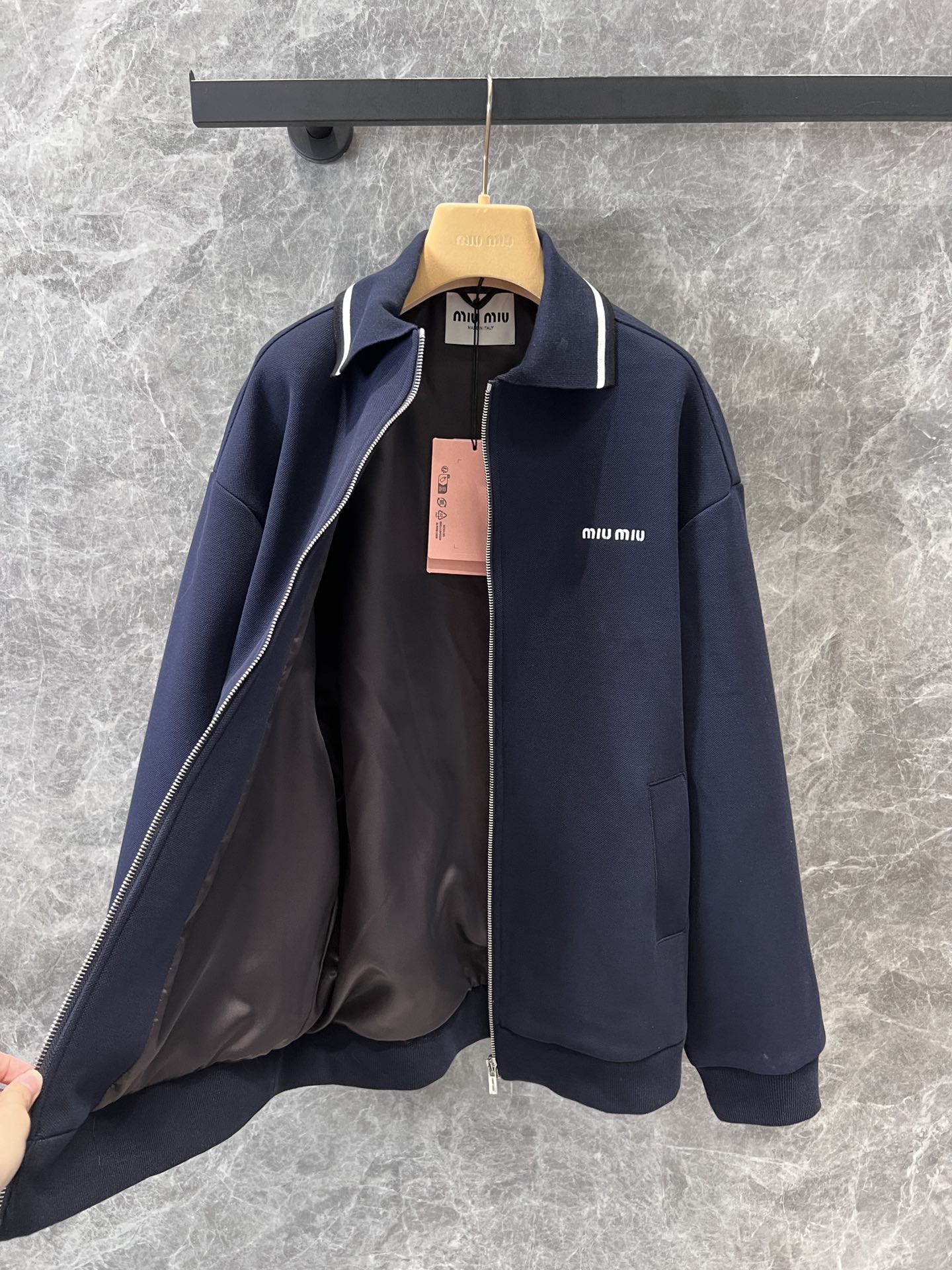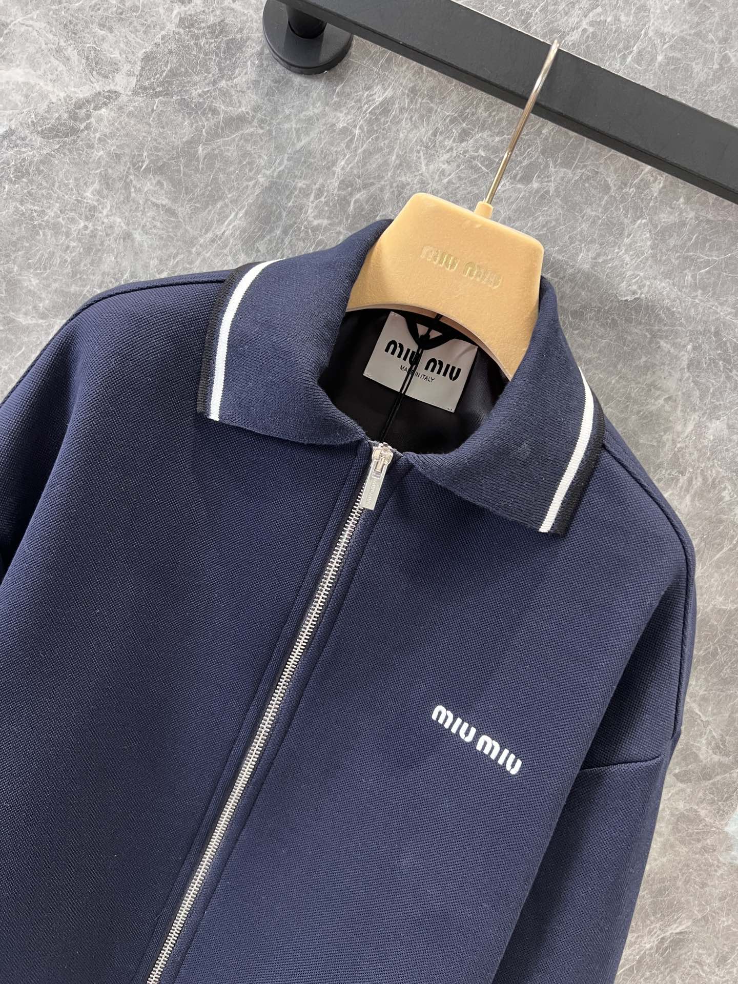 这款衣服是AAAAA 1:1 质量 (非常棒). 使用了和原版一模一样的材料. 商标部分也保持了和缪缪/Miu Miu一样. 图片拍摄是实物衣服拍摄, 您所收到的实物保证和我们图片一模一样.