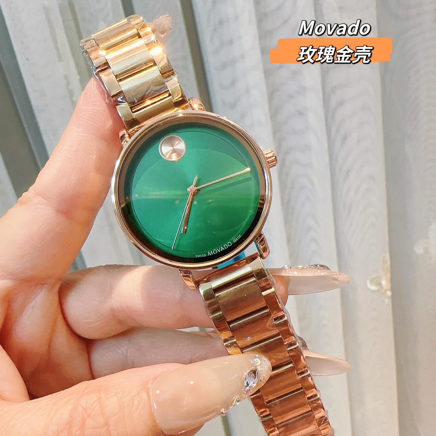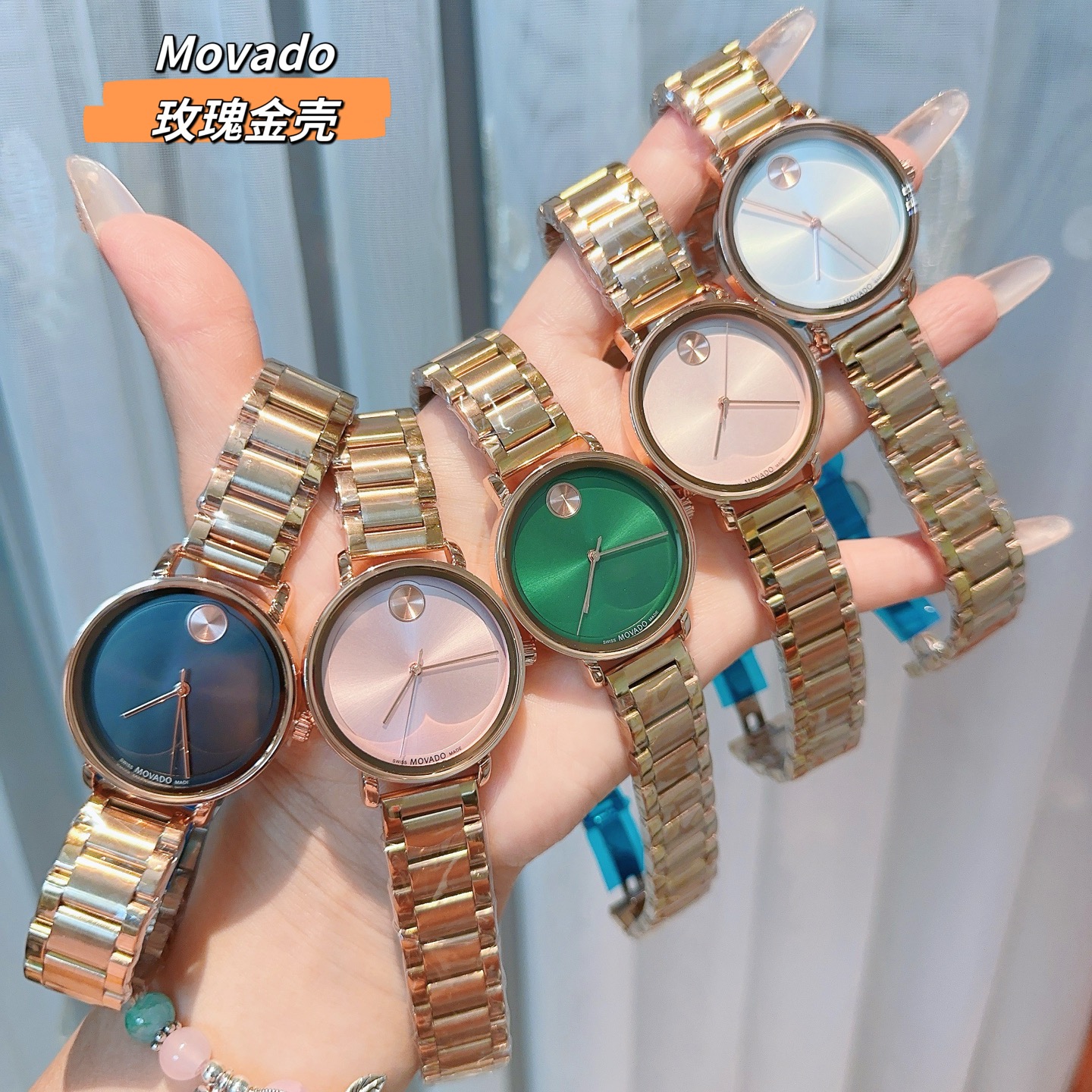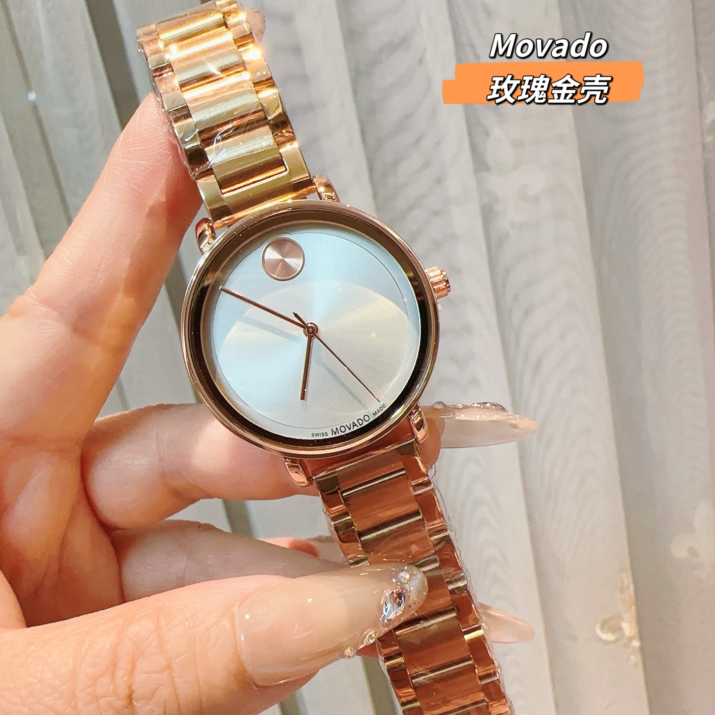 这款手表是AAAAA 1:1 质量 (非常棒). 使用了和原版一模一样的材料. 商标部分也保持了和摩凡陀/Movado一样. 图片拍摄是实物手表拍摄, 您所收到的实物保证和我们图片一模一样.