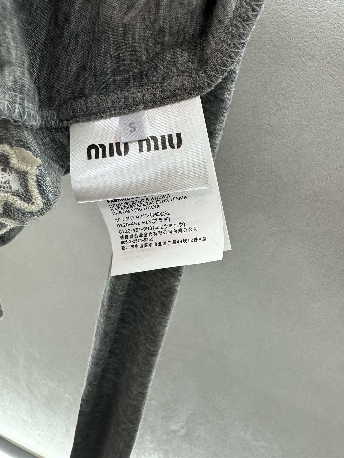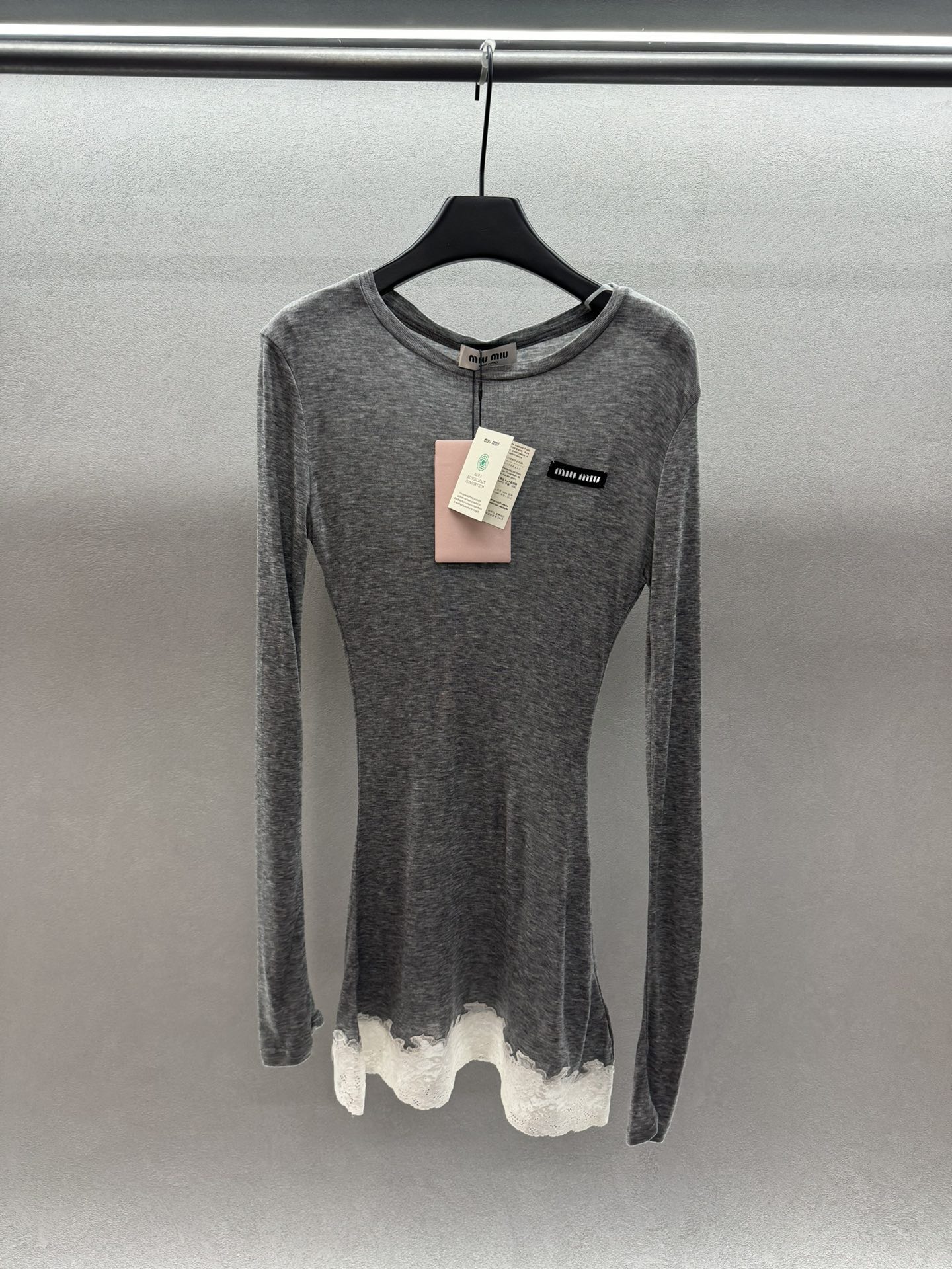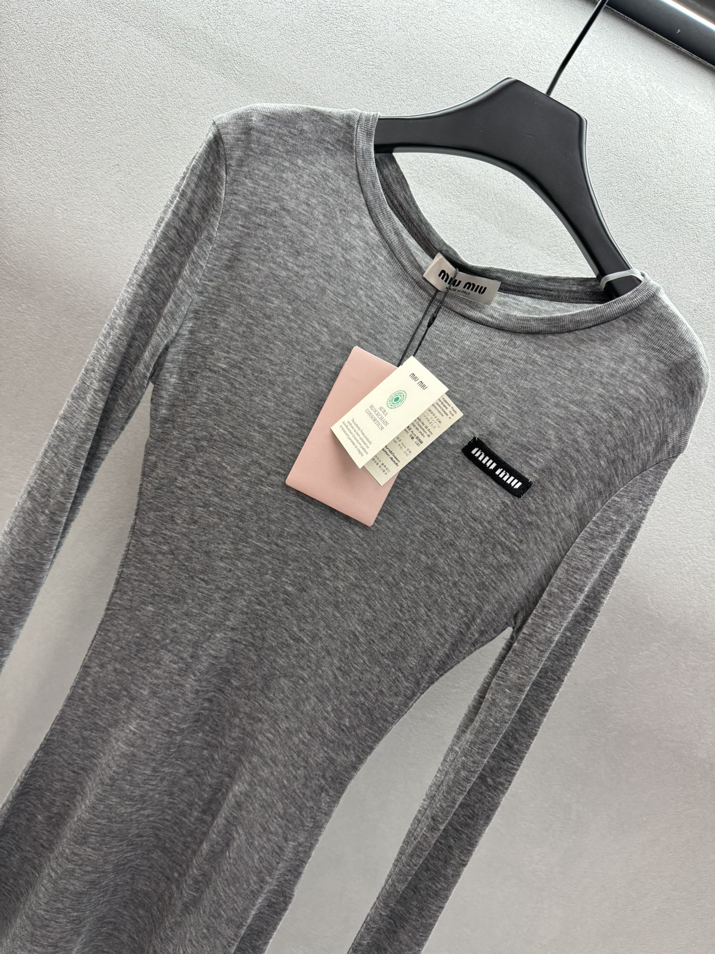 这款衣服是AAAAA 1:1 质量 (非常棒). 使用了和原版一模一样的材料. 商标部分也保持了和缪缪/Miu Miu一样. 图片拍摄是实物衣服拍摄, 您所收到的实物保证和我们图片一模一样.