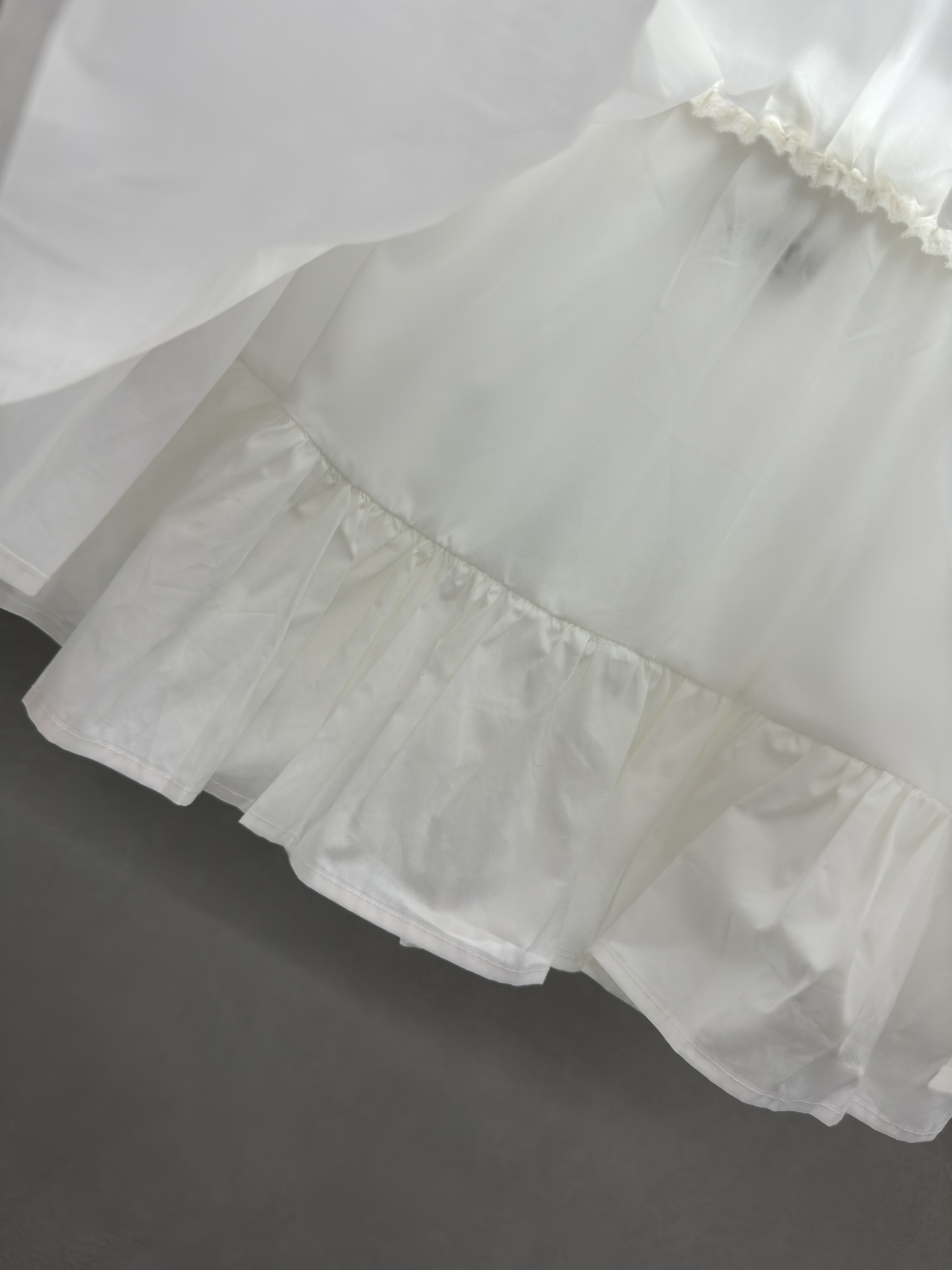 这款衣服是AAAAA 1:1 质量 (非常棒). 使用了和原版一模一样的材料. 商标部分也保持了和缪缪/Miu Miu一样. 图片拍摄是实物衣服拍摄, 您所收到的实物保证和我们图片一模一样.