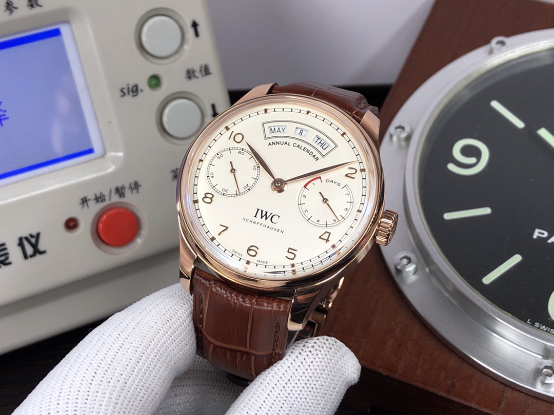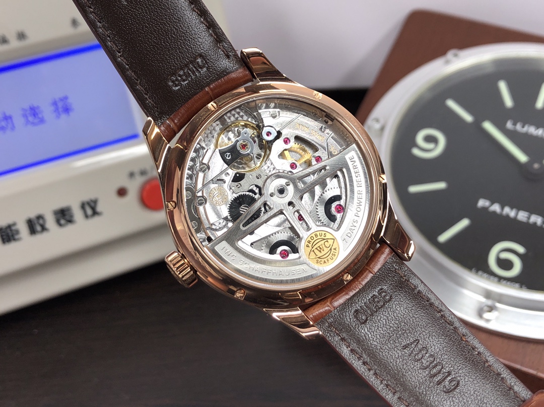 这款手表是AAAAA 1:1 质量 (非常棒). 使用了和原版一模一样的材料. 商标部分也保持了和万国表/IWC Schaffhausen一样. 图片拍摄是实物手表拍摄, 您所收到的实物保证和我们图片一模一样.