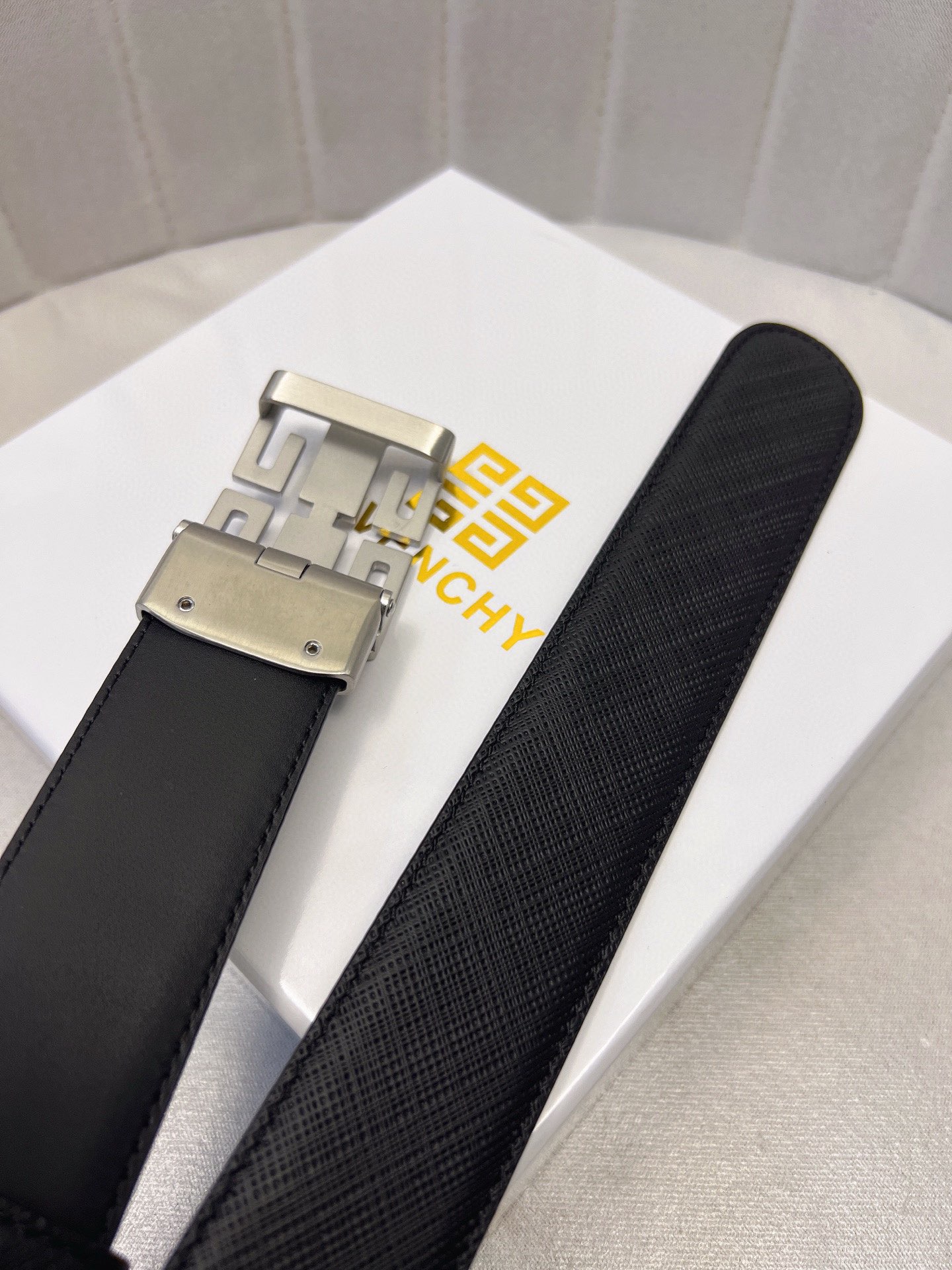 这款皮带是AAAAA 1:1 质量 (非常棒). 使用了和原版一模一样的材料. 商标部分也保持了和纪梵希/Givenchy一样. 图片拍摄是实物皮带拍摄, 您所收到的实物保证和我们图片一模一样.
