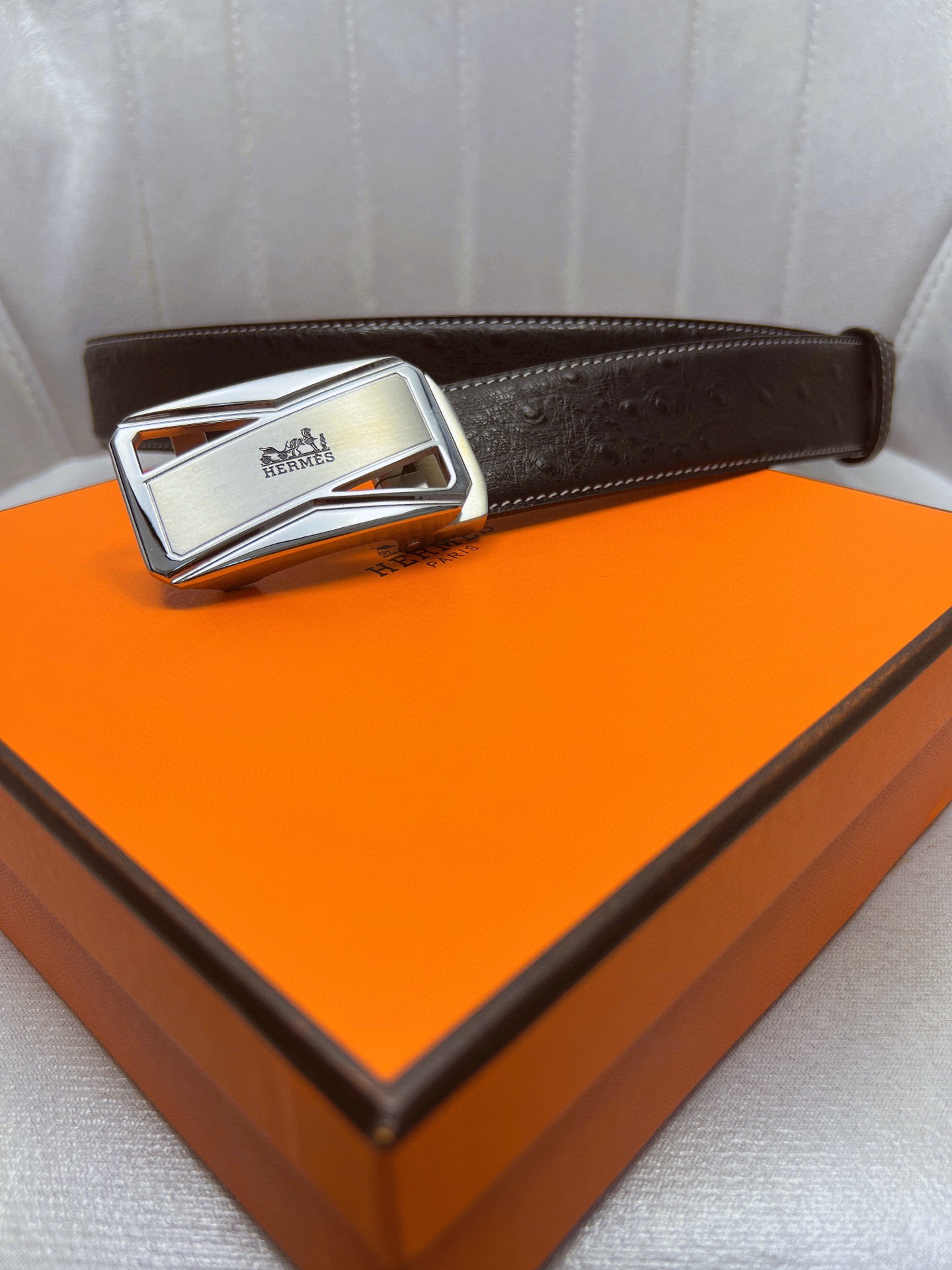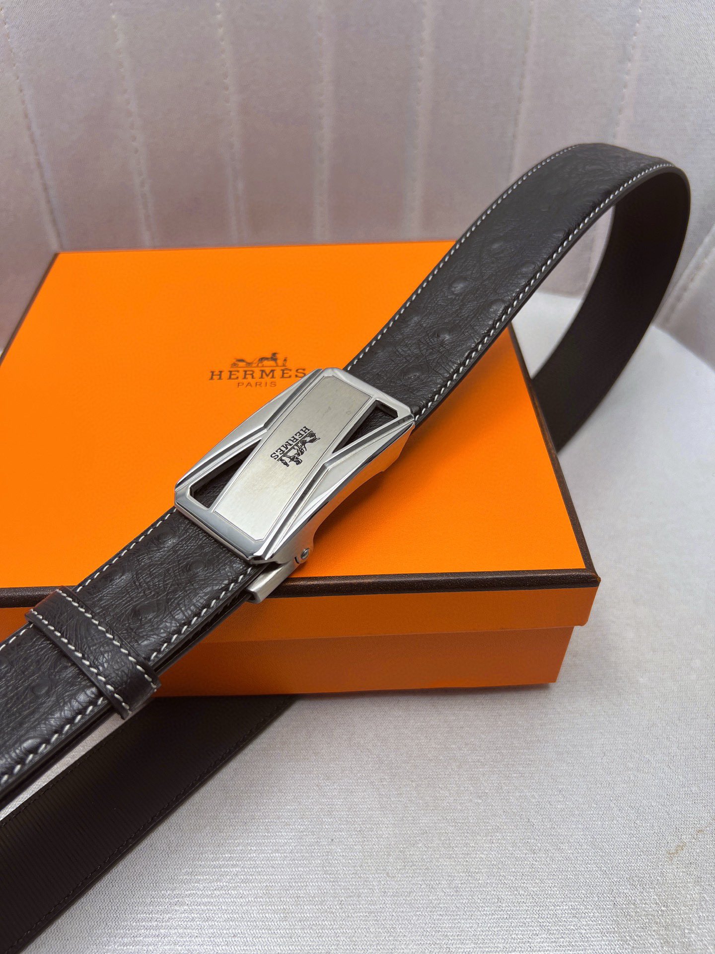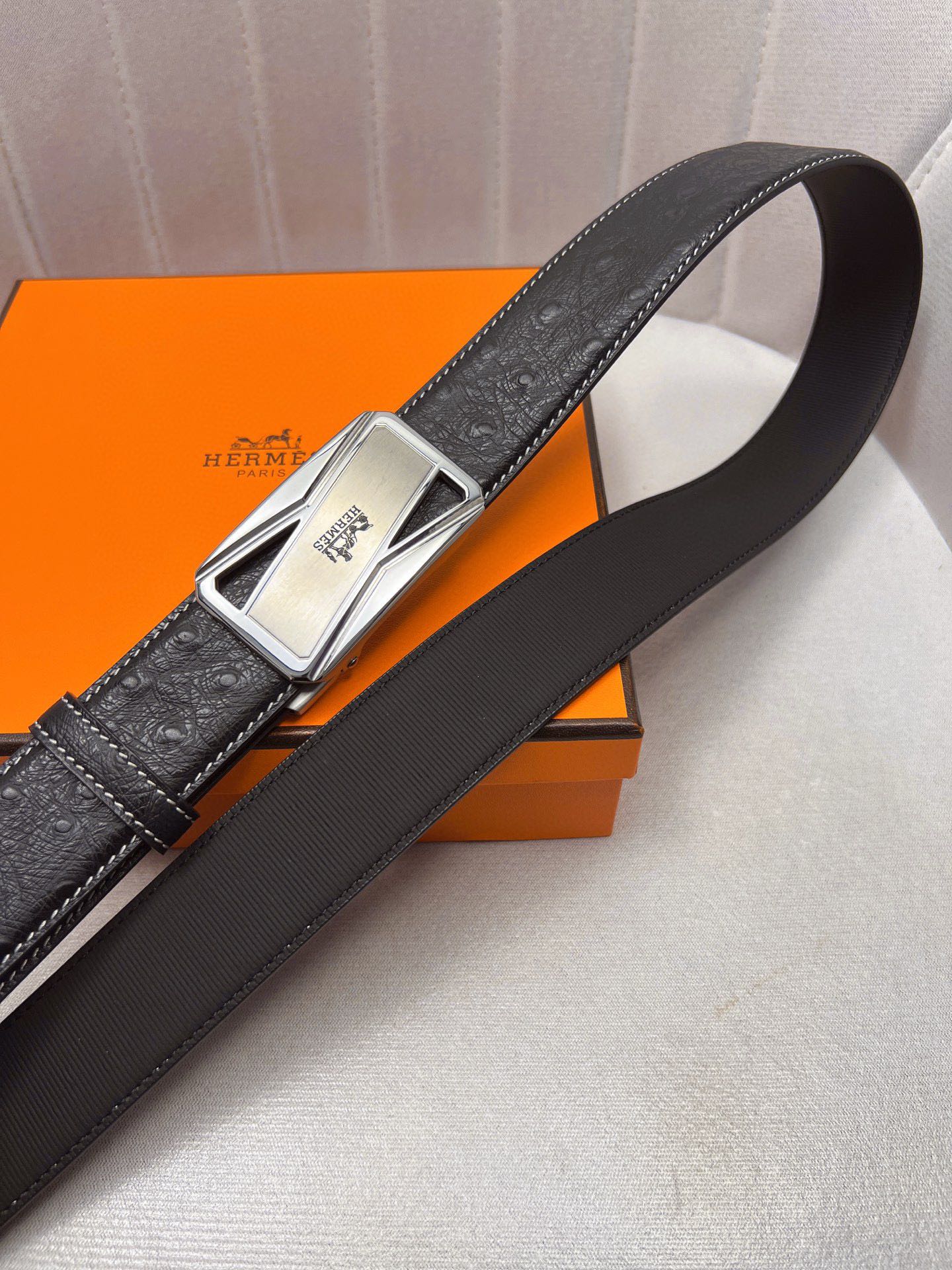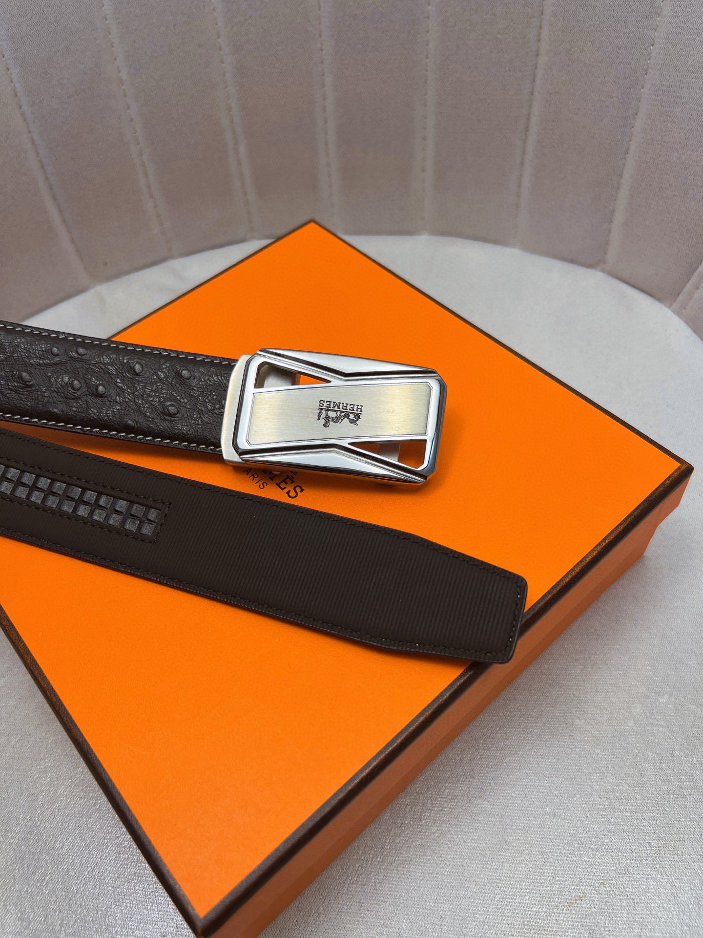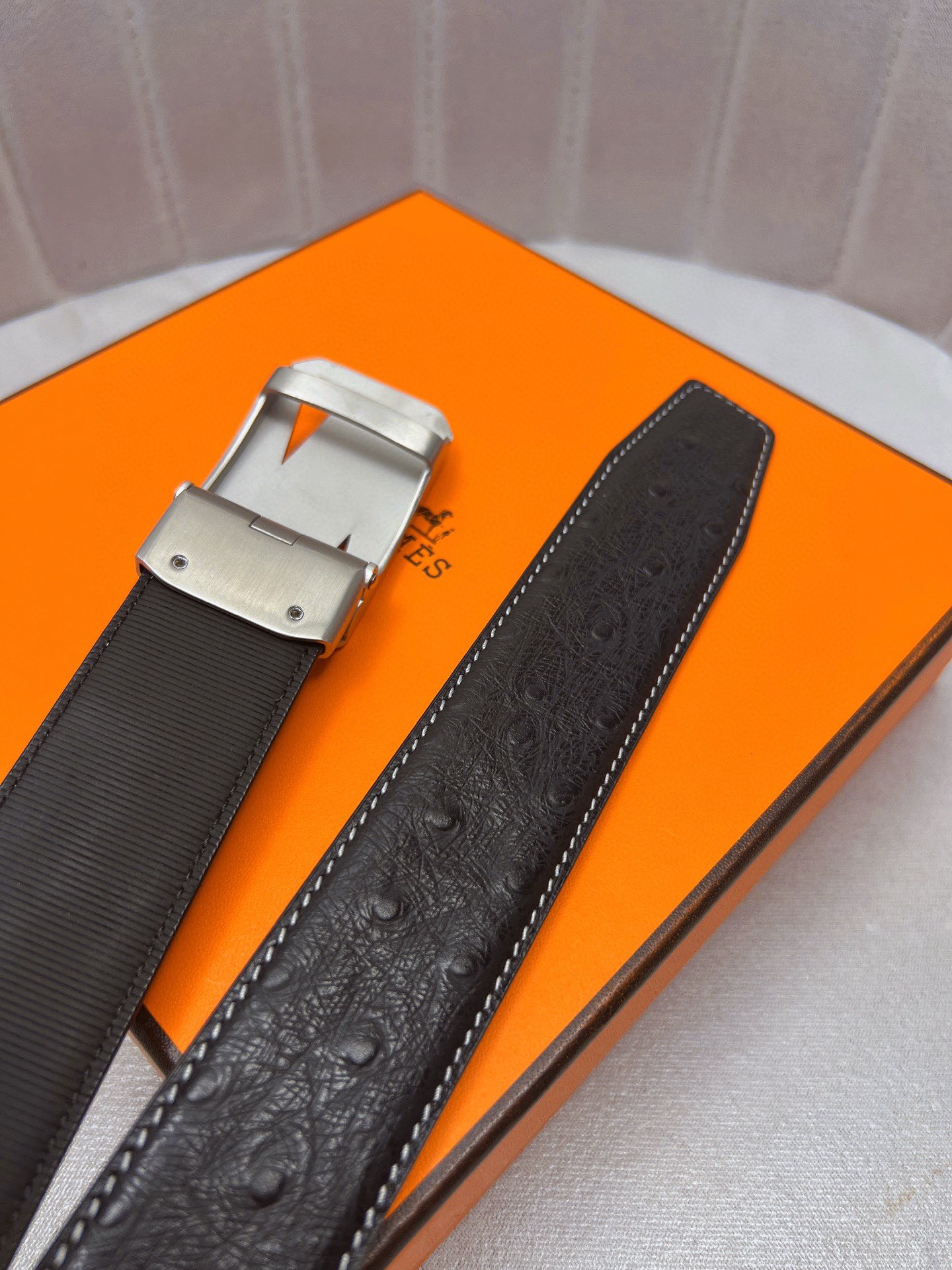 这款皮带是AAAAA 1:1 质量 (非常棒). 使用了和原版一模一样的材料. 商标部分也保持了和爱马仕/Hermes一样. 图片拍摄是实物皮带拍摄, 您所收到的实物保证和我们图片一模一样.