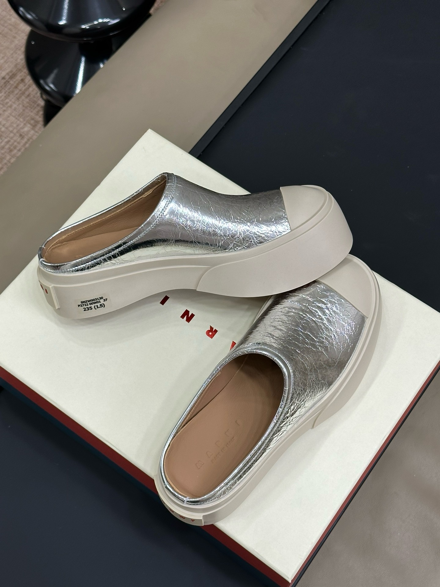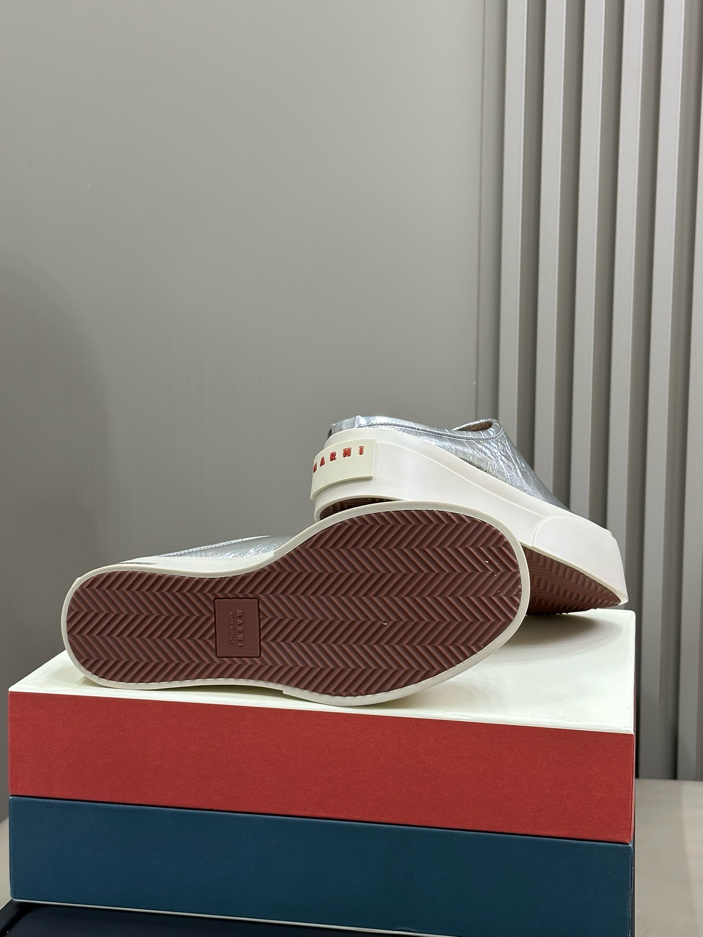这款鞋子是AAAAA 1:1 质量 (非常棒). 使用了和原版一模一样的材料. 商标部分也保持了和马尔尼/Marni一样. 图片拍摄是实物鞋子拍摄, 您所收到的实物保证和我们图片一模一样.