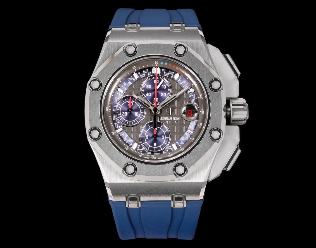 这款手表是AAAAA 1:1 质量 (非常棒). 使用了和原版一模一样的材料. 商标部分也保持了和爱彼/Audemars Piguet一样. 图片拍摄是实物手表拍摄, 您所收到的实物保证和我们图片一模一样.