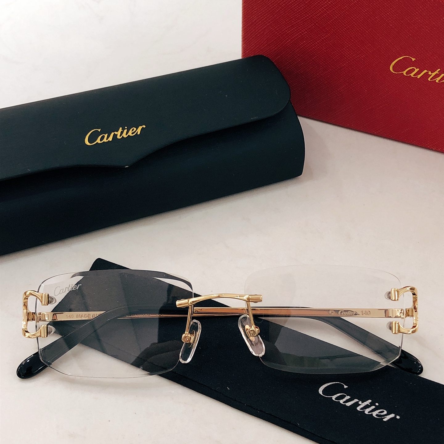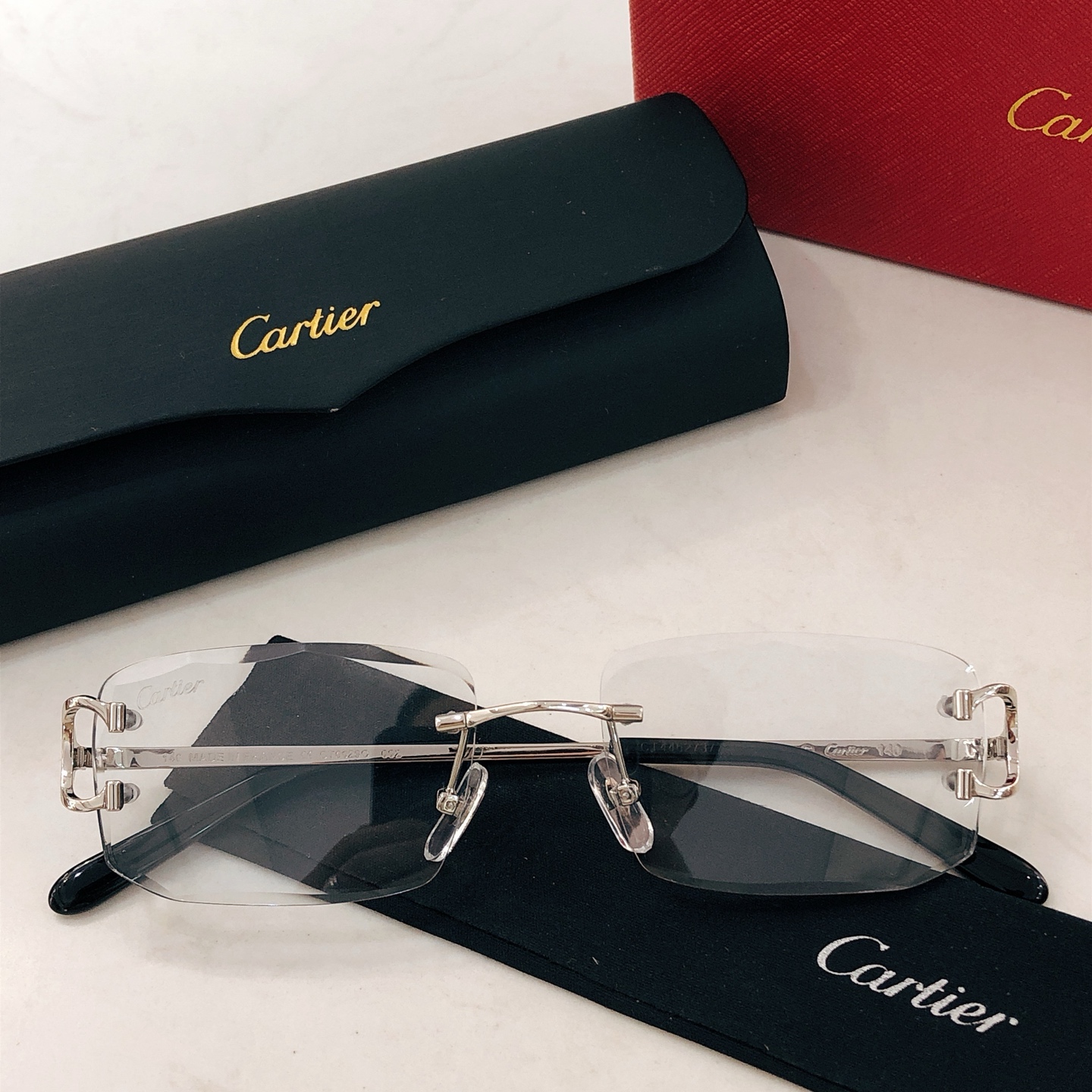 这款太阳眼镜是AAAAA 1:1 质量 (非常棒). 使用了和原版一模一样的材料. 商标部分也保持了和卡地亚/Cartier一样. 图片拍摄是实物太阳眼镜拍摄, 您所收到的实物保证和我们图片一模一样.