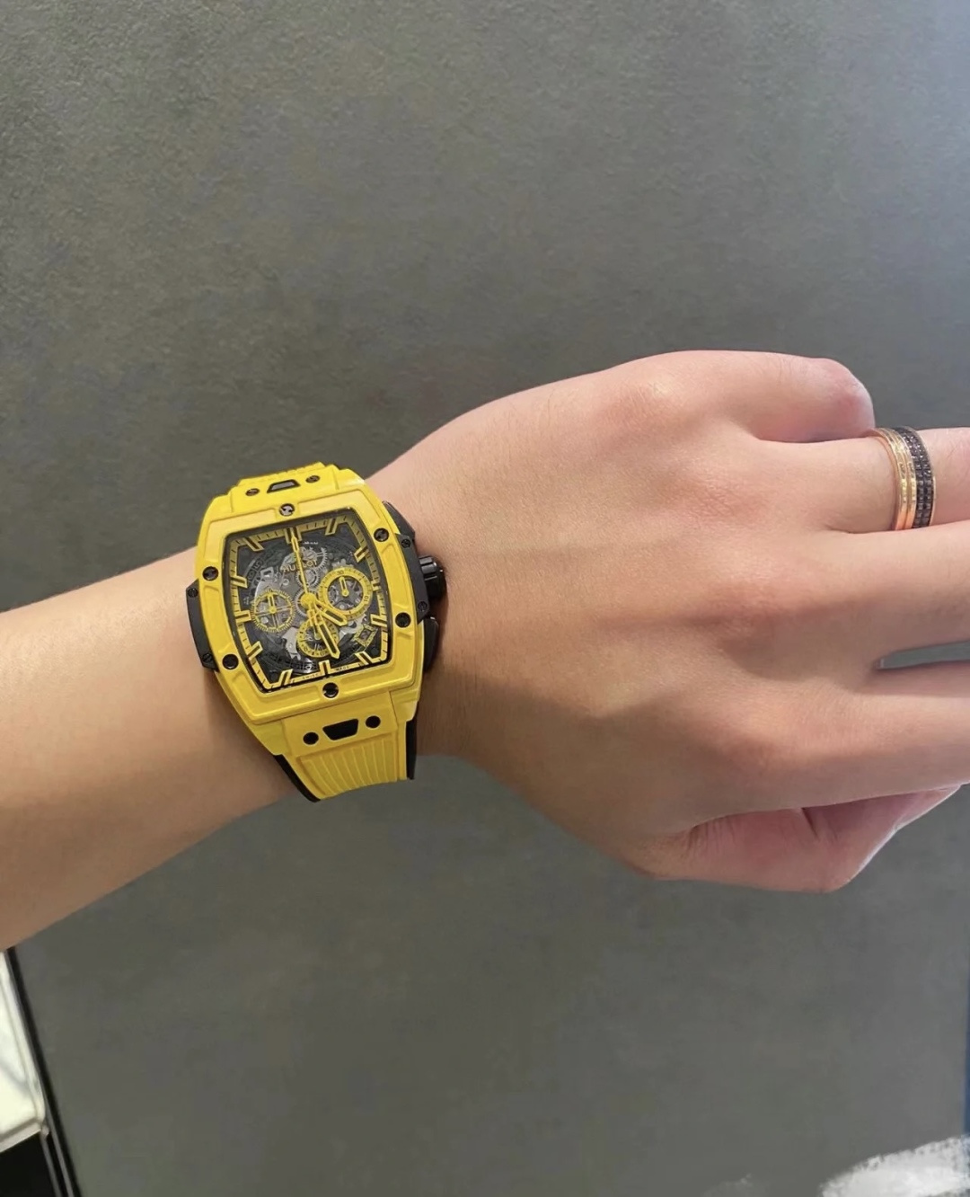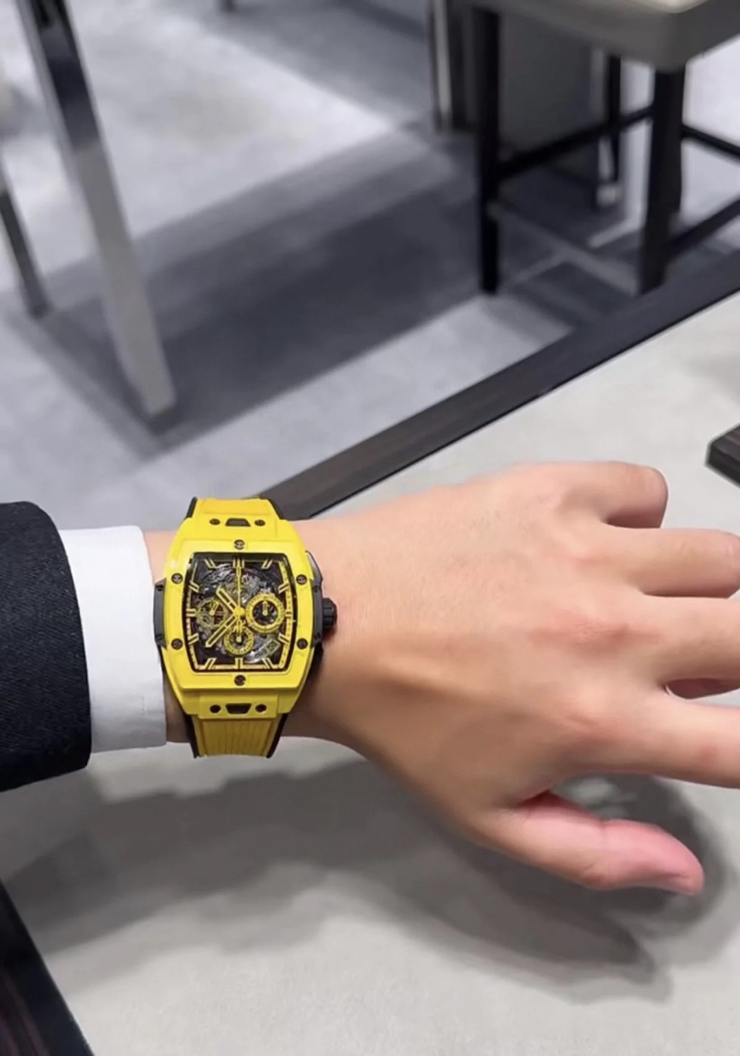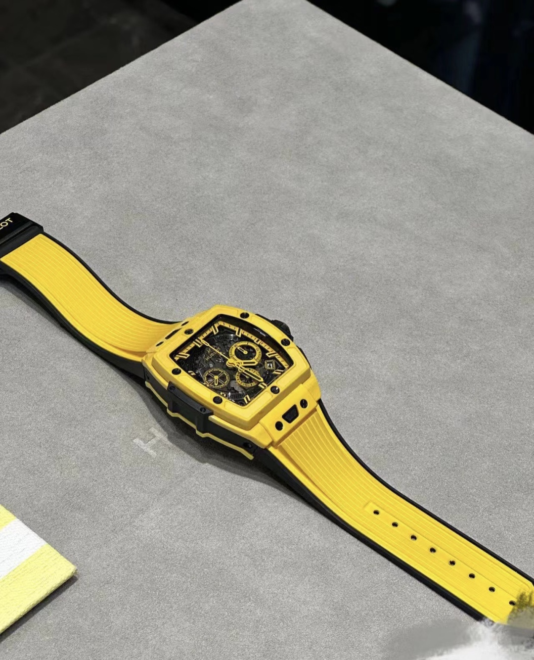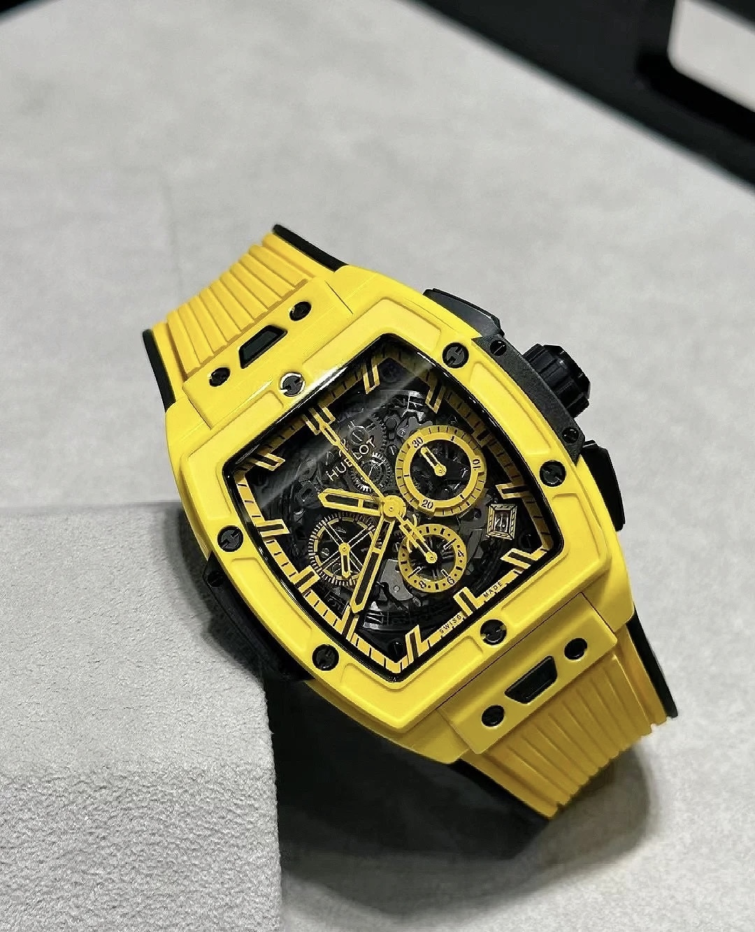 这款手表是AAAAA 1:1 质量 (非常棒). 使用了和原版一模一样的材料. 商标部分也保持了和Hublot一样. 图片拍摄是实物手表拍摄, 您所收到的实物保证和我们图片一模一样.