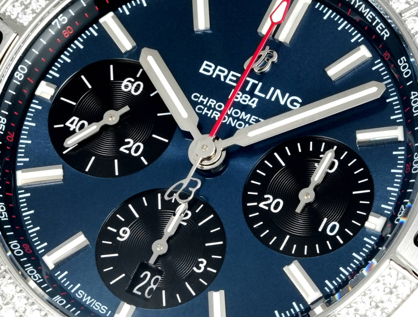 这款手表是AAAAA 1:1 质量 (非常棒). 使用了和原版一模一样的材料. 商标部分也保持了和Breitling一样. 图片拍摄是实物手表拍摄, 您所收到的实物保证和我们图片一模一样.