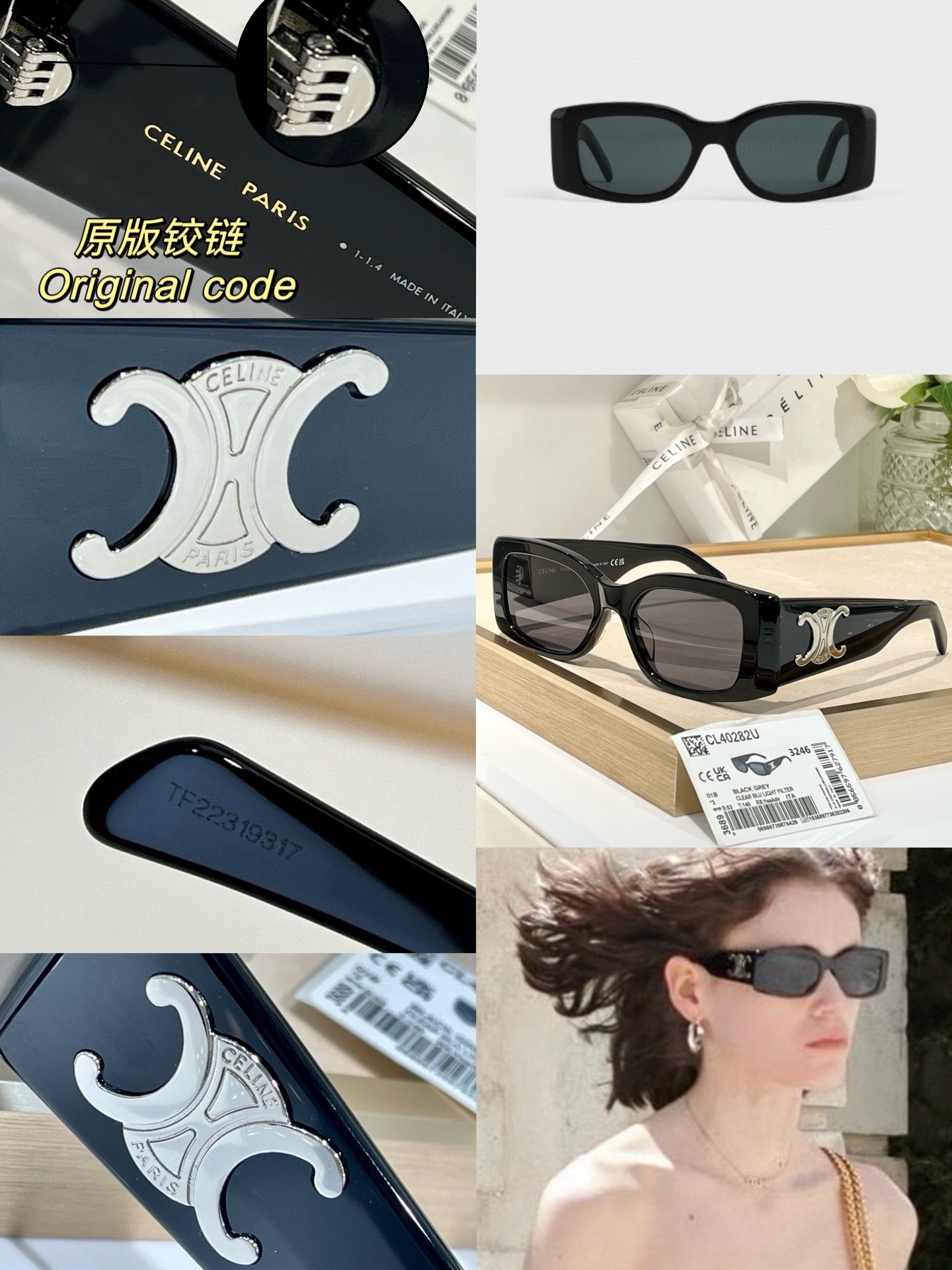 这款太阳眼镜是AAAAA 1:1 质量 (非常棒). 使用了和原版一模一样的材料. 商标部分也保持了和思琳/Celine一样. 图片拍摄是实物太阳眼镜拍摄, 您所收到的实物保证和我们图片一模一样.