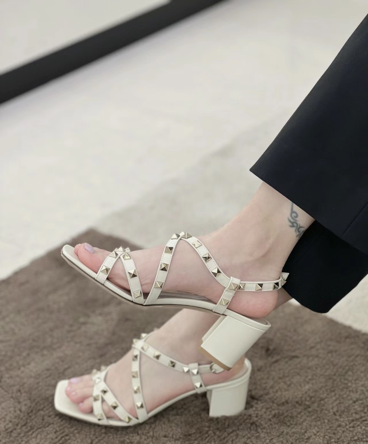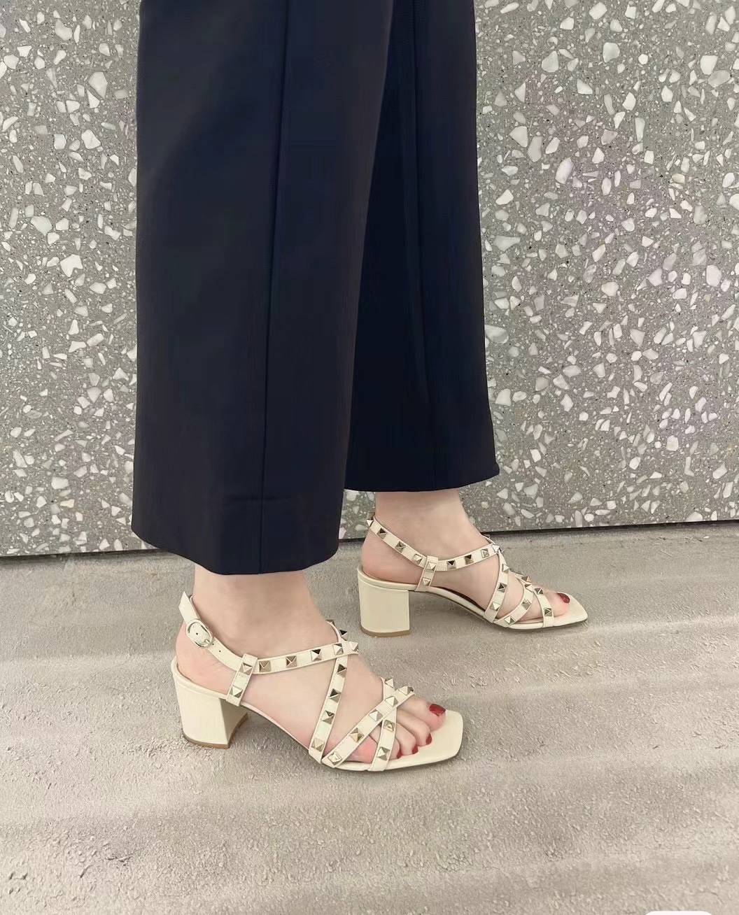 这款鞋子是AAAAA 1:1 质量 (非常棒). 使用了和原版一模一样的材料. 商标部分也保持了和华伦天奴/Valentino一样. 图片拍摄是实物鞋子拍摄, 您所收到的实物保证和我们图片一模一样.