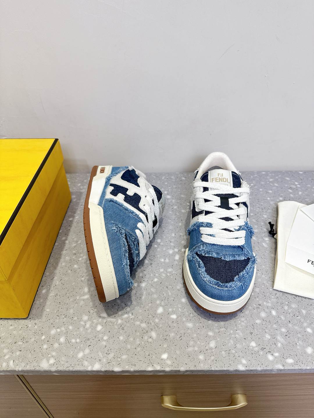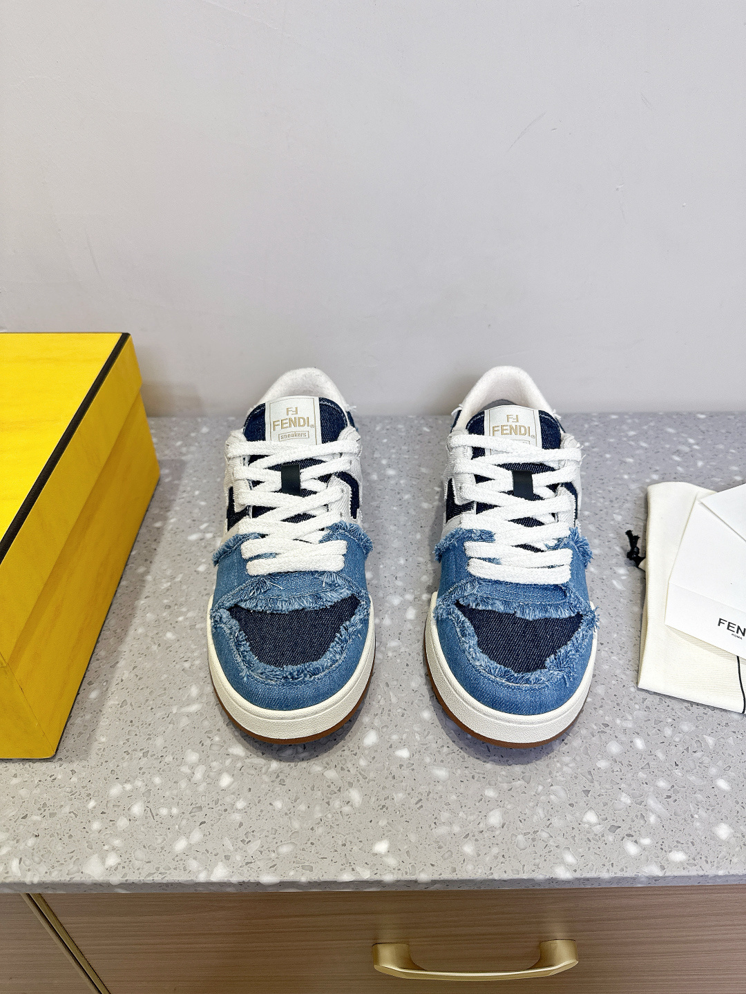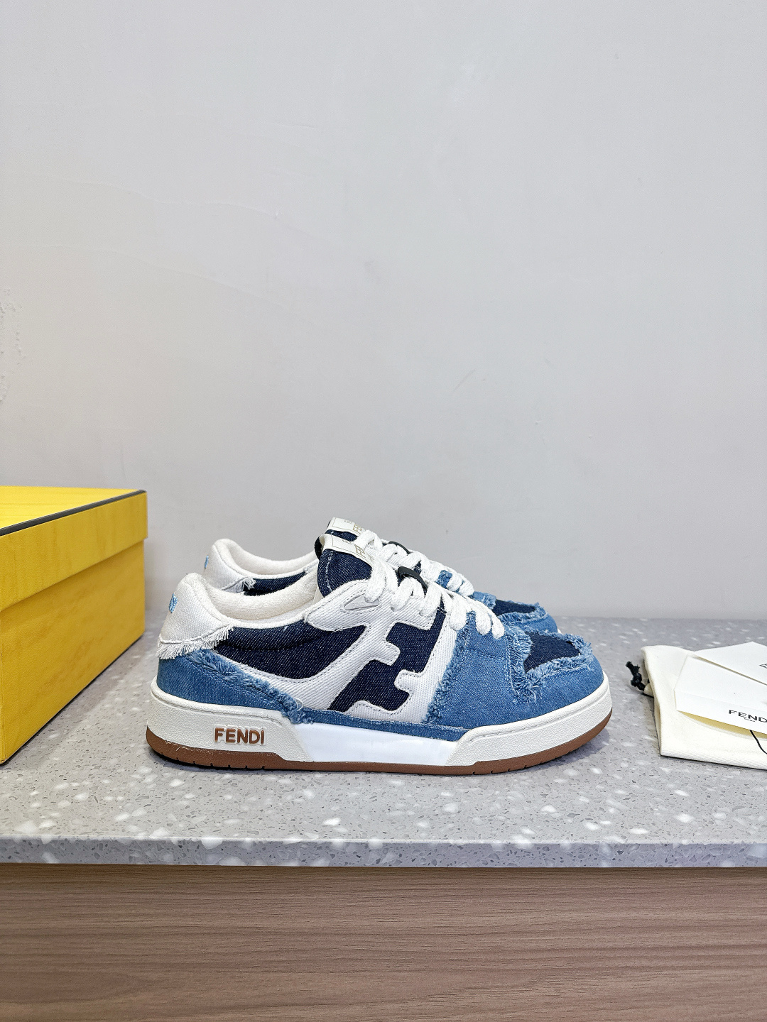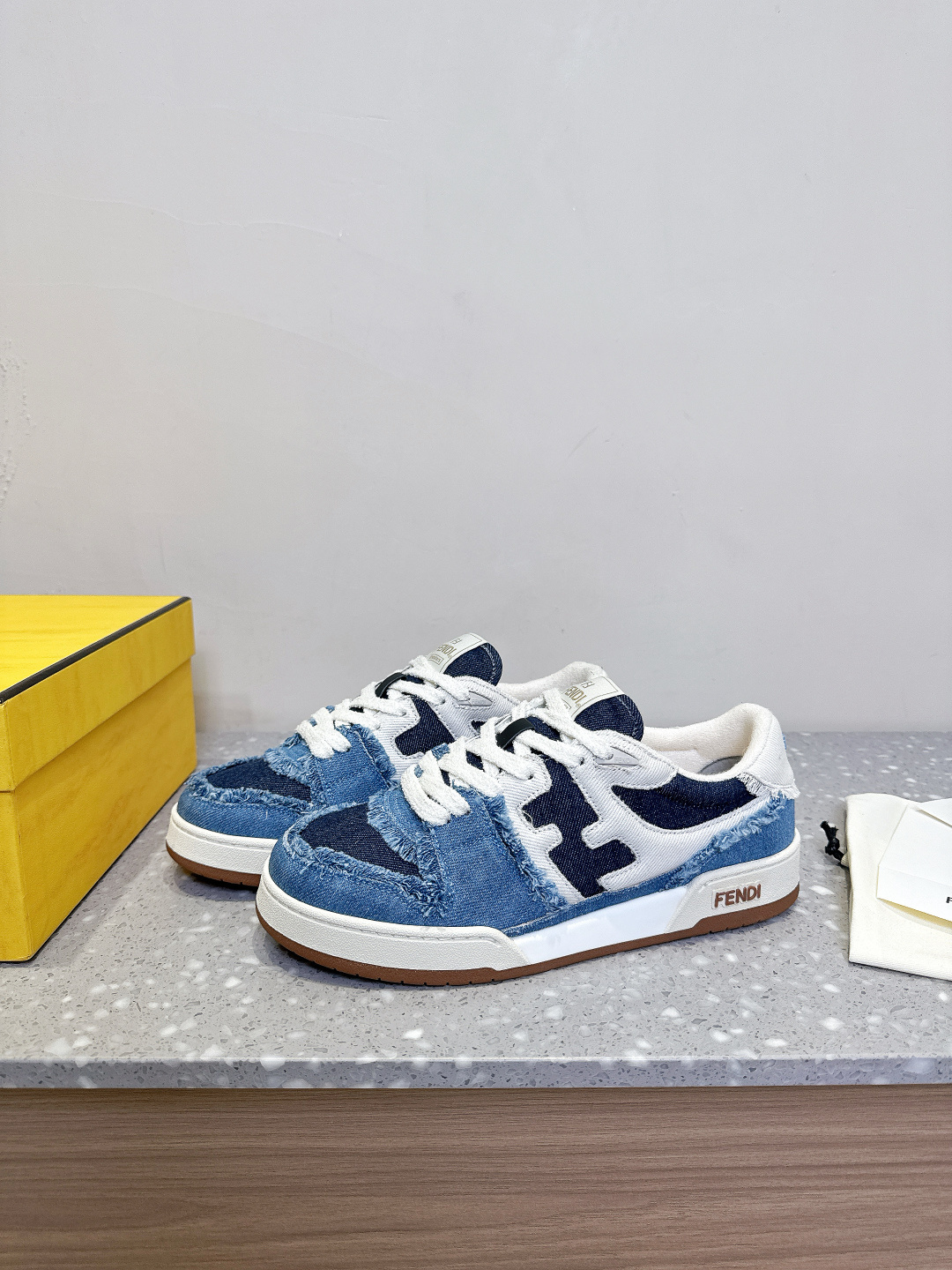 这款鞋子是AAAAA 1:1 质量 (非常棒). 使用了和原版一模一样的材料. 商标部分也保持了和芬迪/Fendi一样. 图片拍摄是实物鞋子拍摄, 您所收到的实物保证和我们图片一模一样.
