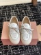 这款鞋子是AAAAA 1:1 质量 (非常棒). 使用了和原版一模一样的材料. 商标部分也保持了和缪缪/Miu Miu一样. 图片拍摄是实物鞋子拍摄, 您所收到的实物保证和我们图片一模一样.