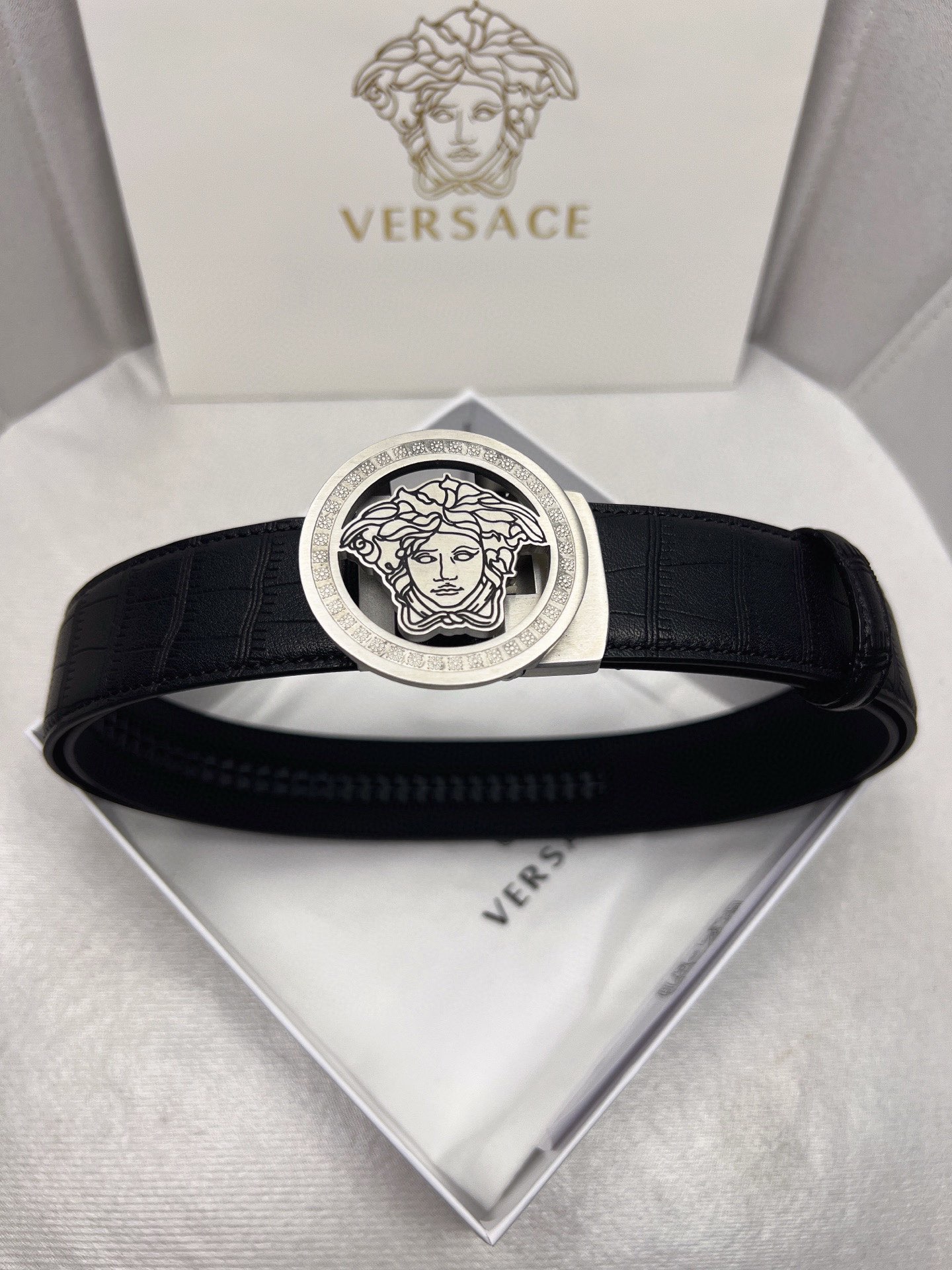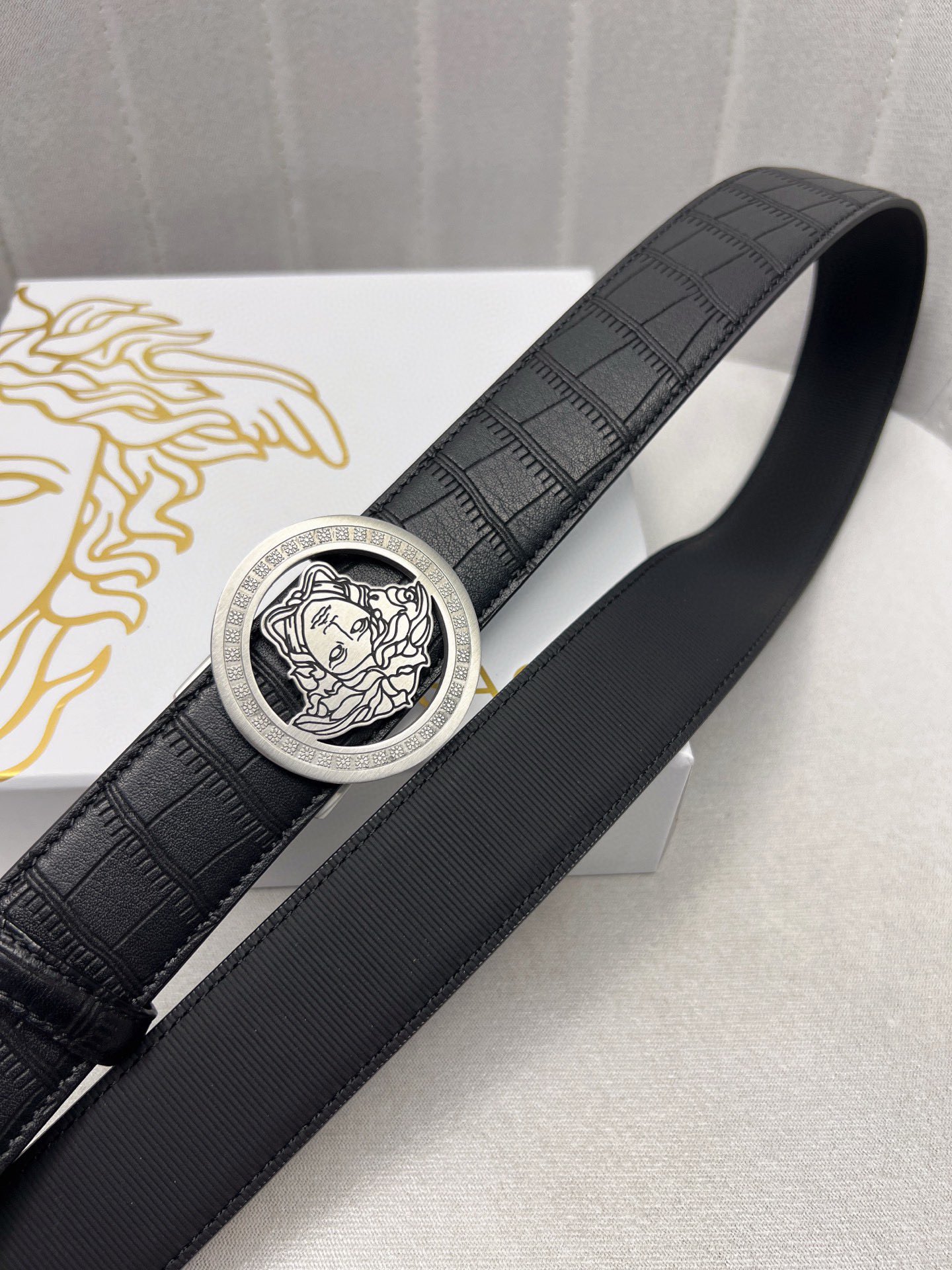 这款皮带是AAAAA 1:1 质量 (非常棒). 使用了和原版一模一样的材料. 商标部分也保持了和范思哲/Versace一样. 图片拍摄是实物皮带拍摄, 您所收到的实物保证和我们图片一模一样.