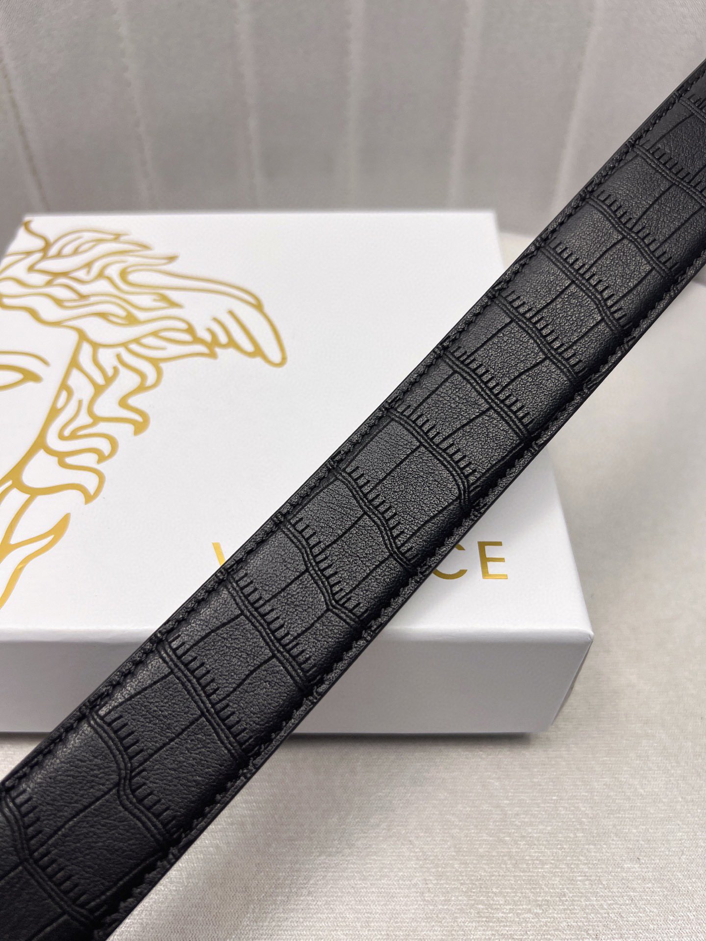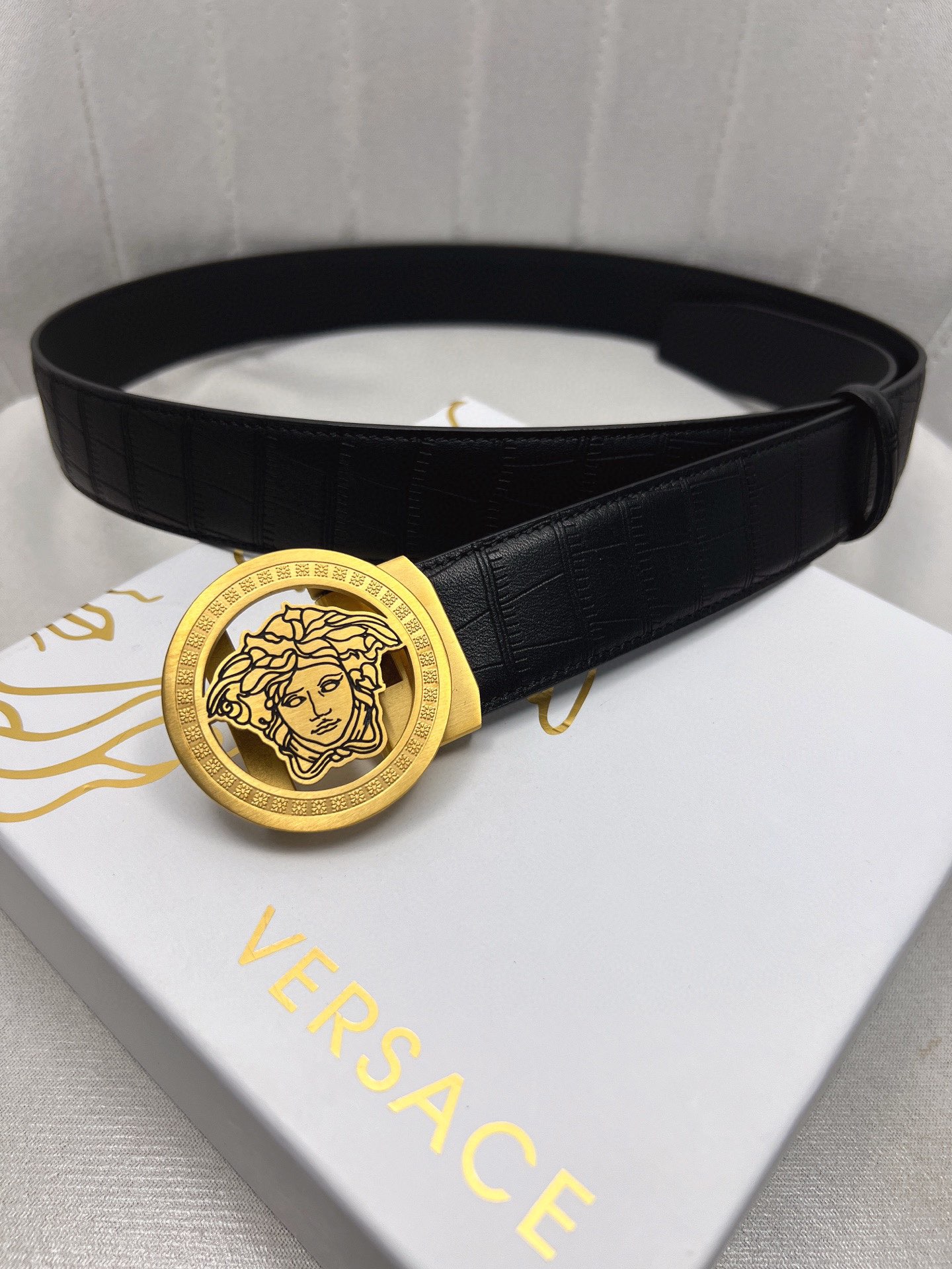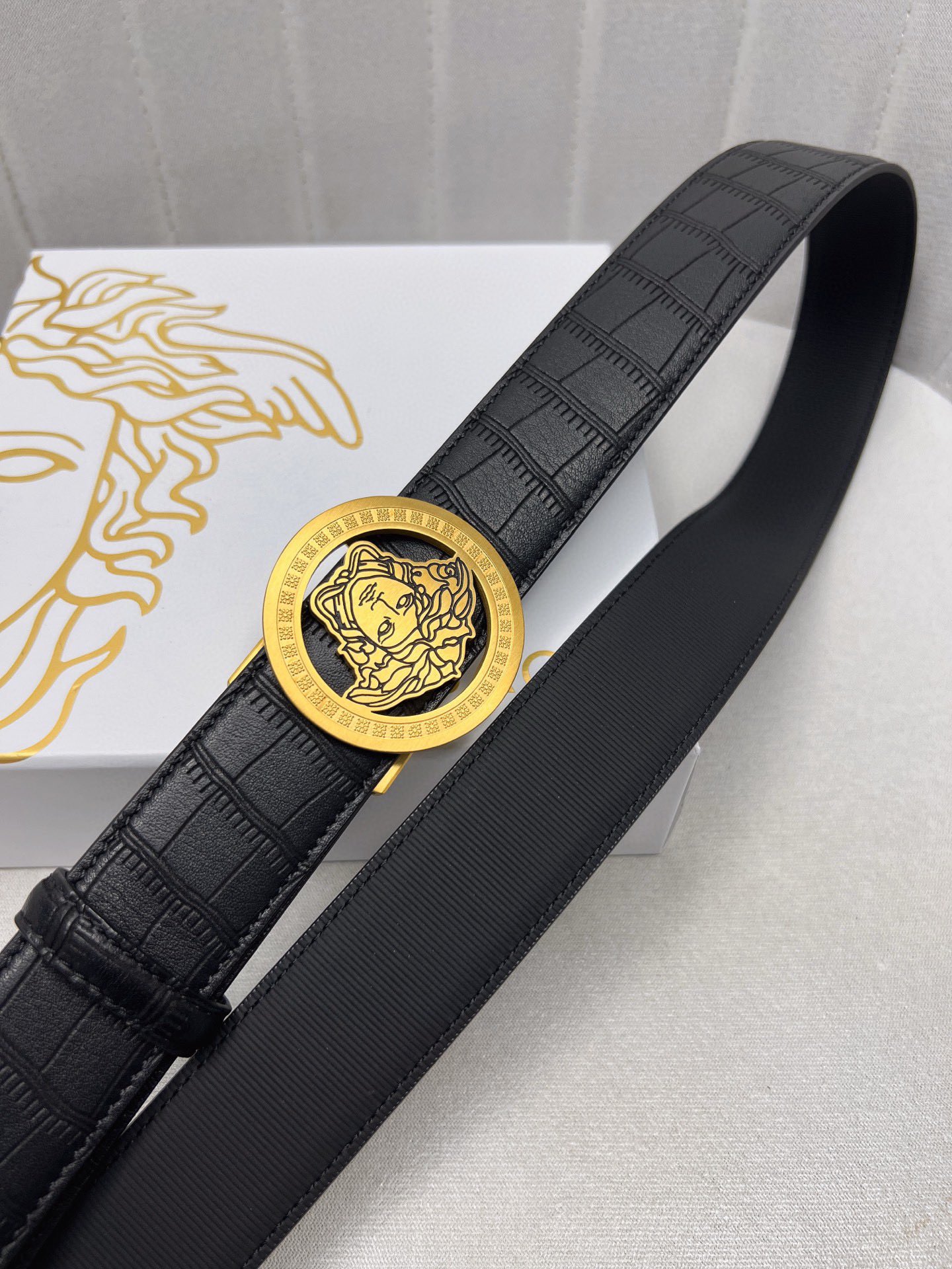 这款皮带是AAAAA 1:1 质量 (非常棒). 使用了和原版一模一样的材料. 商标部分也保持了和范思哲/Versace一样. 图片拍摄是实物皮带拍摄, 您所收到的实物保证和我们图片一模一样.