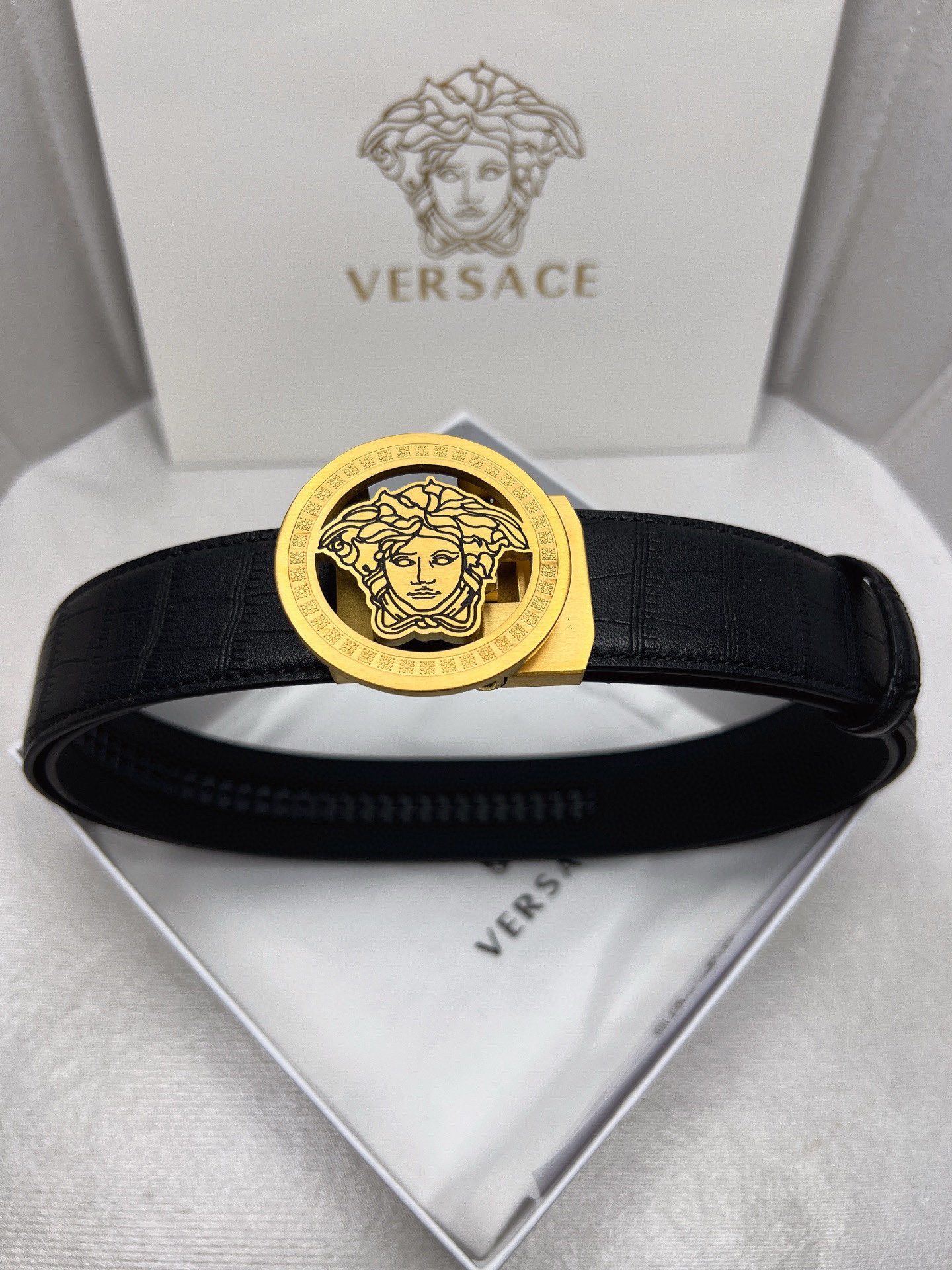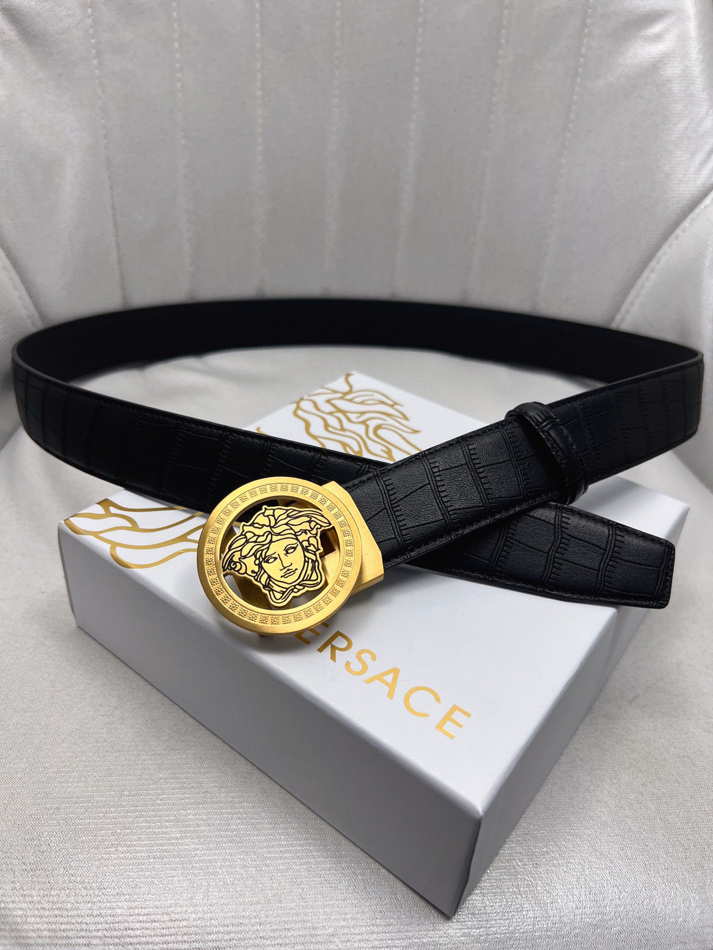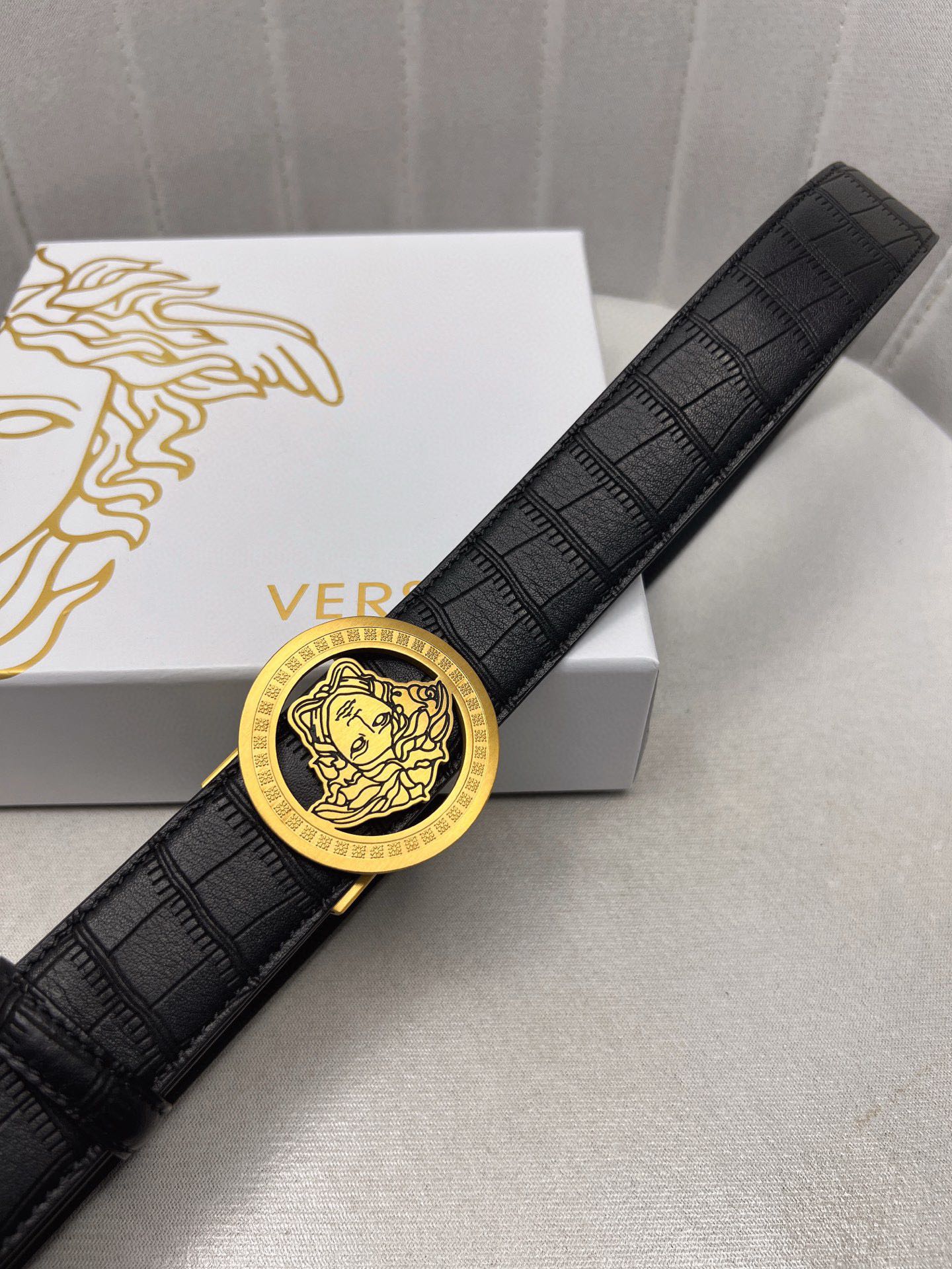 这款皮带是AAAAA 1:1 质量 (非常棒). 使用了和原版一模一样的材料. 商标部分也保持了和范思哲/Versace一样. 图片拍摄是实物皮带拍摄, 您所收到的实物保证和我们图片一模一样.