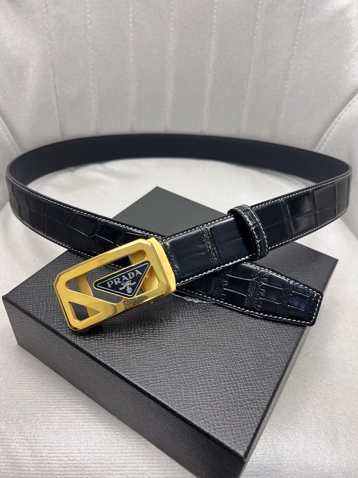 这款皮带是AAAAA 1:1 质量 (非常棒). 使用了和原版一模一样的材料. 商标部分也保持了和普拉达/Prada一样. 图片拍摄是实物皮带拍摄, 您所收到的实物保证和我们图片一模一样.