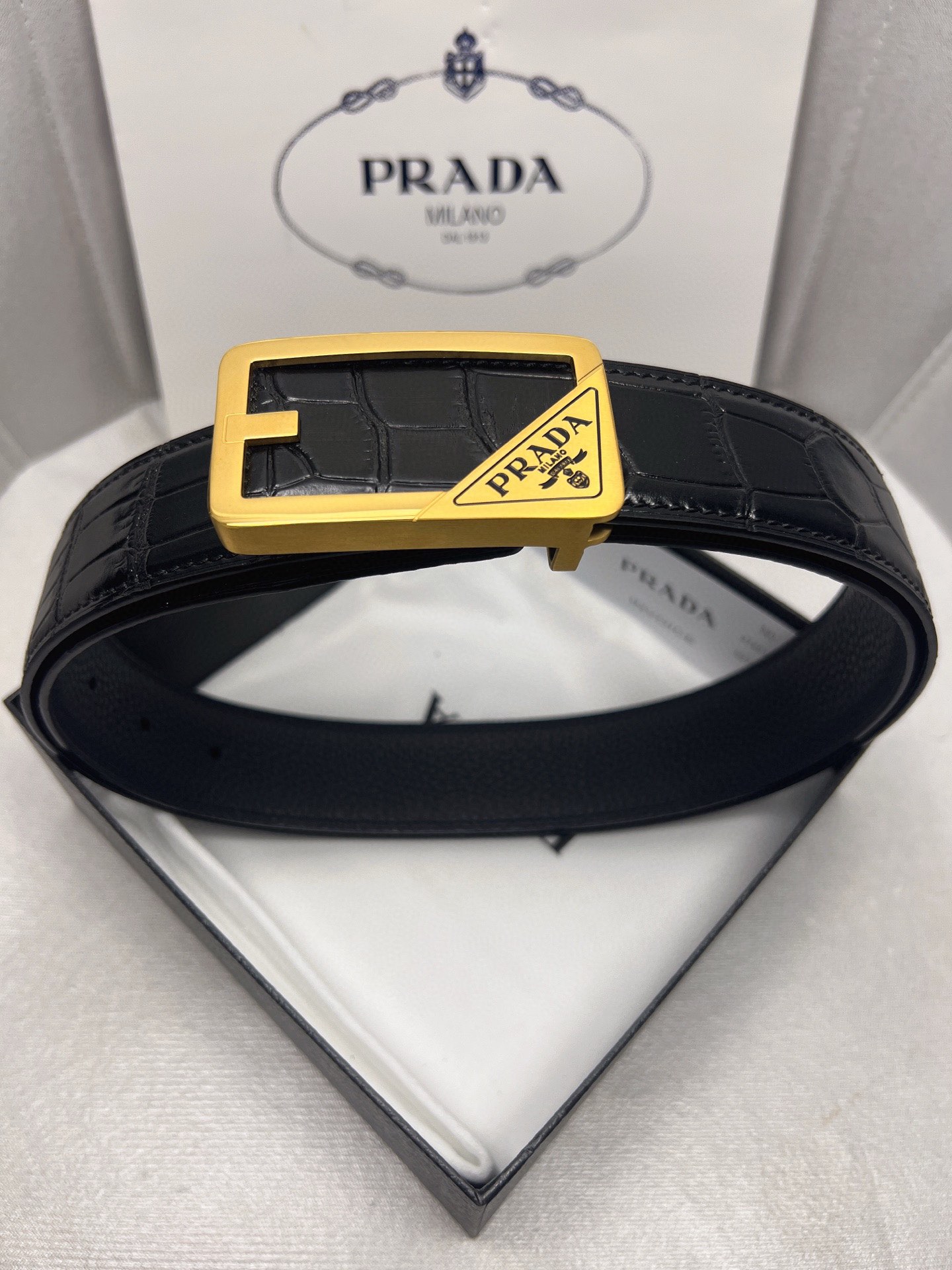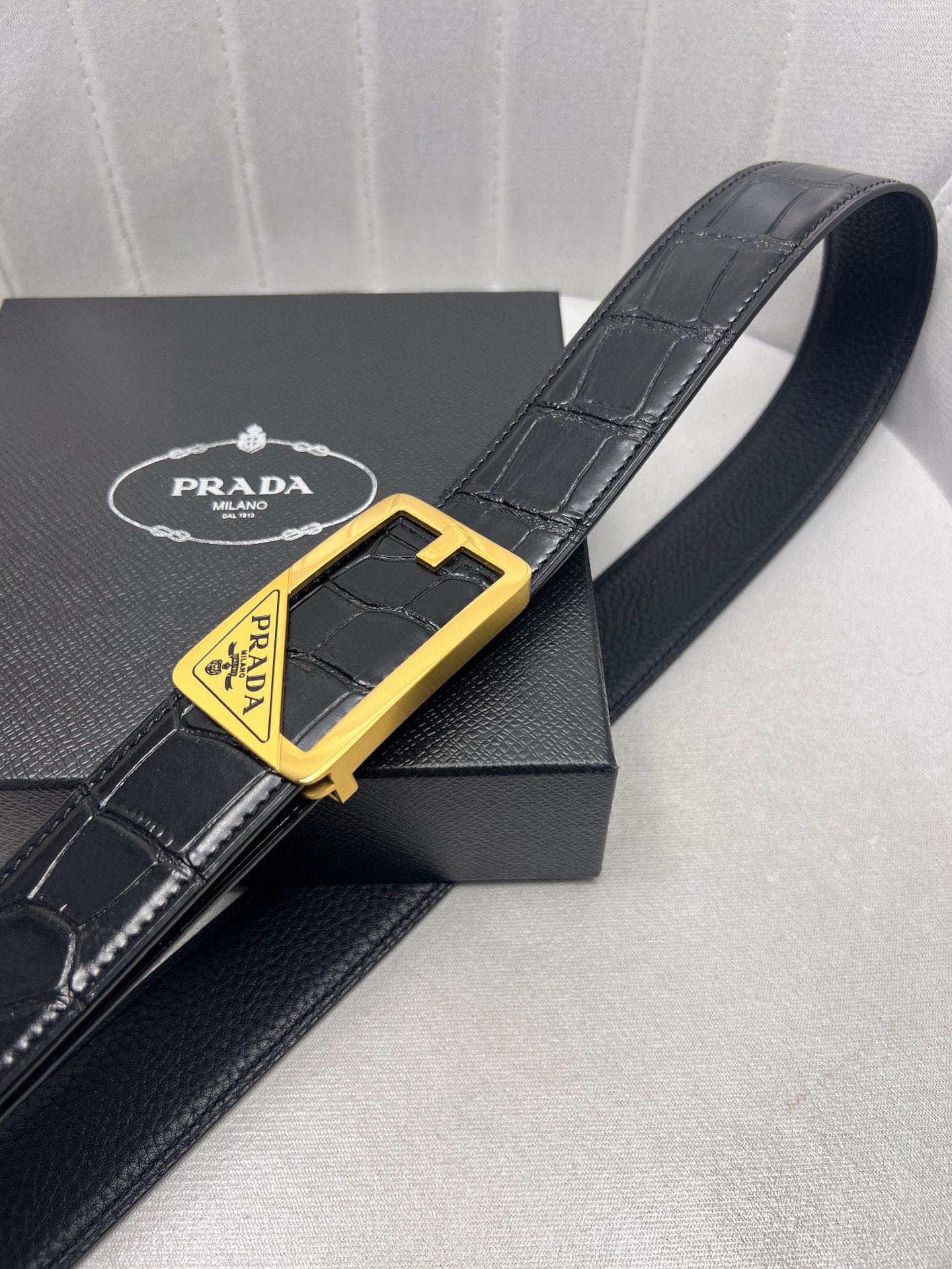 这款皮带是AAAAA 1:1 质量 (非常棒). 使用了和原版一模一样的材料. 商标部分也保持了和普拉达/Prada一样. 图片拍摄是实物皮带拍摄, 您所收到的实物保证和我们图片一模一样.