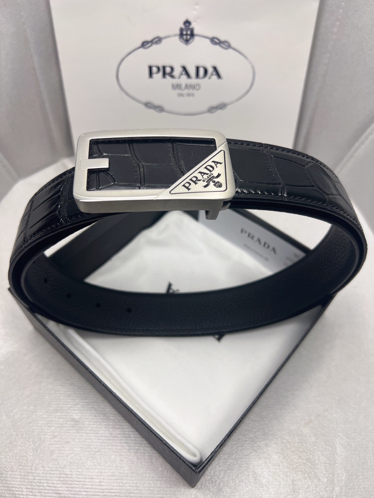 这款皮带是AAAAA 1:1 质量 (非常棒). 使用了和原版一模一样的材料. 商标部分也保持了和普拉达/Prada一样. 图片拍摄是实物皮带拍摄, 您所收到的实物保证和我们图片一模一样.