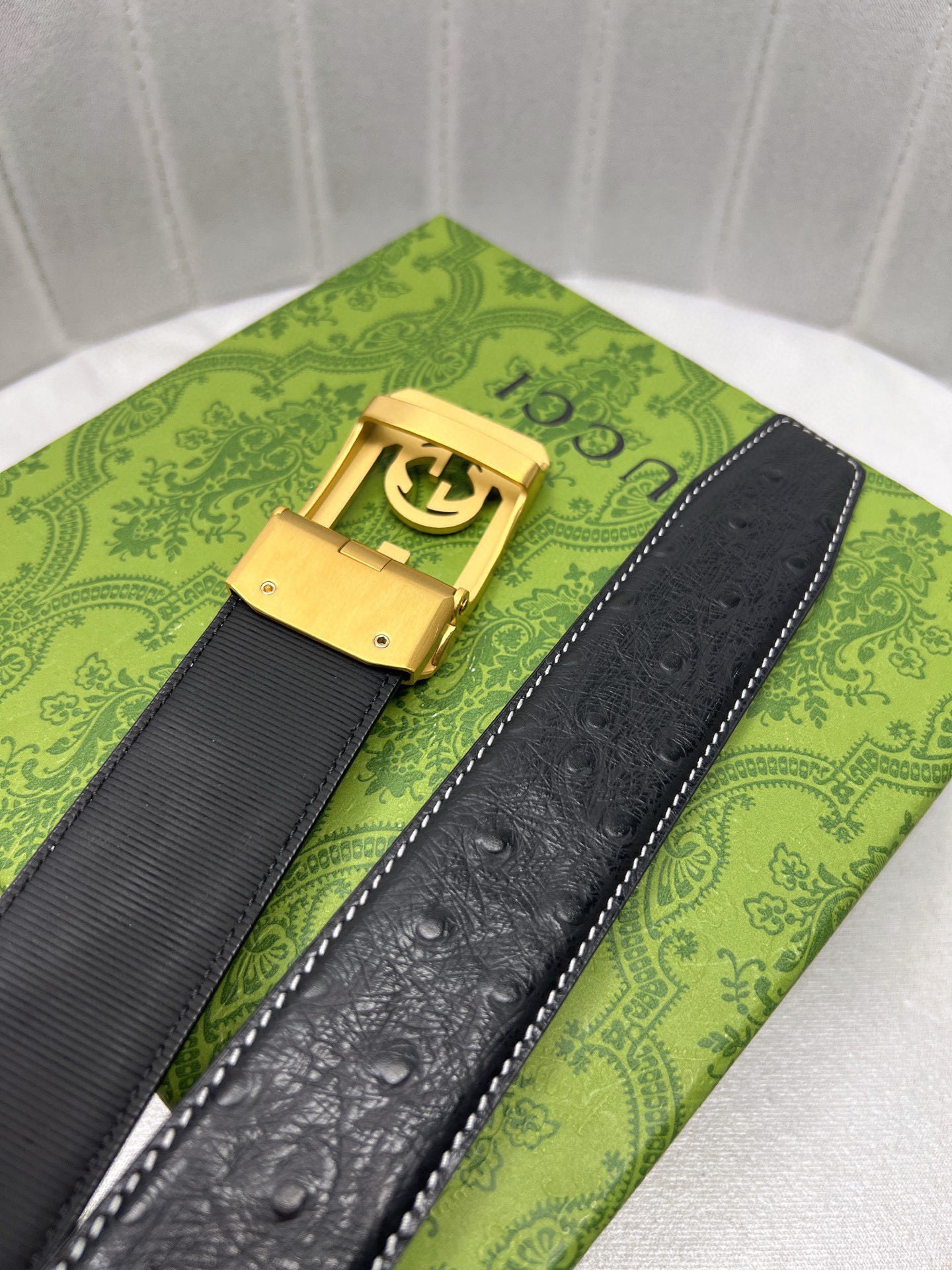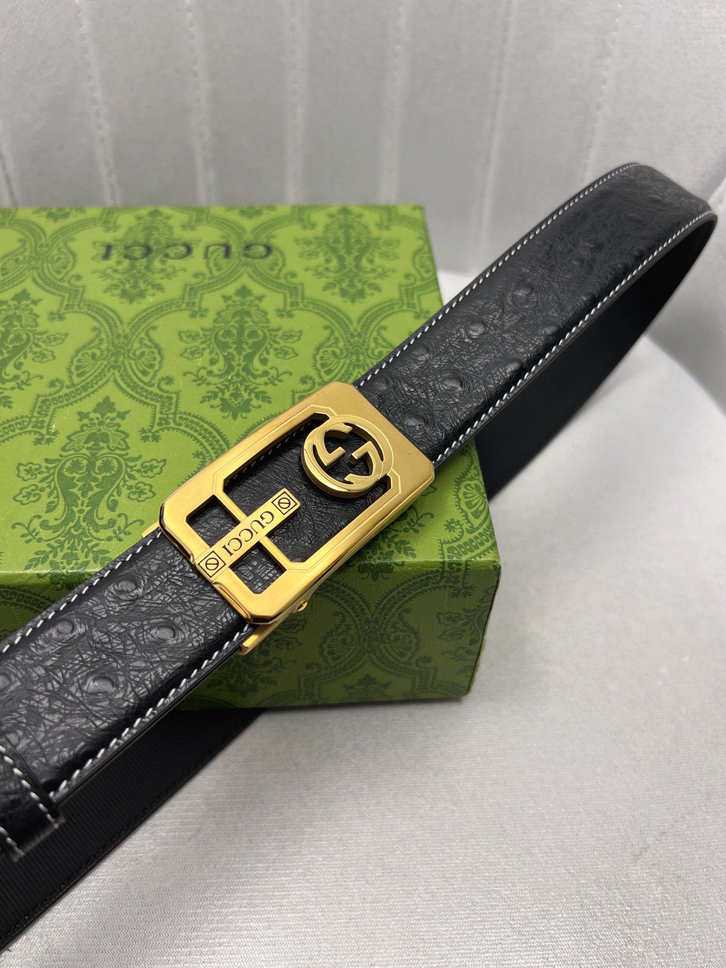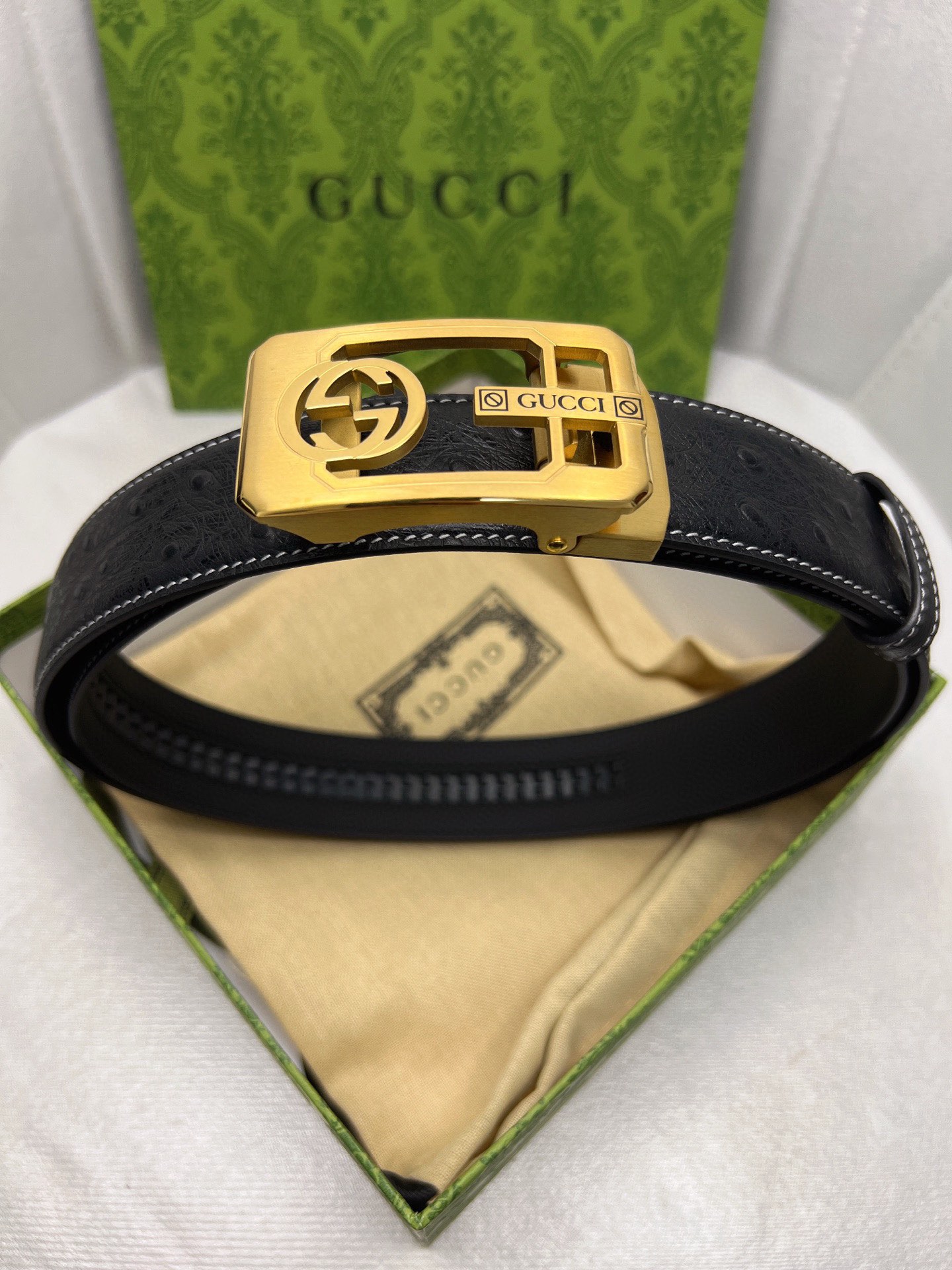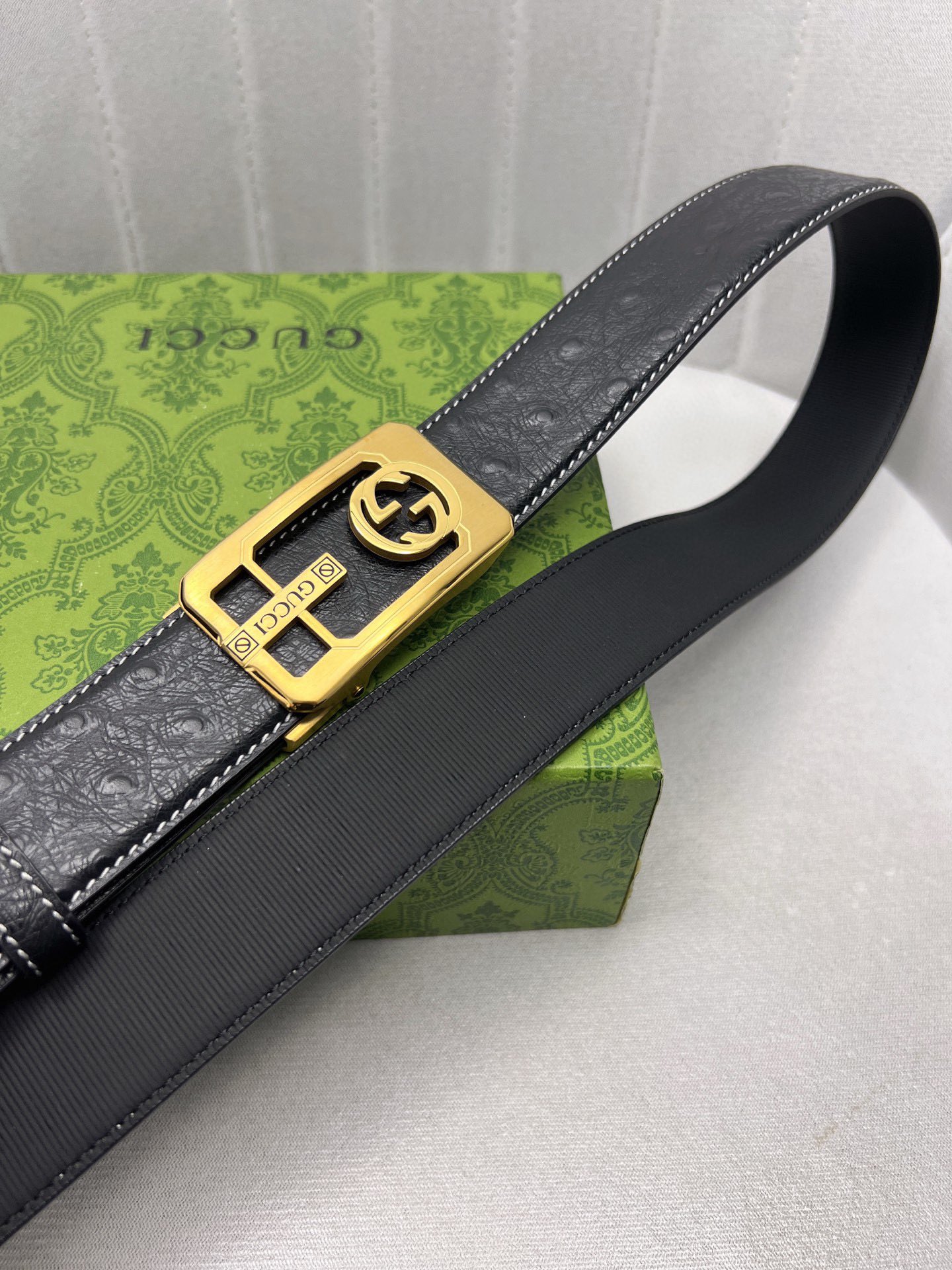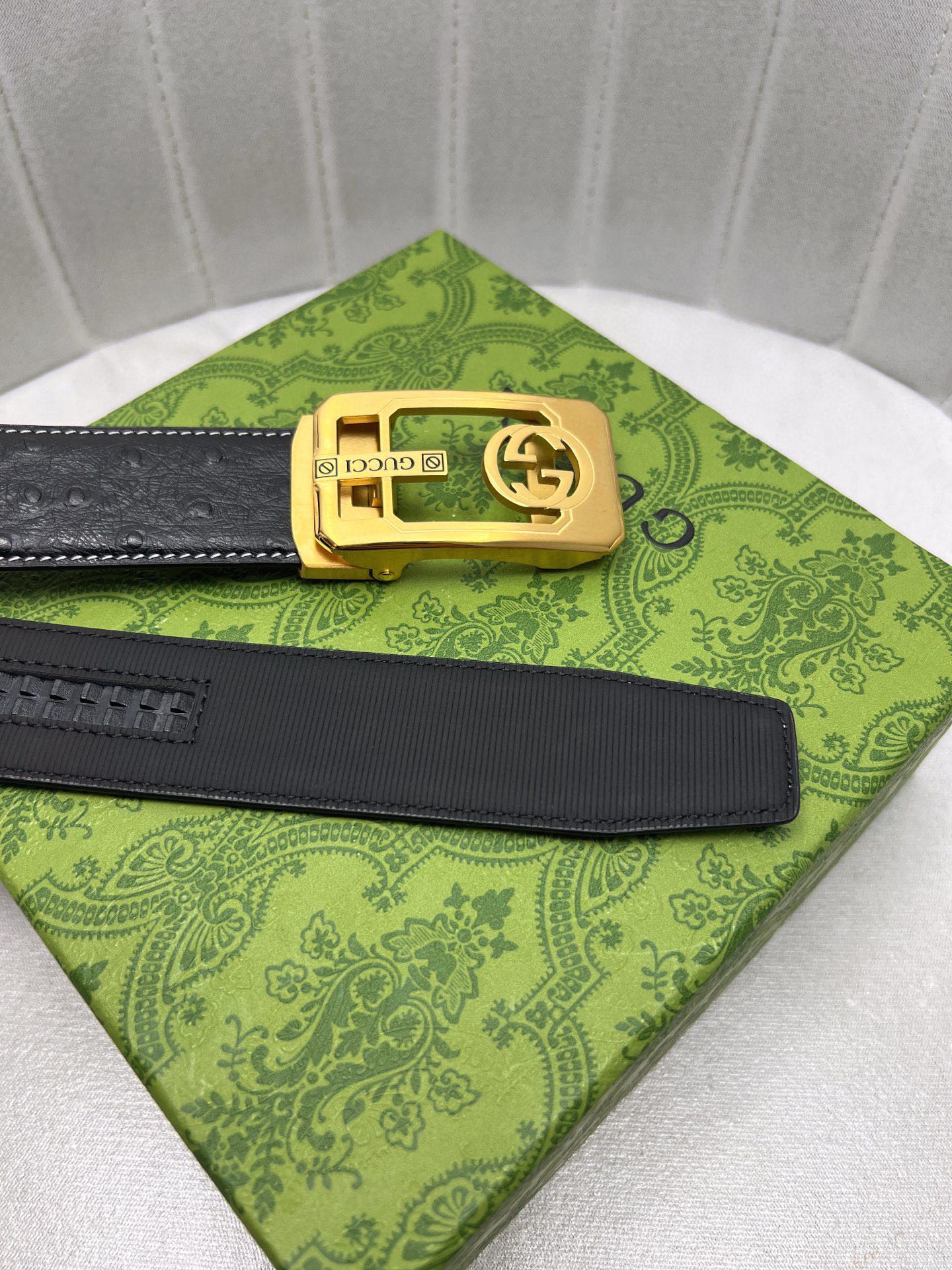 这款皮带是AAAAA 1:1 质量 (非常棒). 使用了和原版一模一样的材料. 商标部分也保持了和古奇/Gucci一样. 图片拍摄是实物皮带拍摄, 您所收到的实物保证和我们图片一模一样.