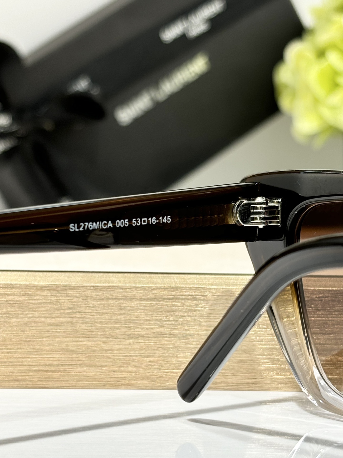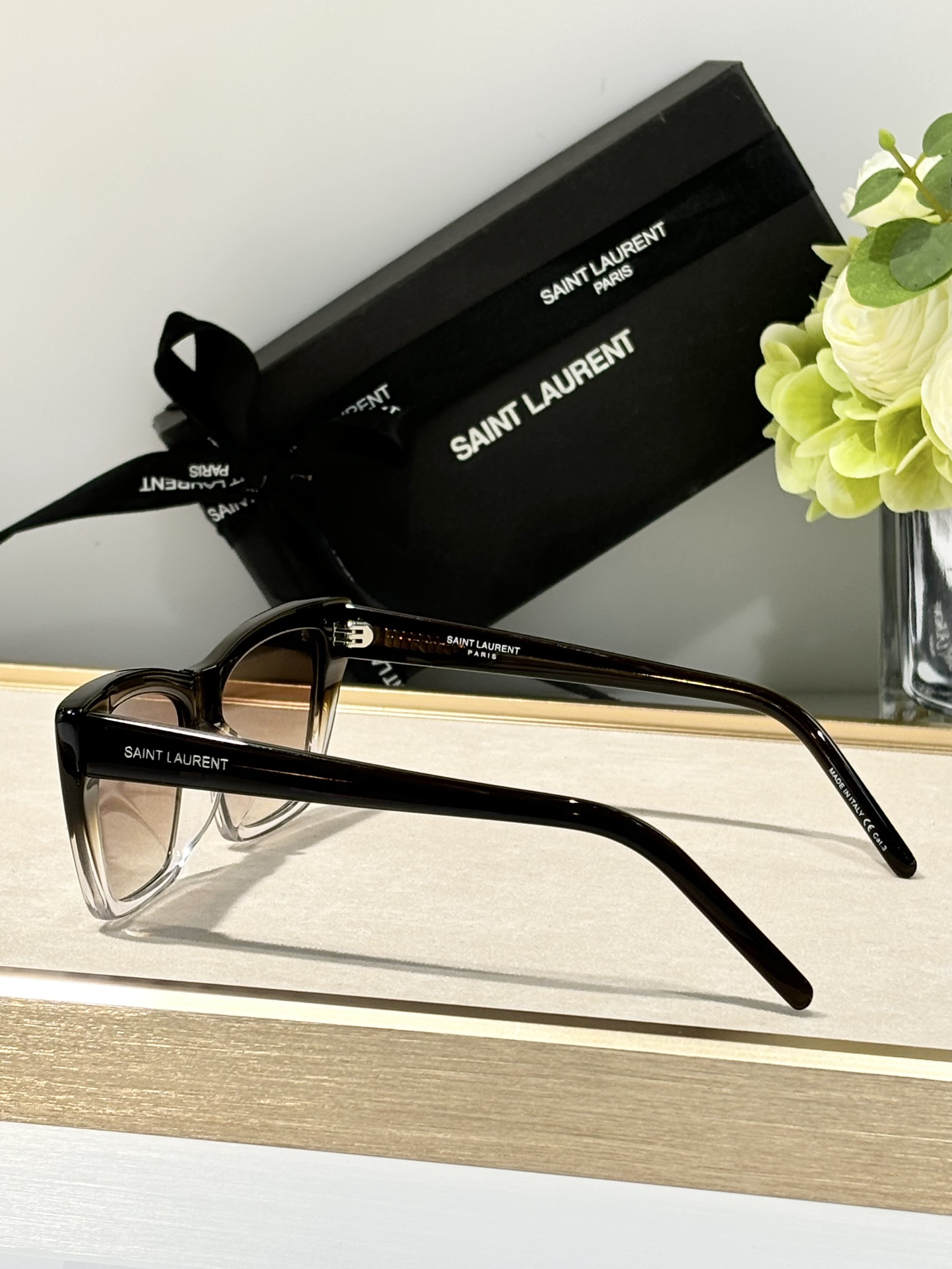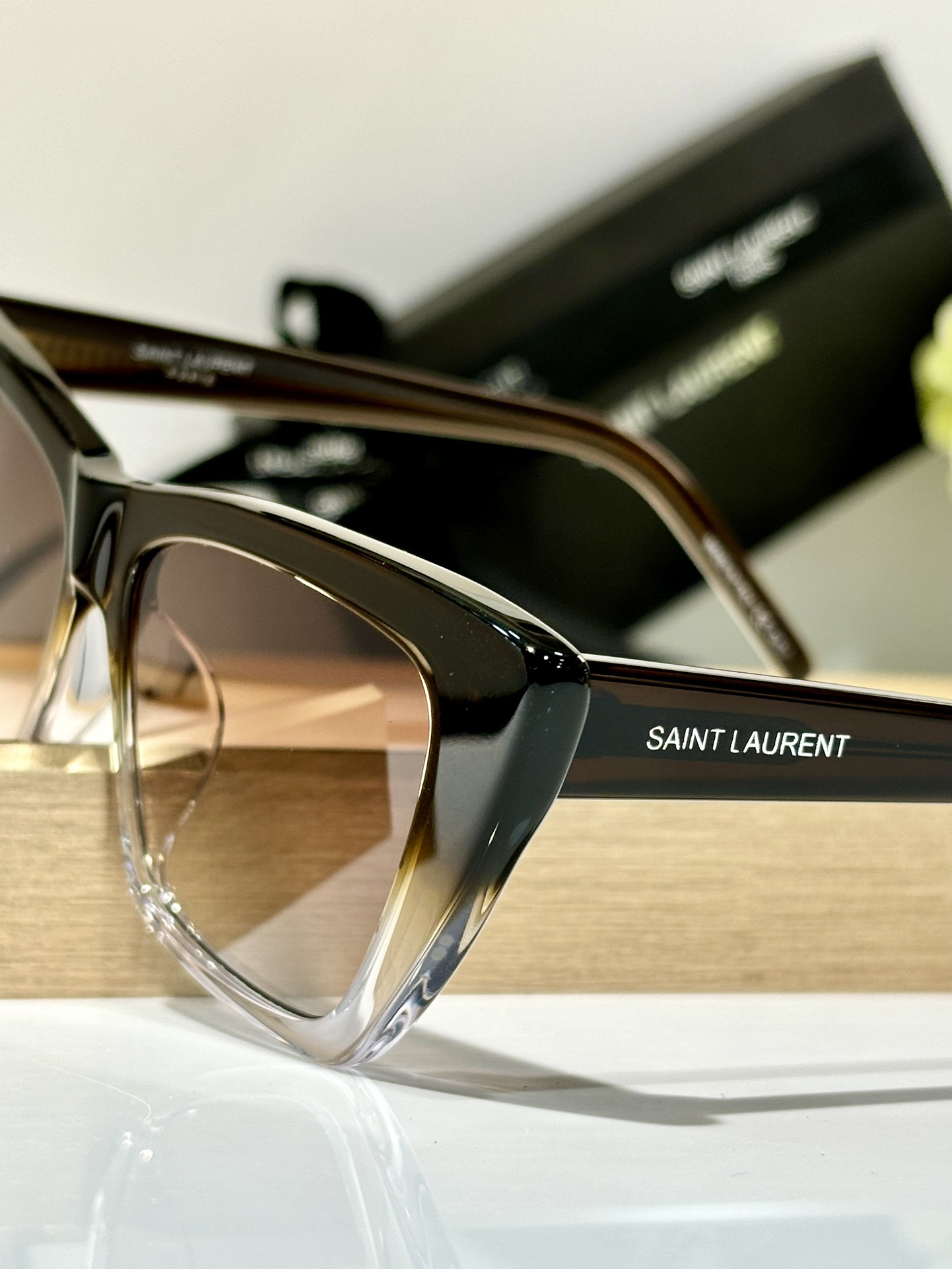 这款太阳眼镜是AAAAA 1:1 质量 (非常棒). 使用了和原版一模一样的材料. 商标部分也保持了和圣罗兰/Saint Laurent一样. 图片拍摄是实物太阳眼镜拍摄, 您所收到的实物保证和我们图片一模一样.