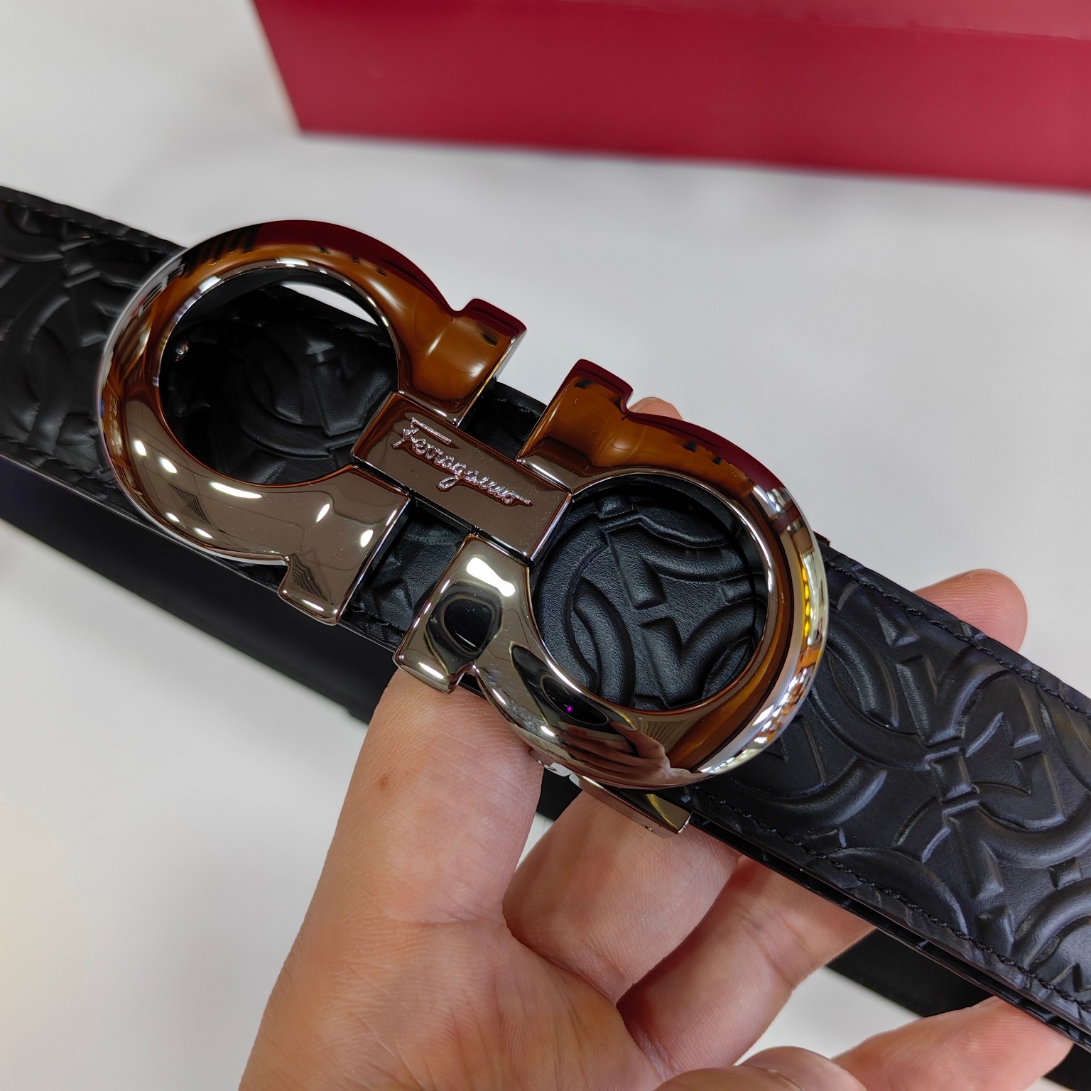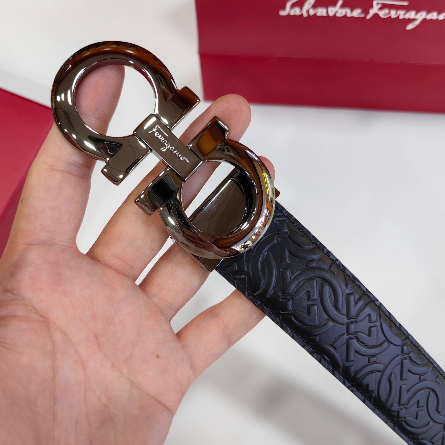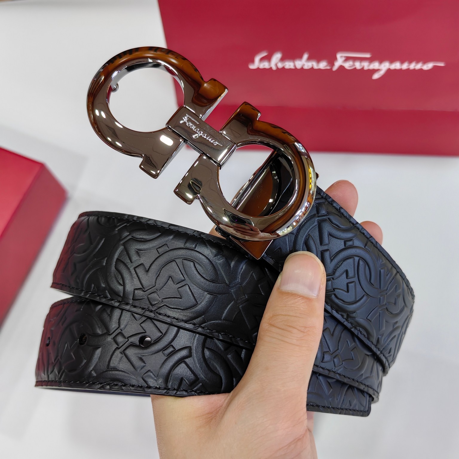 这款皮带是AAAAA 1:1 质量 (非常棒). 使用了和原版一模一样的材料. 商标部分也保持了和菲拉格慕/Salvatore Ferragamo一样. 图片拍摄是实物皮带拍摄, 您所收到的实物保证和我们图片一模一样.
