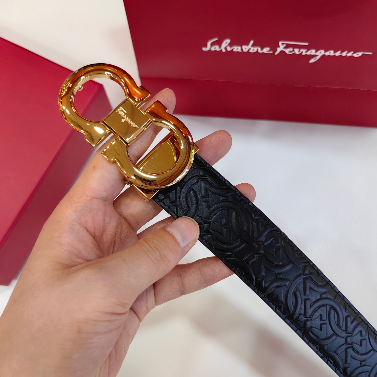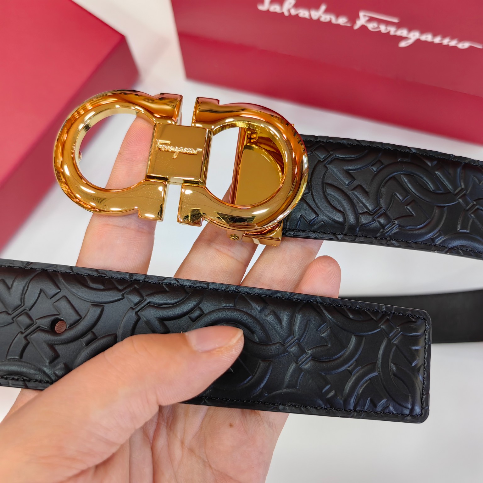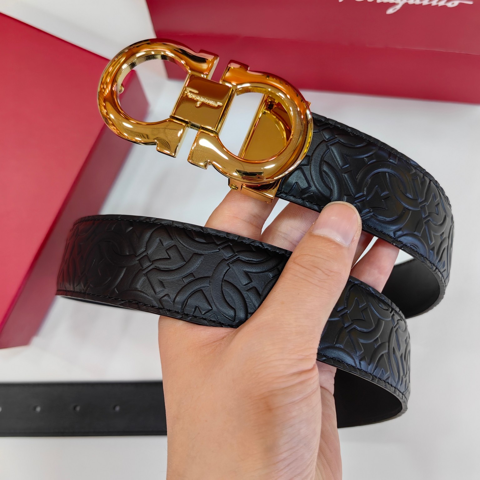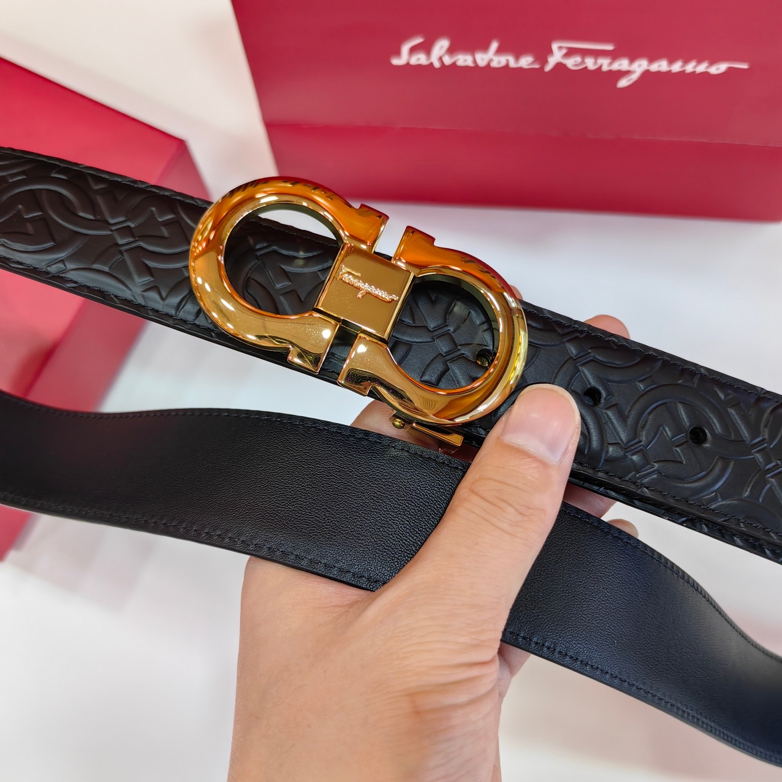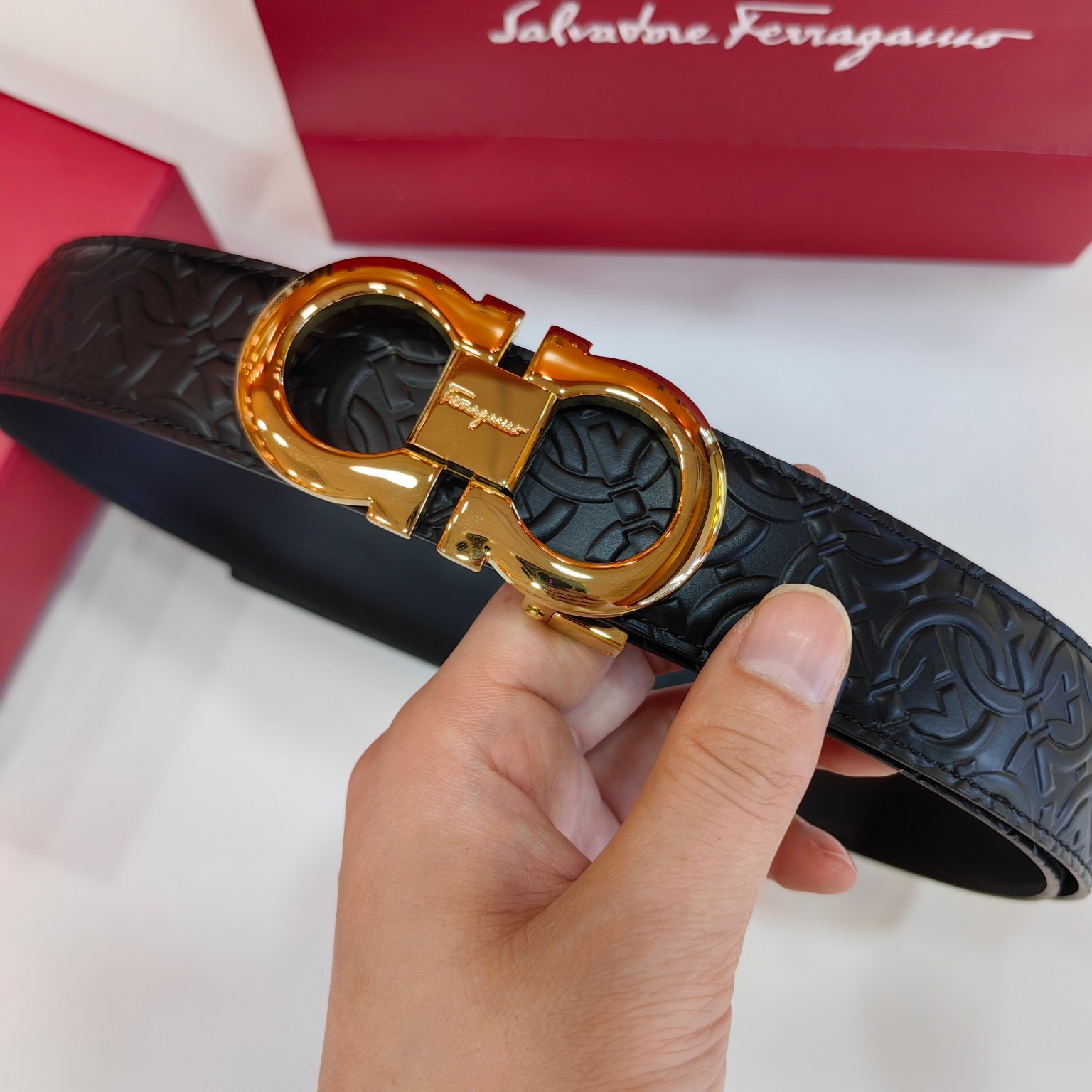 这款皮带是AAAAA 1:1 质量 (非常棒). 使用了和原版一模一样的材料. 商标部分也保持了和菲拉格慕/Salvatore Ferragamo一样. 图片拍摄是实物皮带拍摄, 您所收到的实物保证和我们图片一模一样.