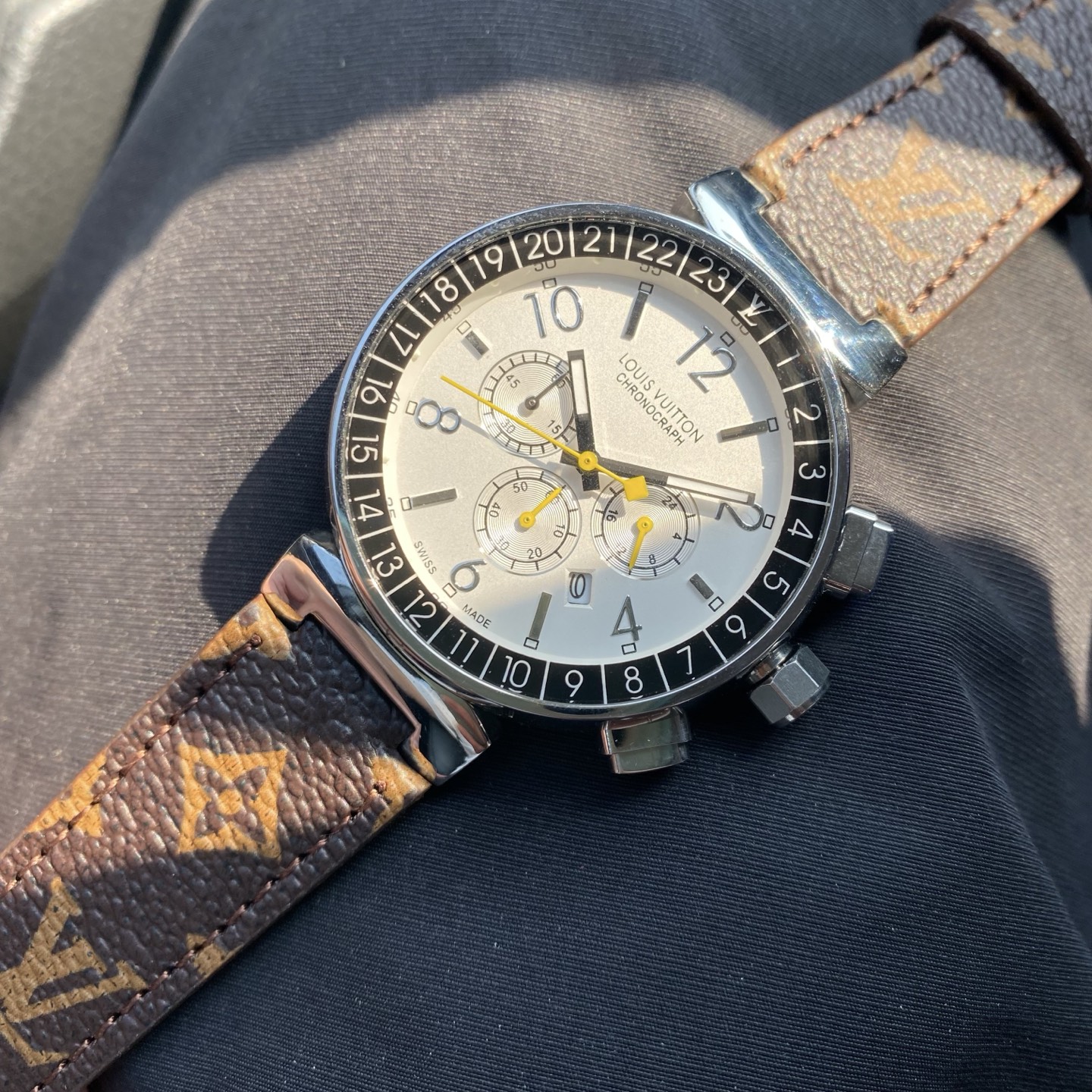 这款手表是AAAAA 1:1 质量 (非常棒). 使用了和原版一模一样的材料. 商标部分也保持了和路易威登/Louis Vuitton一样. 图片拍摄是实物手表拍摄, 您所收到的实物保证和我们图片一模一样.