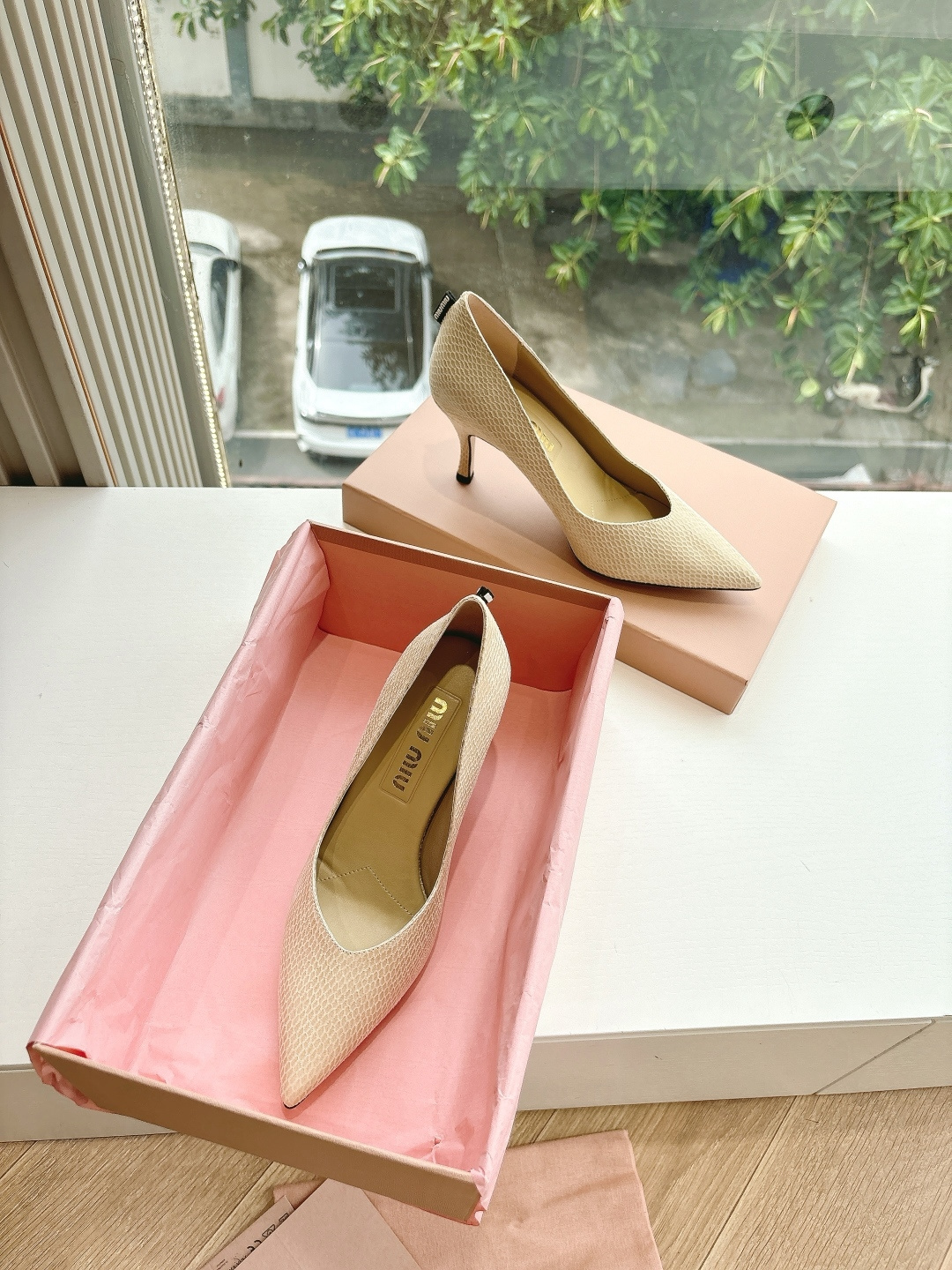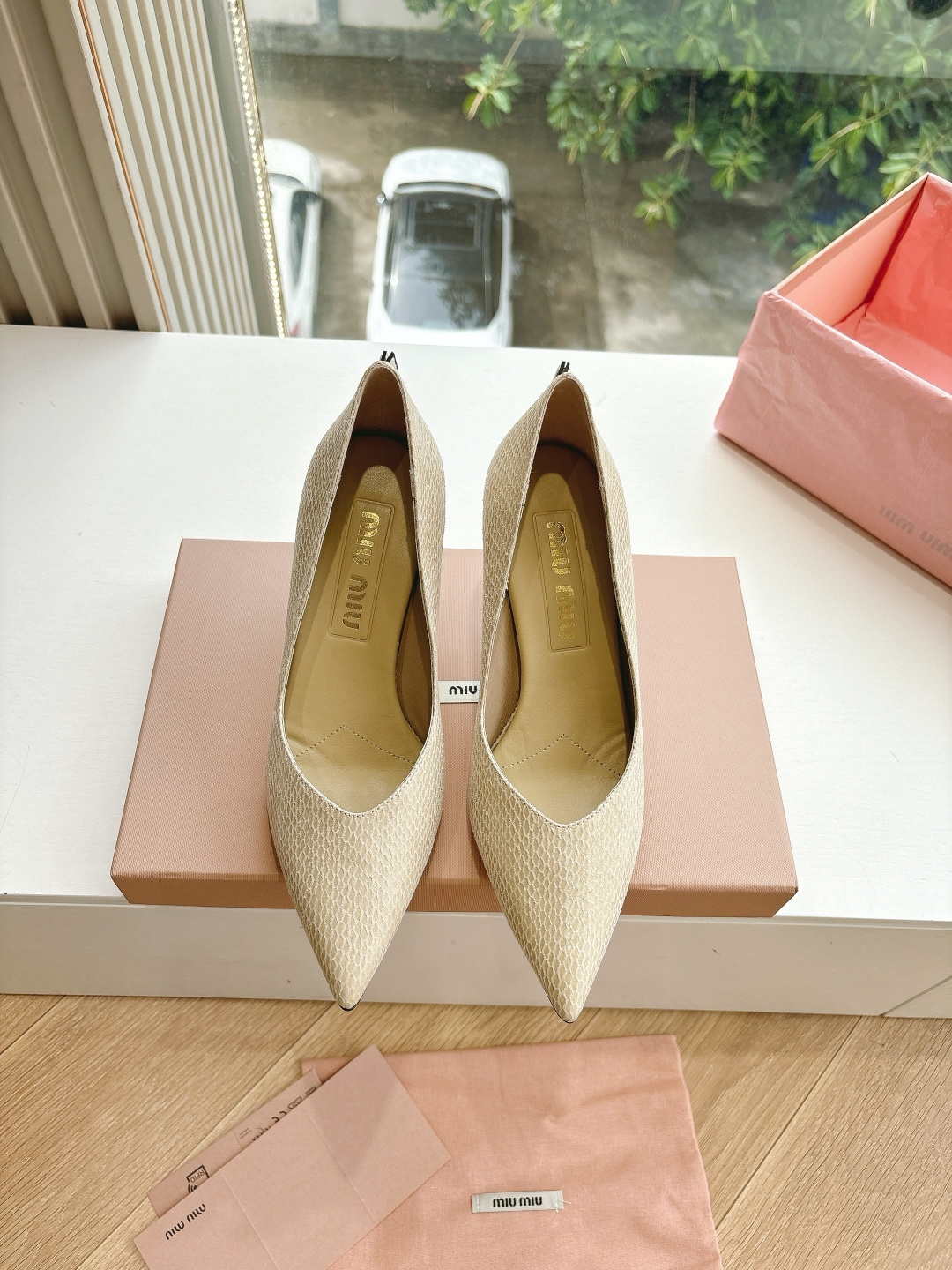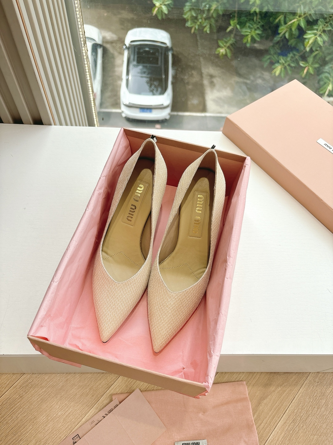 这款鞋子是AAAAA 1:1 质量 (非常棒). 使用了和原版一模一样的材料. 商标部分也保持了和缪缪/Miu Miu一样. 图片拍摄是实物鞋子拍摄, 您所收到的实物保证和我们图片一模一样.