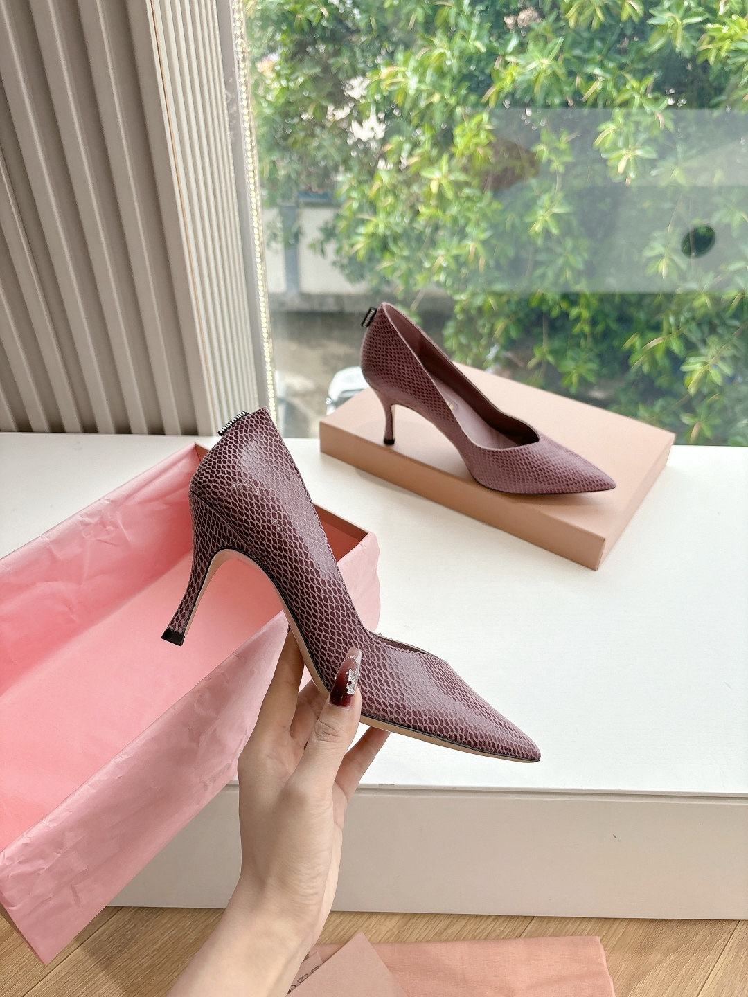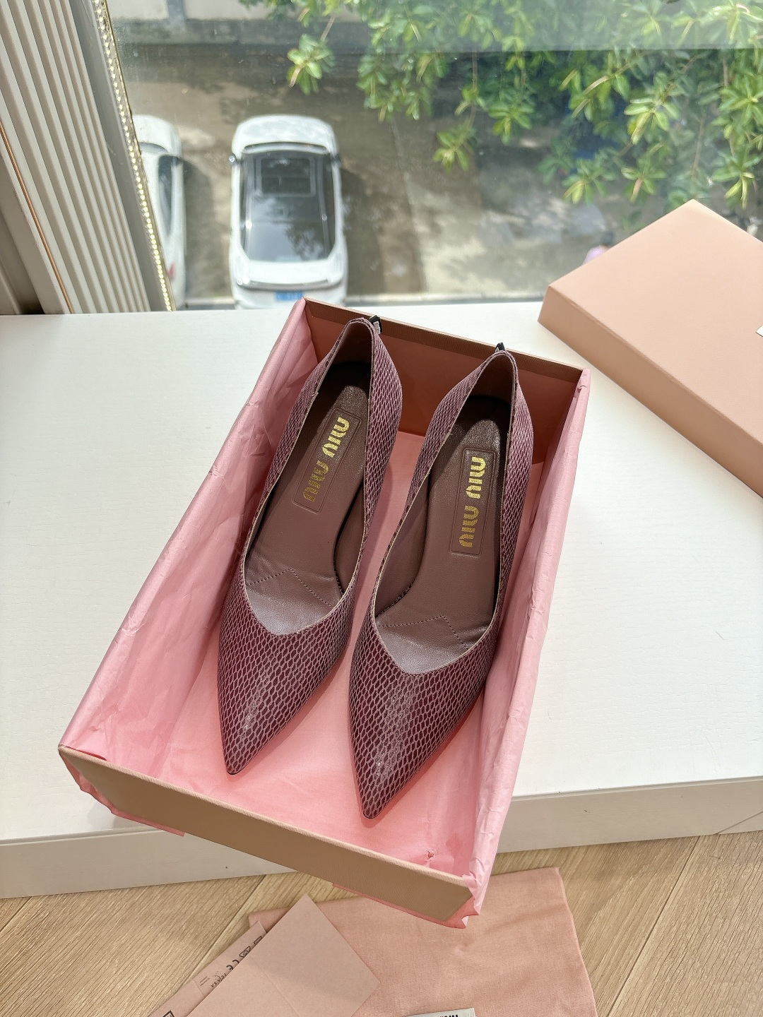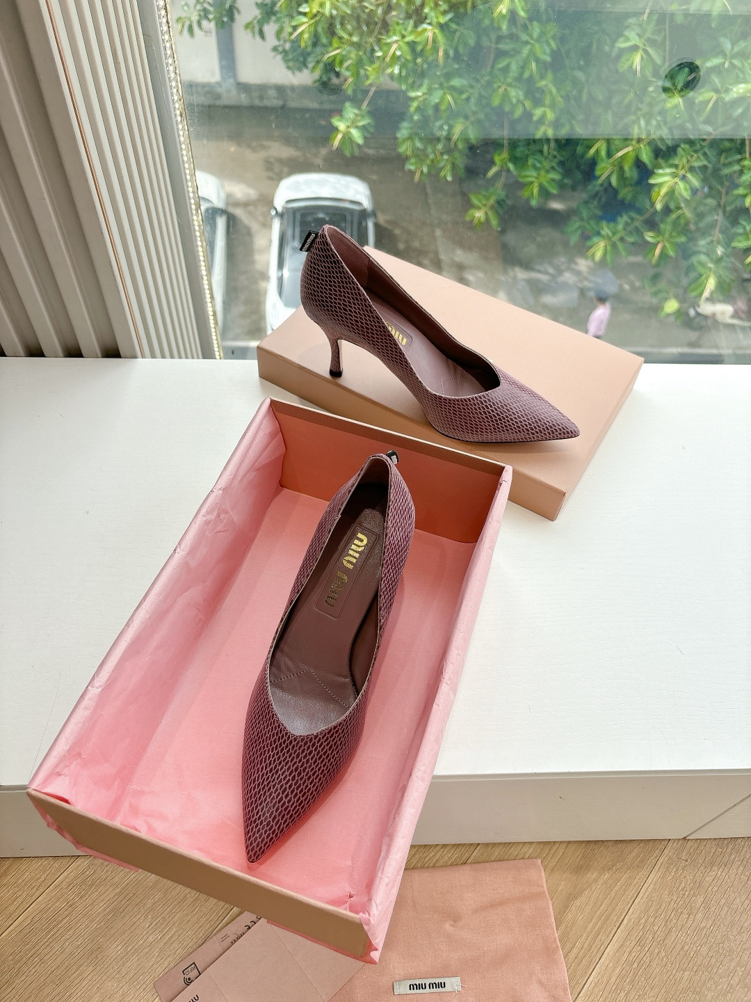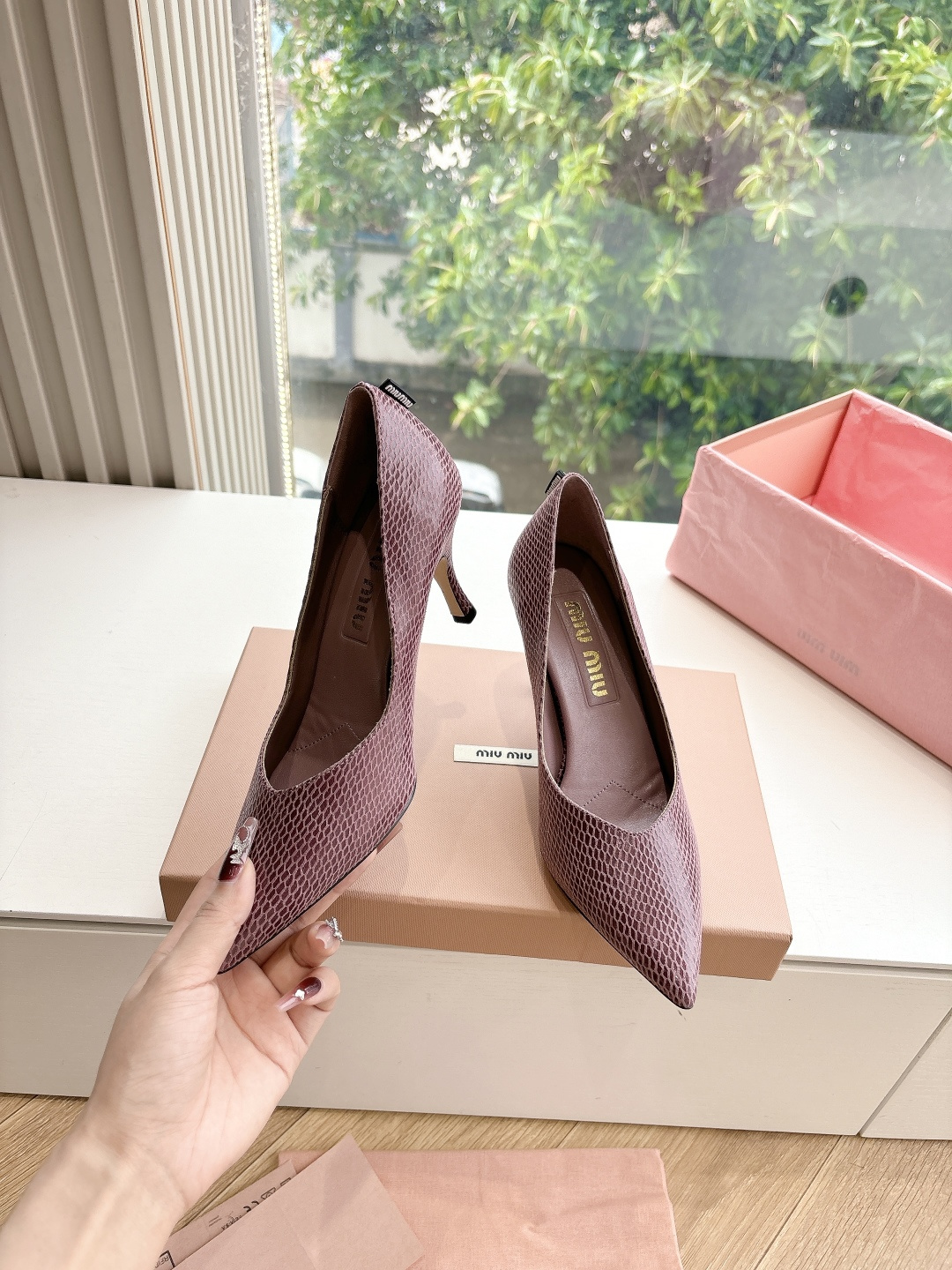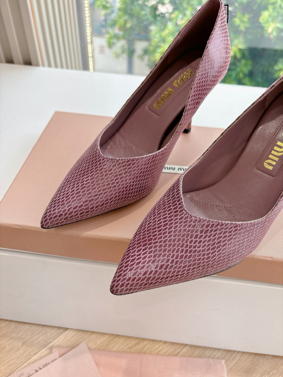 这款鞋子是AAAAA 1:1 质量 (非常棒). 使用了和原版一模一样的材料. 商标部分也保持了和缪缪/Miu Miu一样. 图片拍摄是实物鞋子拍摄, 您所收到的实物保证和我们图片一模一样.