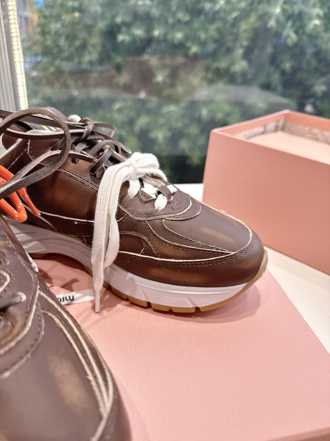 这款鞋子是AAAAA 1:1 质量 (非常棒). 使用了和原版一模一样的材料. 商标部分也保持了和缪缪/Miu Miu一样. 图片拍摄是实物鞋子拍摄, 您所收到的实物保证和我们图片一模一样.