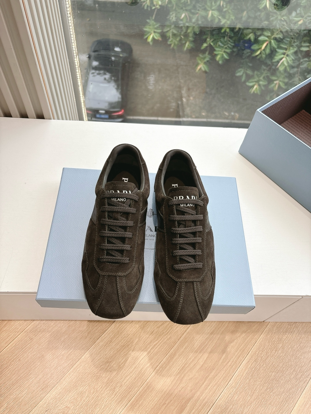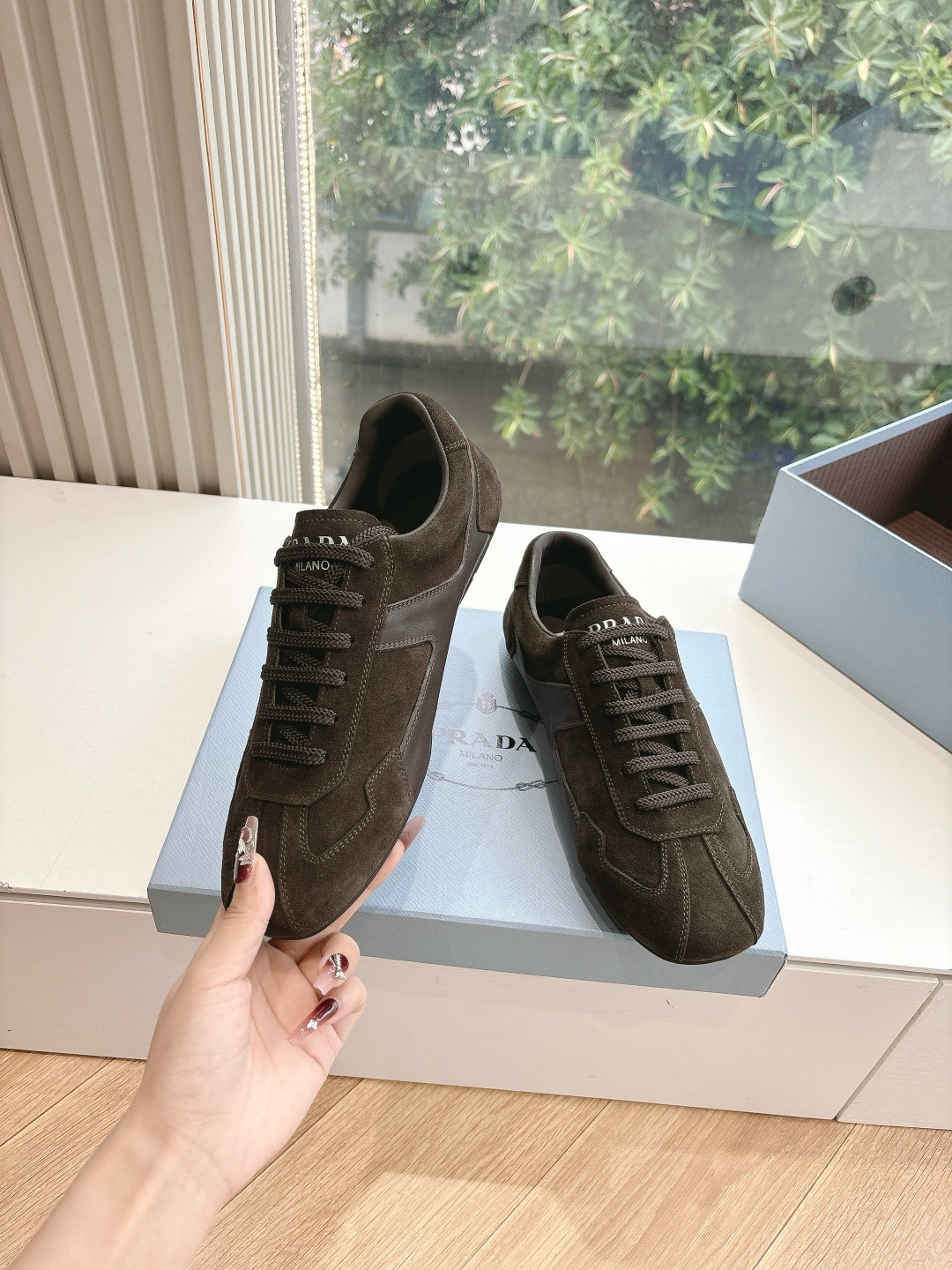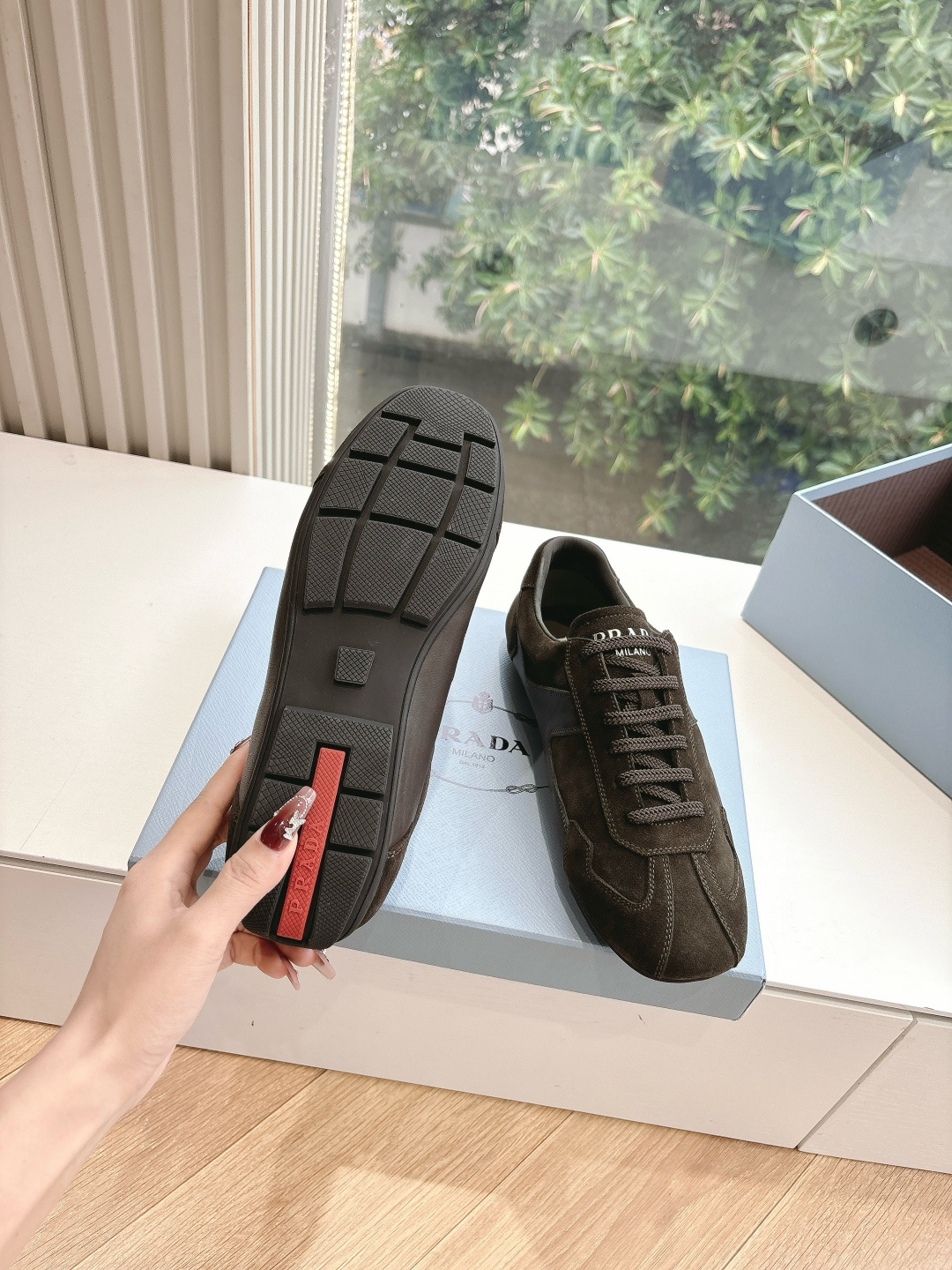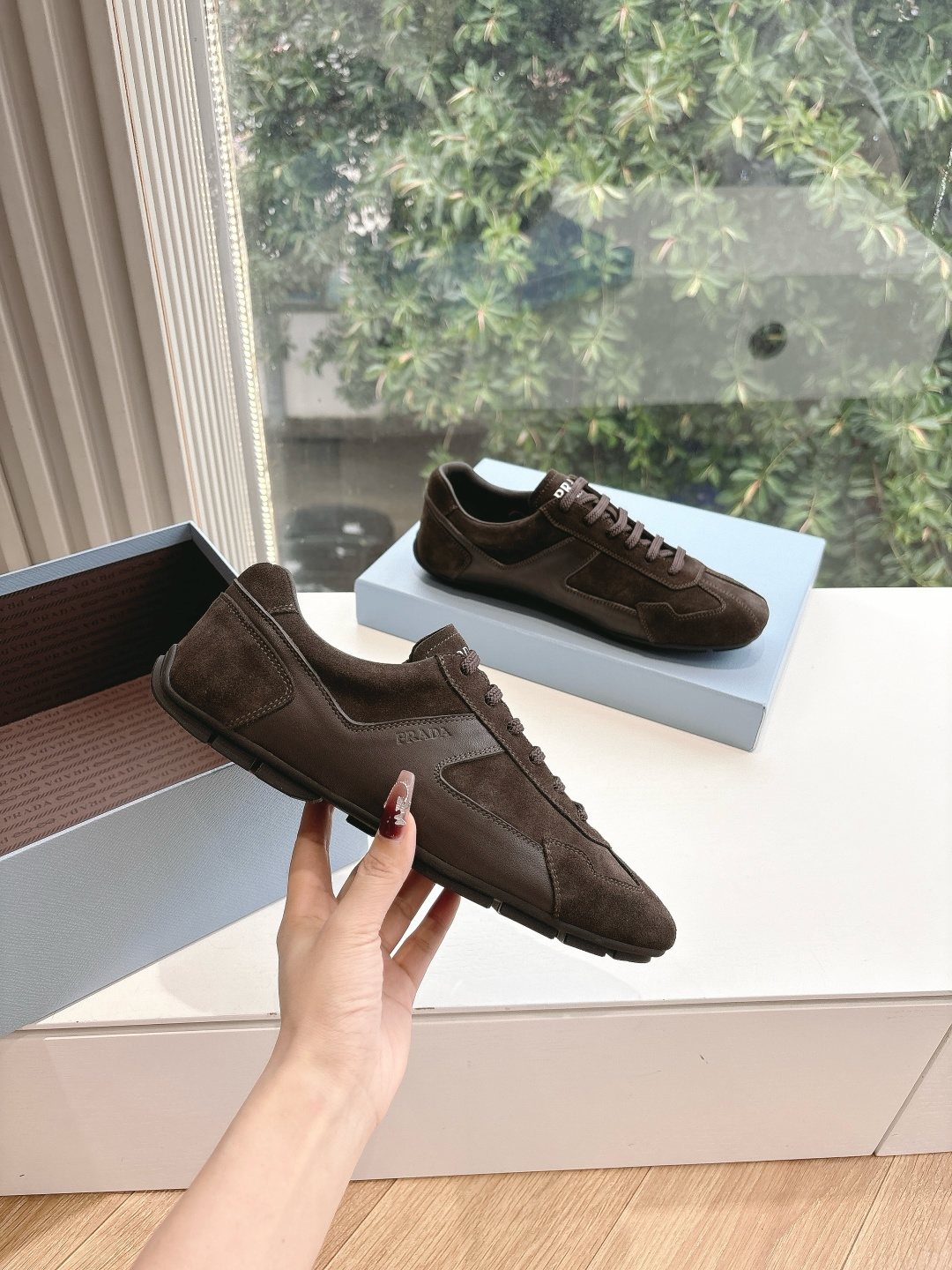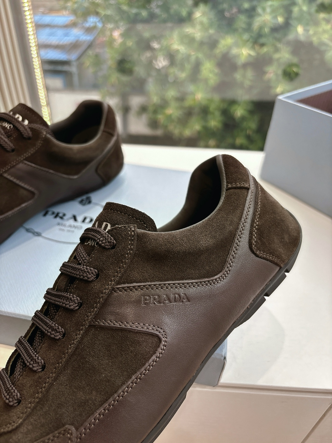 这款鞋子是AAAAA 1:1 质量 (非常棒). 使用了和原版一模一样的材料. 商标部分也保持了和普拉达/Prada一样. 图片拍摄是实物鞋子拍摄, 您所收到的实物保证和我们图片一模一样.