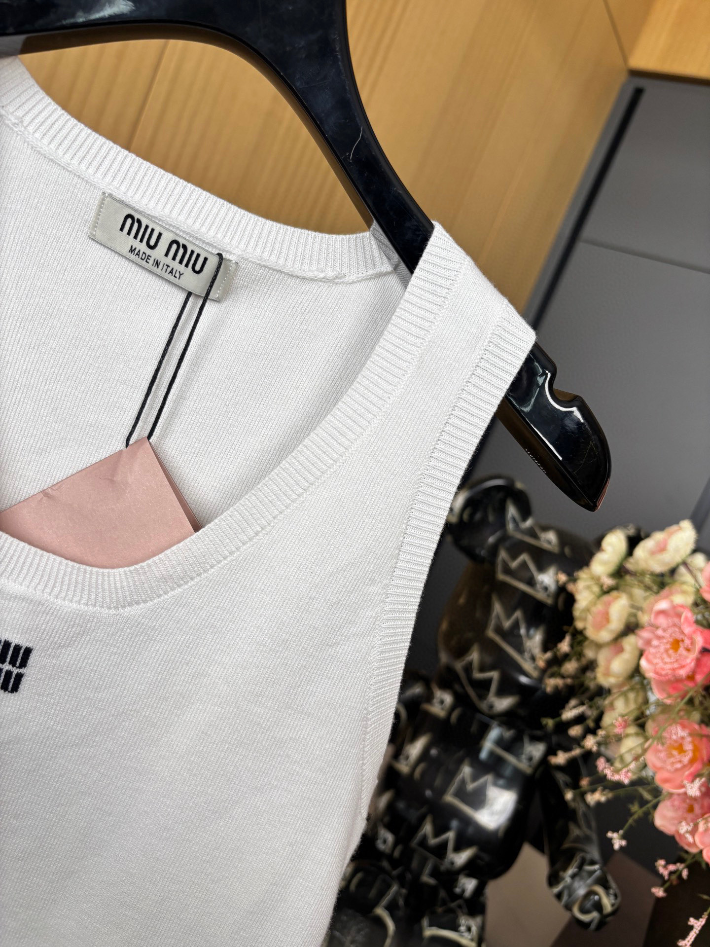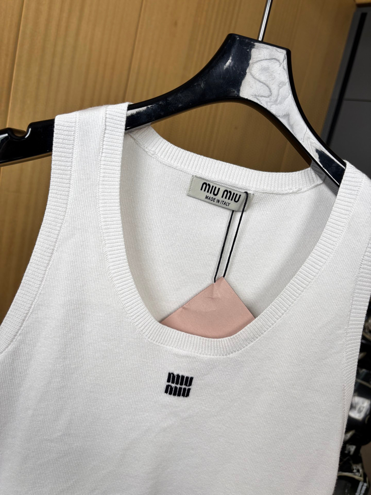 这款衣服是AAAAA 1:1 质量 (非常棒). 使用了和原版一模一样的材料. 商标部分也保持了和缪缪/Miu Miu一样. 图片拍摄是实物衣服拍摄, 您所收到的实物保证和我们图片一模一样.